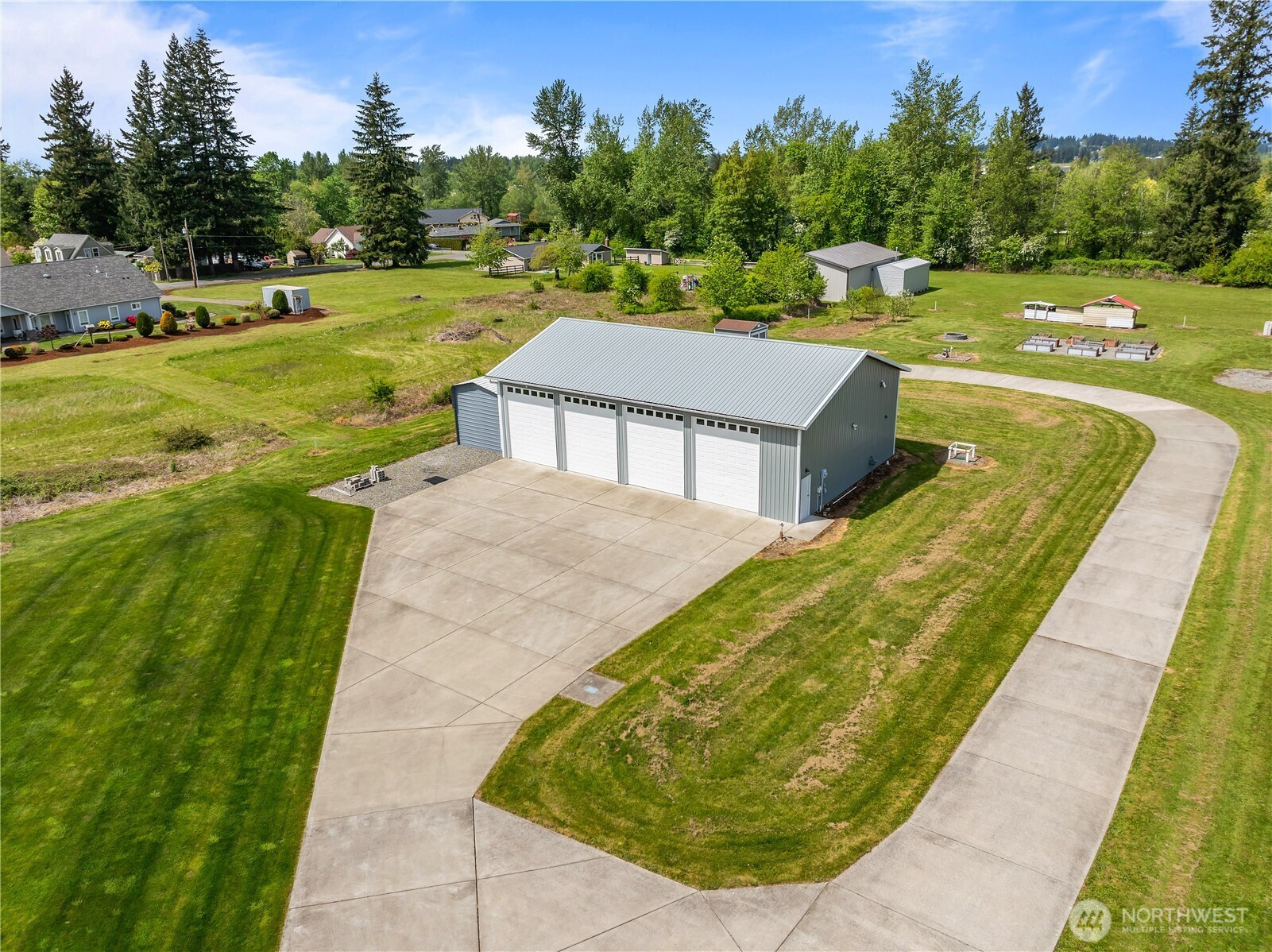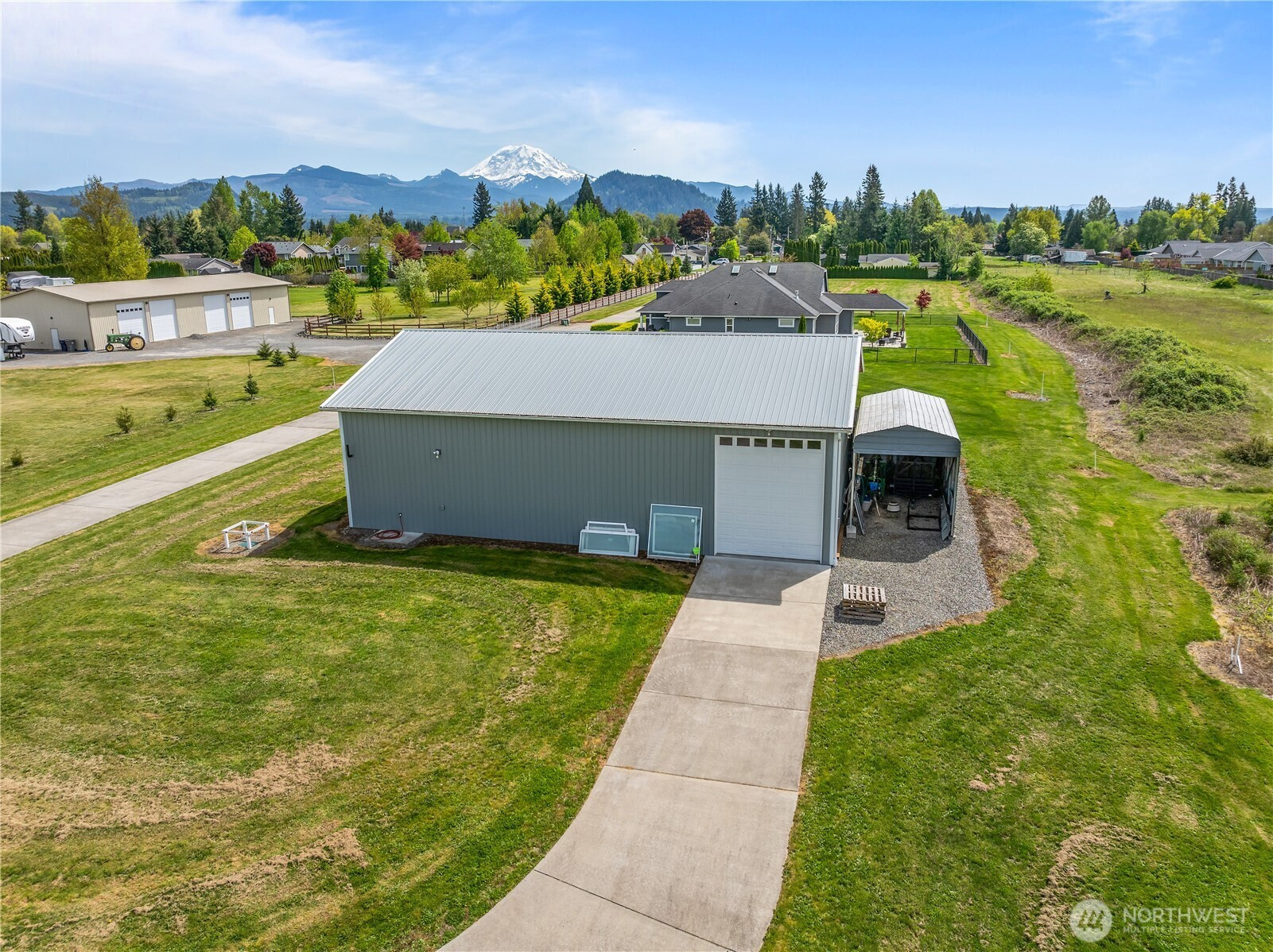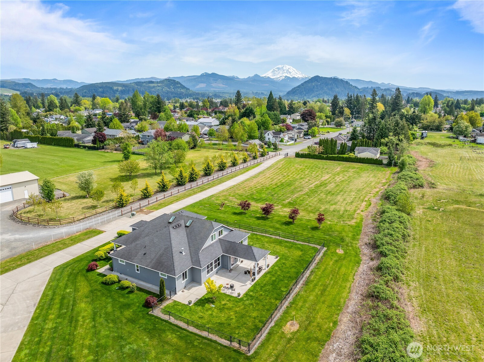 Mt. Rainier & foothill views at this 2018 Garrette Custom Homes resale on 2.82AC in city limits of Enumclaw w/ 4 beds, 2.75 baths, & 3,550SF. Open concept kitchen w/ granite CTs, SS appliances, double oven, adjacent dining room, coffee bar & island seating. Spacious living area w/ gas fireplace. Primary bedroom w/ private 5pc full bath includes WIC, custom no step shower, garden tub, & tile floors. Laundry/utility room w/ tile floors & mud sink. Bonus room up w/ 3/4 bath & 4th bedroom. 40'X60' detached shop w/4-bays, 1 drive-thru, 12'X14' doors (w/openers), separate utility meters, spray foam & batt insulation, 400kBTU gas heater, & 3/4 bathroom. Garden/tool shed, compost area + 10- 4'X8' raised garden beds. 90% efficient gas furnace w/AC.