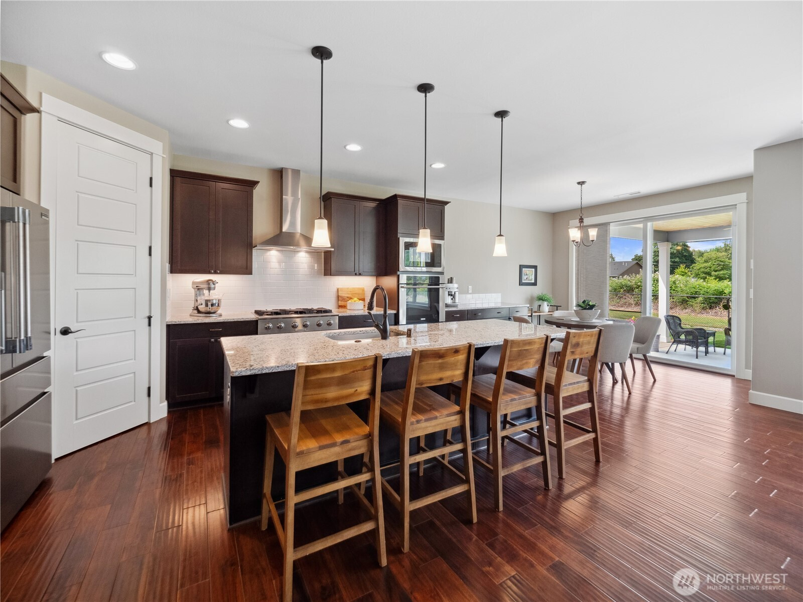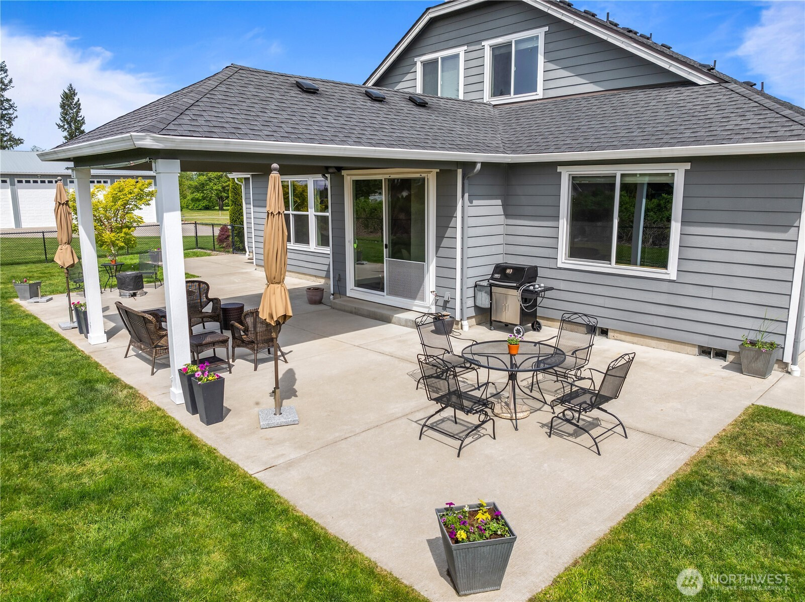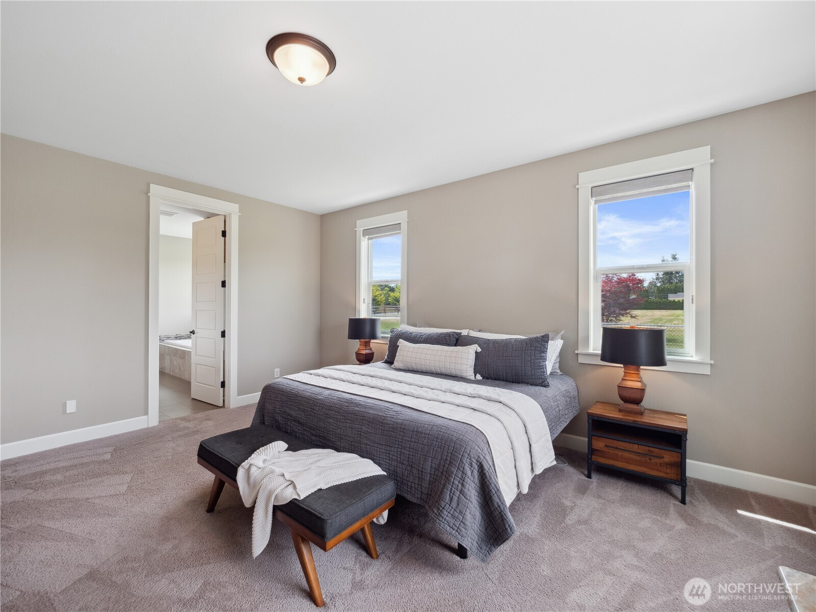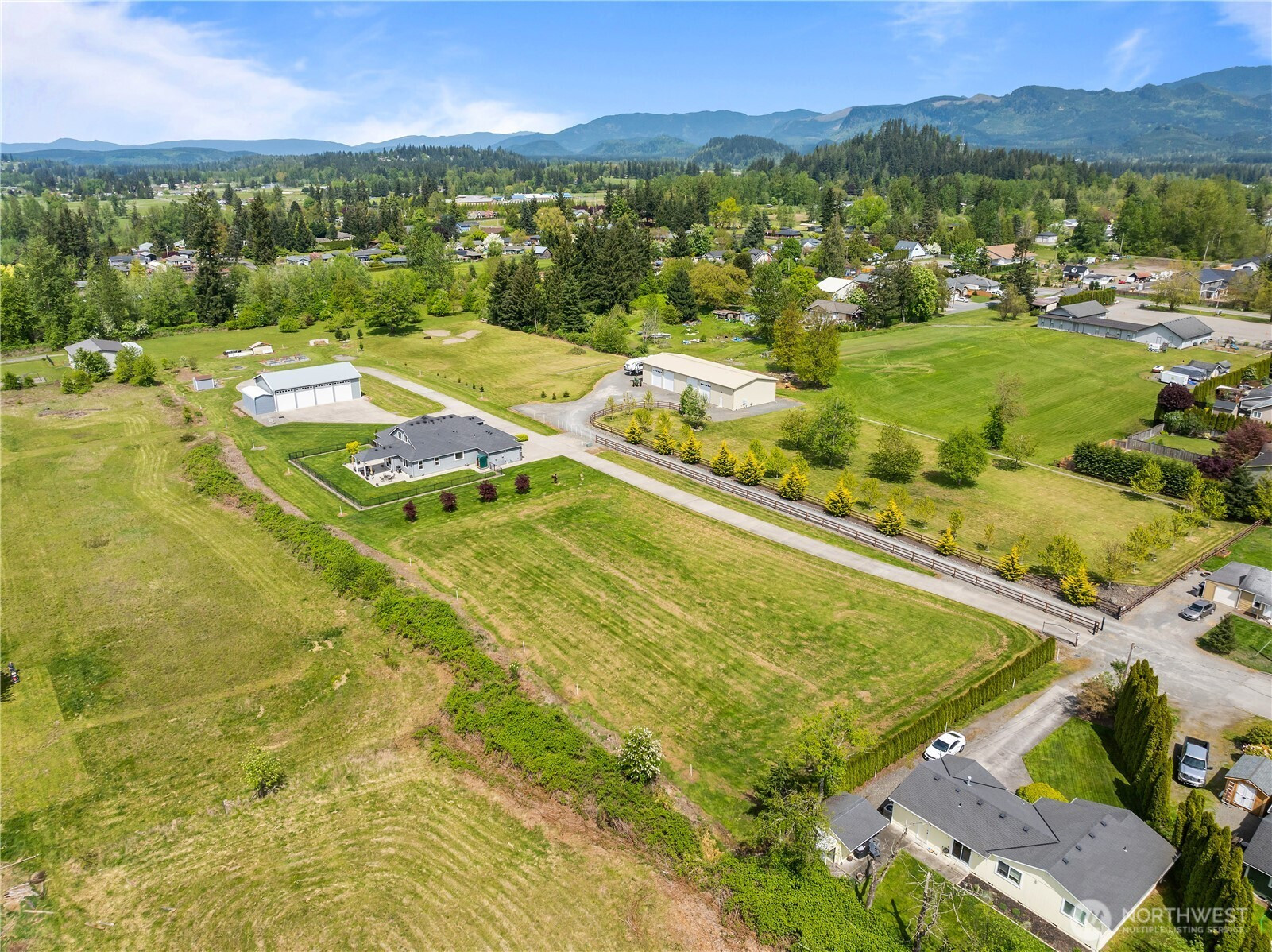 Mt. Rainier & foothill views at this 2018 Garrette Custom Homes resale on 2.82AC in city limits of Enumclaw w/ 4 beds, 2.75 baths, & 3,550SF. Open concept kitchen w/ granite CTs, SS appliances, double oven, adjacent dining room, coffee bar & island seating. Spacious living area w/ gas fireplace. Primary bedroom w/ private 5pc full bath includes WIC, custom no step shower, garden tub, & tile floors. Laundry/utility room w/ tile floors & mud sink. Bonus room up w/ 3/4 bath & 4th bedroom. 40'X60' detached shop w/4-bays, 1 drive-thru, 12'X14' doors (w/openers), separate utility meters, spray foam & batt insulation, 400kBTU gas heater, & 3/4 bathroom. Garden/tool shed, compost area + 10- 4'X8' raised garden beds. 90% efficient gas furnace w/AC.