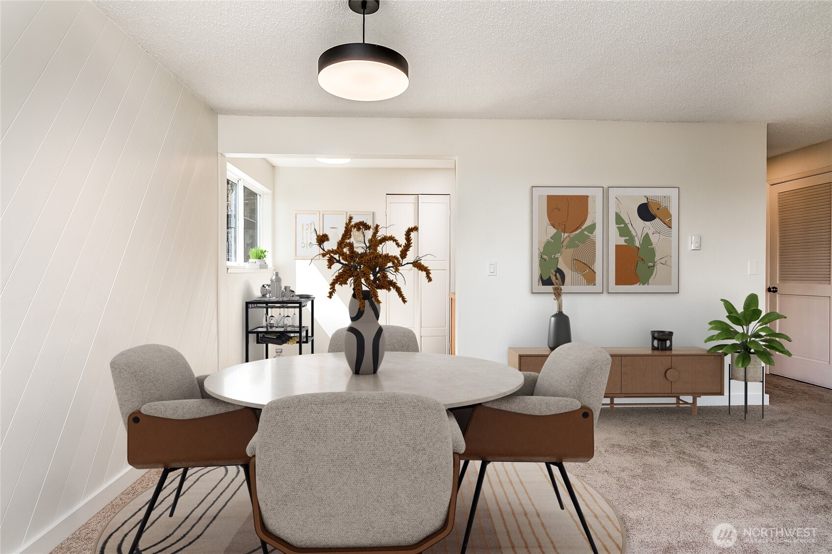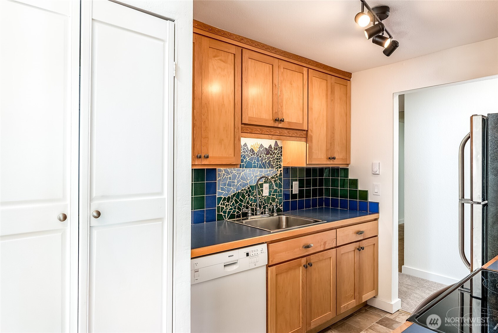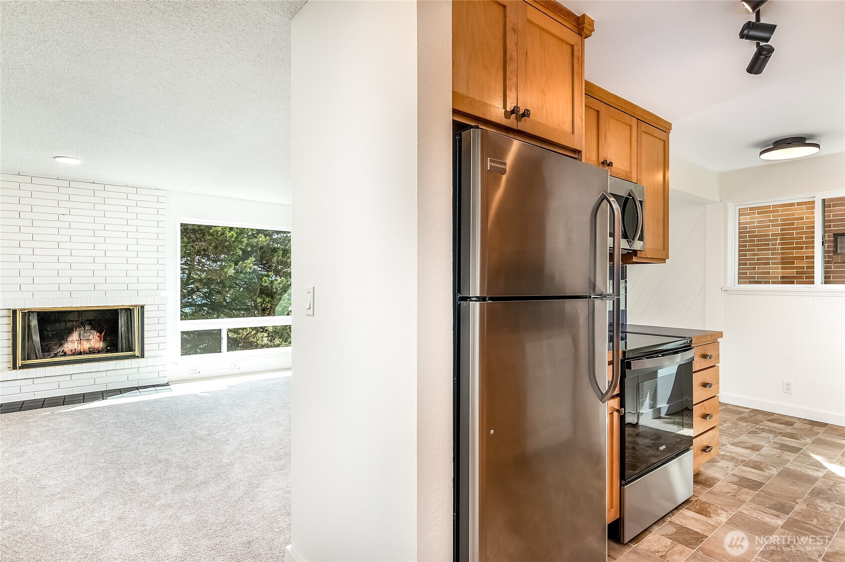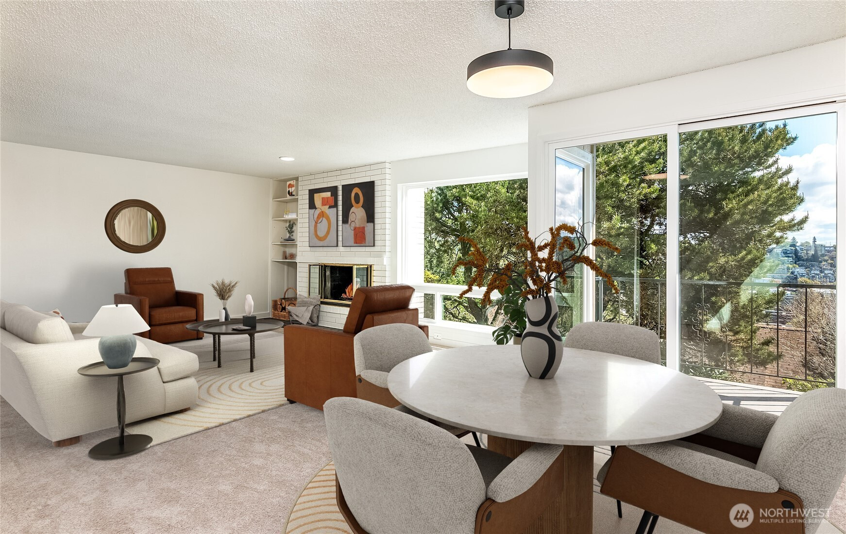 Welcome to this beautifully positioned, light-filled corner condo in the heart of Magnolia! Tucked within a quiet, well-maintained community of owners, this home offers a rare sense of privacy paired with the timeless charm of one of Seattle’s most beloved neighborhoods. Thoughtfully oriented with south and east facing windows, the space is filled with natural light year-round, enhanced by expansive, newly installed windows that brighten every corner. The open-concept layout lives larger than its footprint, featuring a spacious living area that flows seamlessly into a functional kitchen and dining space—perfect for both everyday living and entertaining. A cozy mid-century inspired wood-burning fireplace anchors the living room, adding warmth, character, and inviting Pacific Northwest ambiance. Thoughtful updates throughout include new windows, fresh interior paint, new flooring, updated lighting fixtures, an upgraded electrical panel, and newer appliances—making this home truly move-in ready. Step outside and enjoy the beauty of the Pacific Northwest, with mature landscaping featuring rose bushes and rhododendrons that enhance the peaceful setting. Just steps from Discovery Park, you’ll have easy access to miles of scenic trails, waterfront views, and nature escapes, all while being moments from Magnolia’s charming cafes, local shops, and convenient access to downtown Seattle. Experience the best of Magnolia living—peaceful, private, and close to it all. Welcome home!