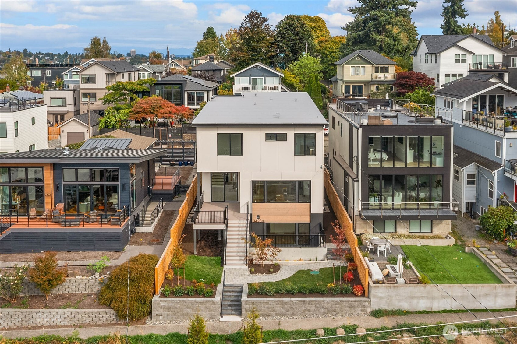 Perched atop North Queen Anne, this Thomas James Home blends thoughtful design with everyday beauty. Soaring ceilings and expansive east-west windows invite natural light and offer unobstructed west-facing views from the main level. Primary suite showcases even more stunning vistas of Salmon Bay, Shilshole, and Elliott Bay. Modern architecture pairs timeless finishes with a gourmet kitchen featuring gas cooking, plus a two-car garage, mudroom, and pantry entry for effortless living. The lower level includes a private-entry MIL/ADU, great for rental income, multi-gen living, rec room, or a flexible office. Steps from parks, waterfront trails, shops, and with easy access to downtown, SLU, and major employers. Now move in ready!