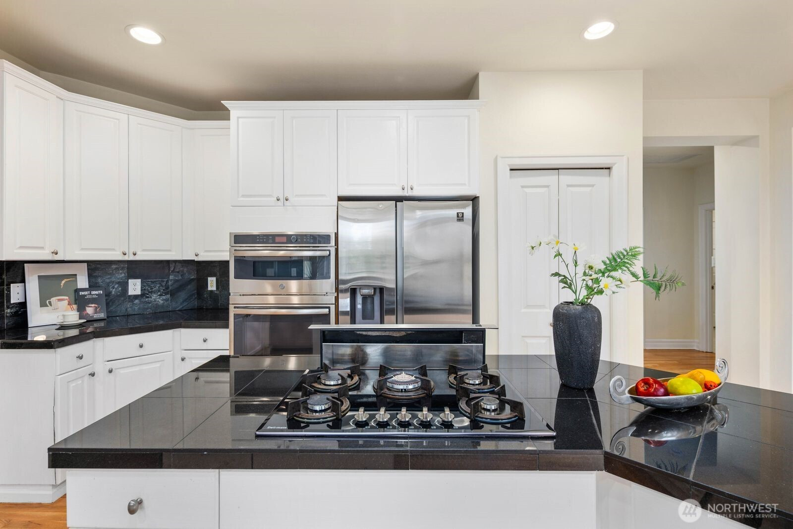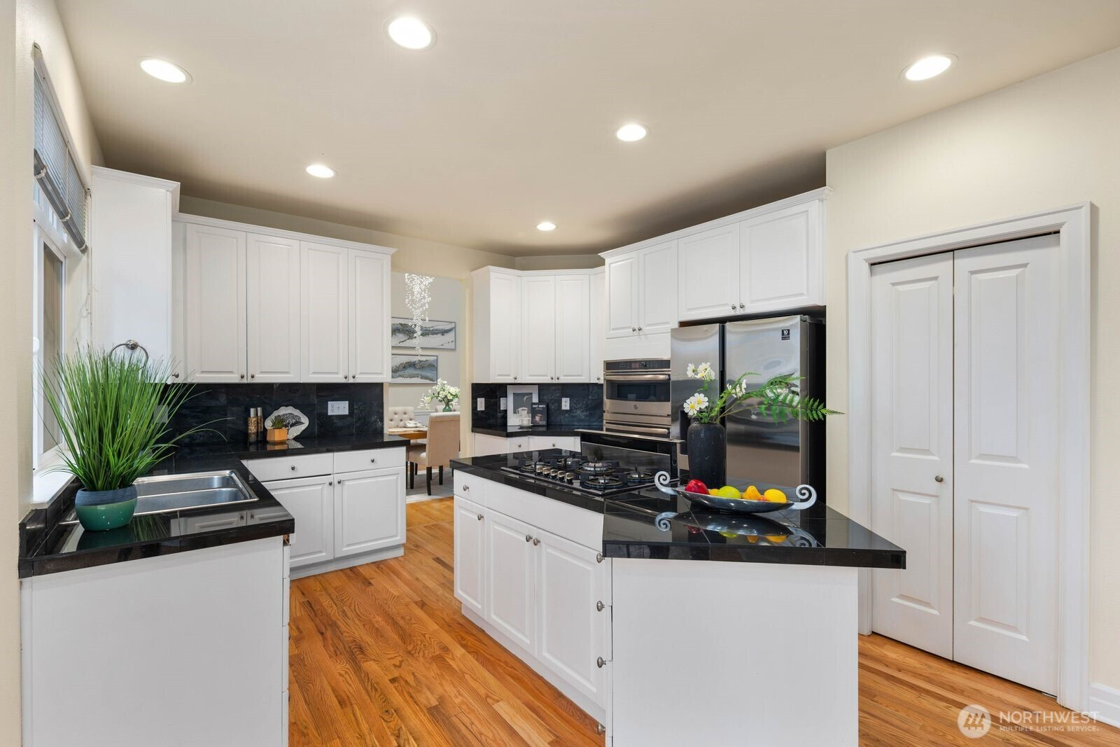 Beautiful home in the desirable Lacrosse community! This spacious 3 bed + bonus home features a 3-car garage and an open-concept layout designed for modern living. The bright family room flows seamlessly into the kitchen, complete with granite tile countertops, stainless steel appliances, a large island with gas cooktop, and a cozy dining nook. Fully landscaped front and back with a fenced yard and oversized deck—perfect for entertaining. Enjoy added privacy backing to a peaceful greenbelt.Permitted daylight basement ADU with separate entry offers exceptional flexibility, featuring its own kitchen, living area, 2 bedrooms, and 2 bathrooms—ideal for multi-generational living or rental income. Move-in ready and meticulously maintained!