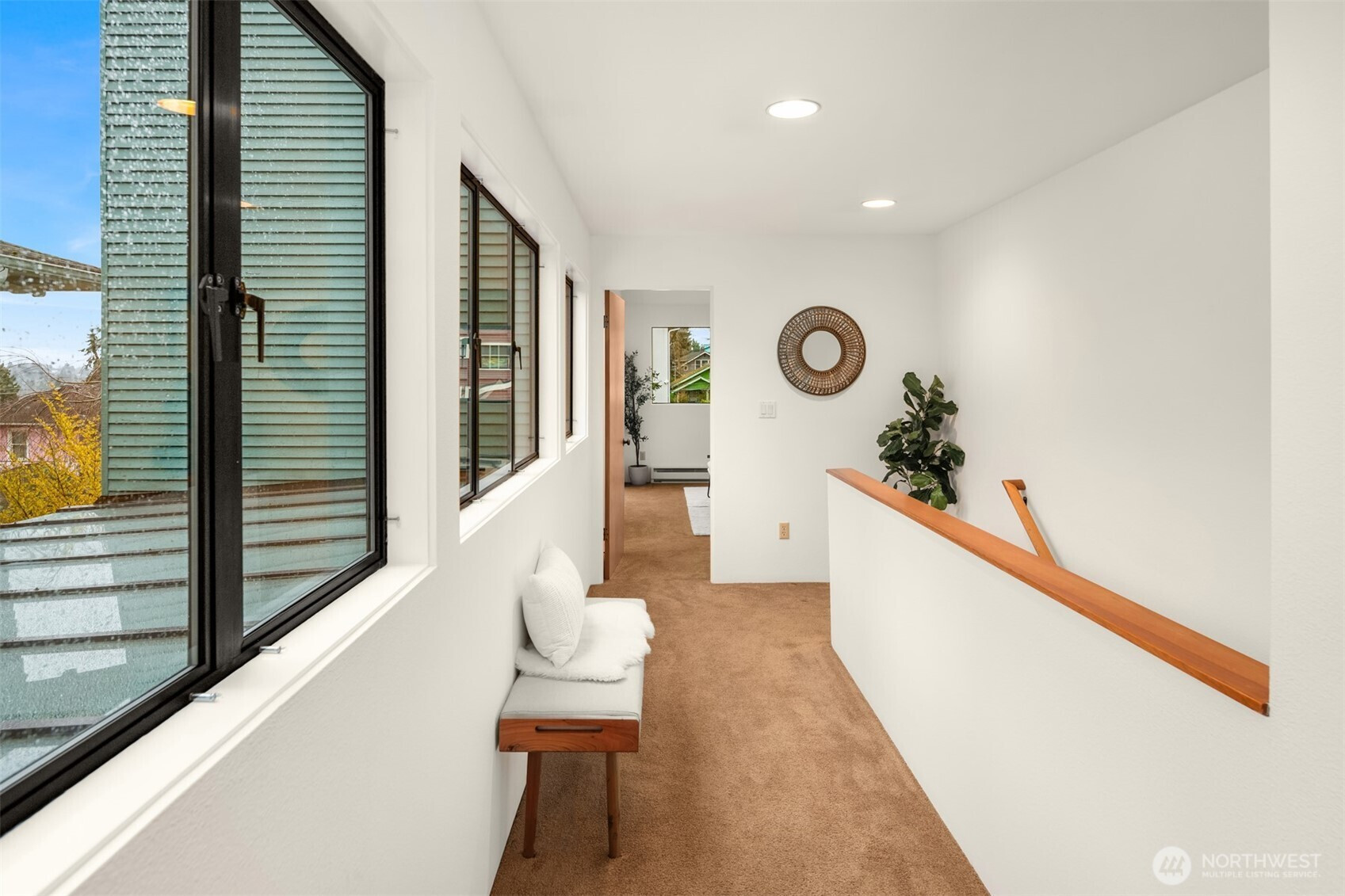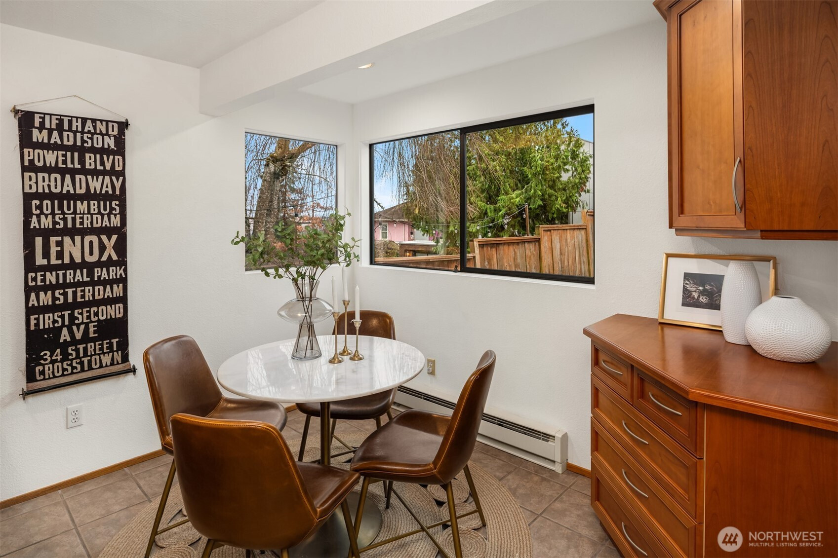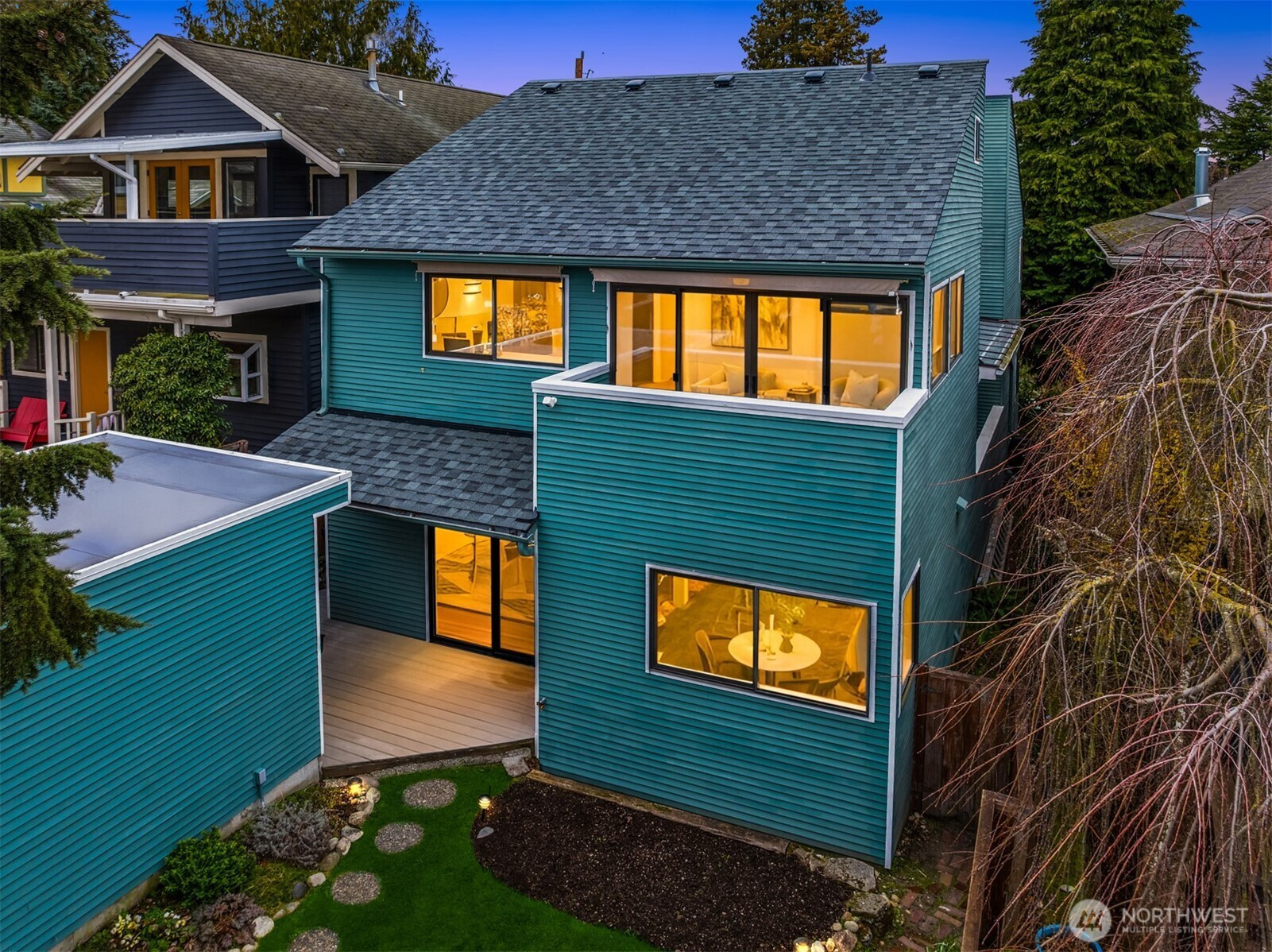 Perfectly sited a half block from “The Ridge”, this Phinney home reflects exceptional pride of ownership throughout, having been meticulously cared for and loved by the same owners for nearly 40 years. A classic and highly desirable layout places the living, dining, and kitchen spaces on the main level, creating an easy, natural flow for everyday living and entertaining. Just off the main floor, a covered deck extends your living space outdoors, making it an ideal spot for year-round al fresco dining and gathering in any season. Upstairs offers three bedrooms, including a peaceful primary en suite featuring a charming south-facing sunroom filled with natural light - the perfect place to read, work, or unwind. Step onto the private balcony for fresh air and glimpses of Green Lake and the snow-capped Cascades. Outside, enjoy a fully-fenced backyard for pets and play, with sunny southern exposure, dalhia beds, and additional garden space. The detached garage offers secure and easy parking with convenient alley access. Recent updates include fresh interior paint and a brand-new roof, offering you peace of mind and move-in-ready ease. Spend weekends exploring your neighborhood full of vibrant restaurants and cozy coffee shops, making spontaneous dinner plans, morning coffee runs, and weekend strolls around Green Lake part of everyday life. Full of community energy and just blocks from the Phinney Neighborhood Association’s beloved community center, this is city living at its best.