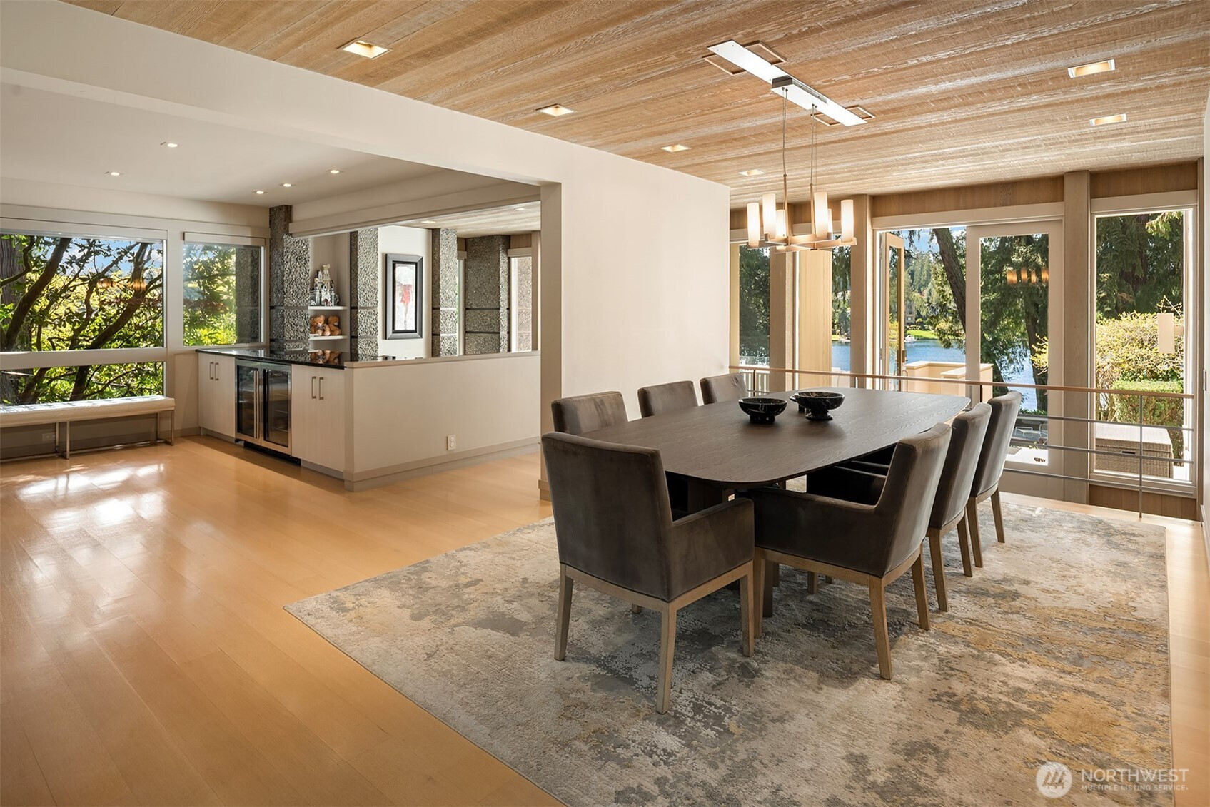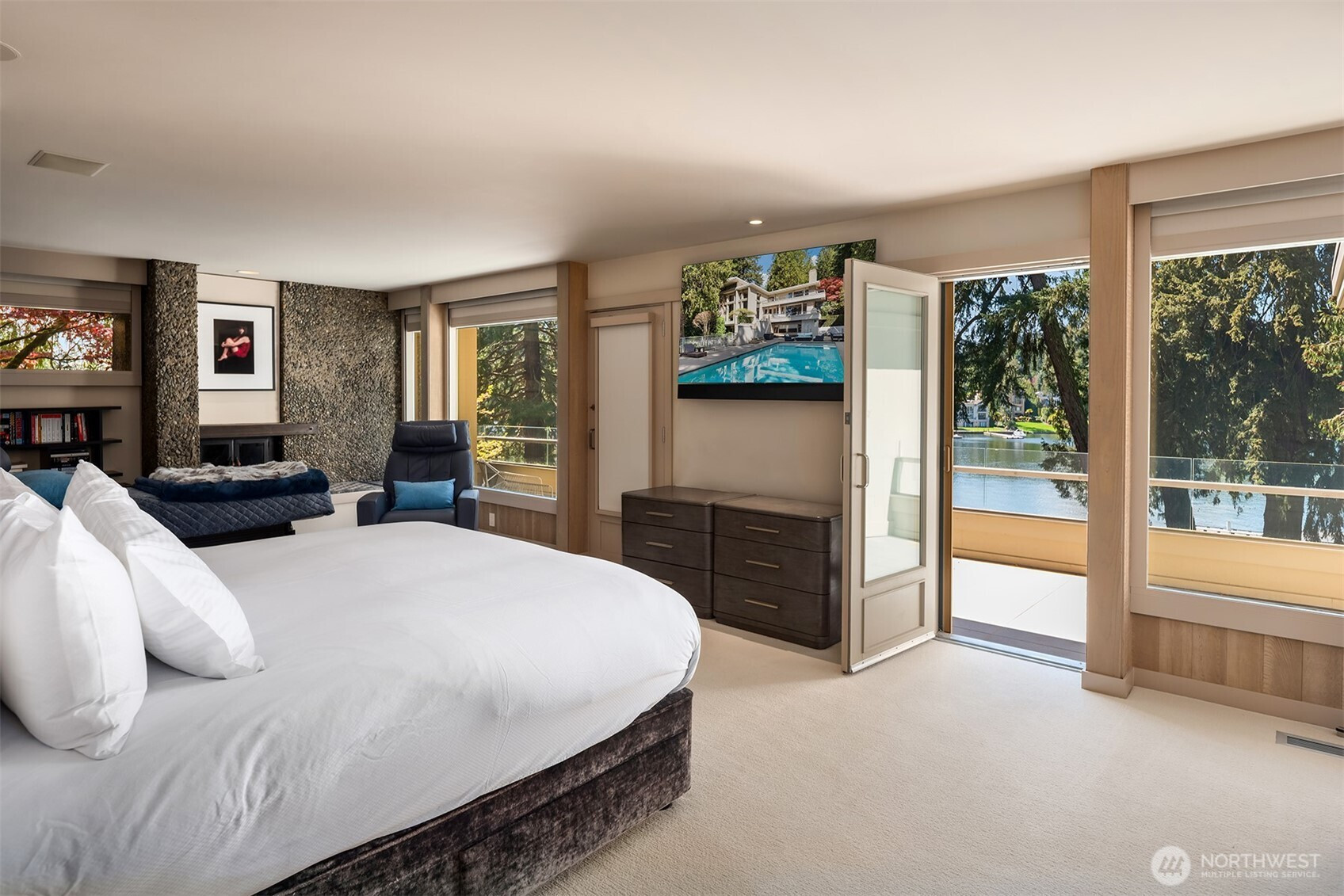 Nestled within one of the Northwest’s most coveted communities, this gated, west-facing Hunts Point waterfront Contemporary highlights a stunning Olson Kundig refresh executed by Toth Construction. Set on 1.46 arboretum-like acres, a private drive leads to an architectural masterpiece defined by stone and glass. Soaring walls of windows and a curated palette of natural materials frame captivating lake views. The versatile floor plan offers exceptional everyday living and entertainment areas with epicurean kitchen, and generous dining space. Six bedrooms, two offices, and a dedicated secondary wing provide ideal flexibility, while the lower level features a rec room, gym, and additional bedrooms. Outdoors, a serene pool and multiple decks overlooking the water. The expansive lawn extends to the 112 feet of shoreline. A rebuilt dock accommodates a 65+ foot yacht, helipad, multiple boats and two lifts. Arrive by land, water, or air and embrace the lake lifestyle in this rare legacy estate.