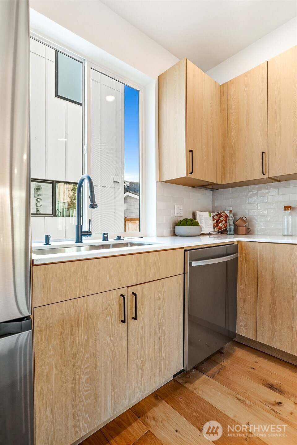 Location! Location! Location! Best price for the best views! Well worth the visit just for the views. Are you looking for a place with amazing views; look no further. Very unique 6 unit project in one of North Seattle's most sought after neighborhoods; Sunset Hill. This unit has West facing windows that provide an abundance of natural light. Main floor has an open floor plan with a well-appointed kitchen, granite countertops, stainless steel appliances and an island for food prep and informal dining. Large double sliding doors lead out to a backyard. A powder room finishes off the amenities on this floor. The 2nd floor has a full bath, washer/dryer hookups, and two bedrooms. The top floor en suite primary bedroom has a five piece bath and exceptional views out the bathroom window. This bedroom has a large walk-in closet, wonderful views from the West facing window and a covered deck. Proceed up the stairs to the rooftop deck that has incomparable views of the Sound and Olympic Mountains. The home near Picolinos, Ray’s, Shilshole Marina, Ballard Locks, Elks, Golden Garden, Sunset Park & much more!