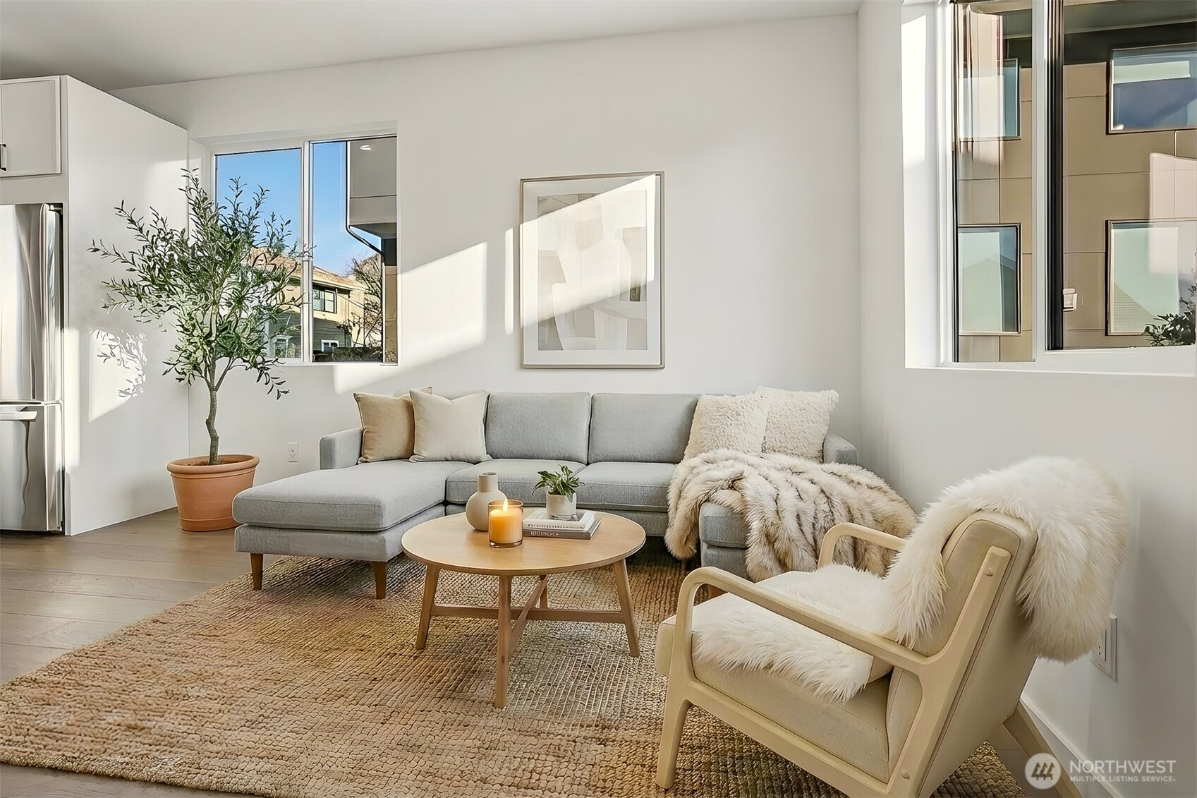 Best price! Location! Location! Location! Very unique 6 unit project in one of North Seattle's most sought after neighborhoods; Sunset Hill. This unit has West facing windows that provide an abundance of natural light. 1st floor has a bedroom, den/office & a full bath. The 2nd floor has an open floor plan with high ceilings & large picture windows. The kitchen is well appointed with stainless steel appliances. 3rd floor has a spacious primary bedroom & 3/4 bath. The primary bedroom has territorial views. Fenced yard. 1 assigned off-street parking spot. Near Picolinos, Ray’s, Shilshole, Ballard Locks, Elks, Golden Garden, Sunset Park & much more.