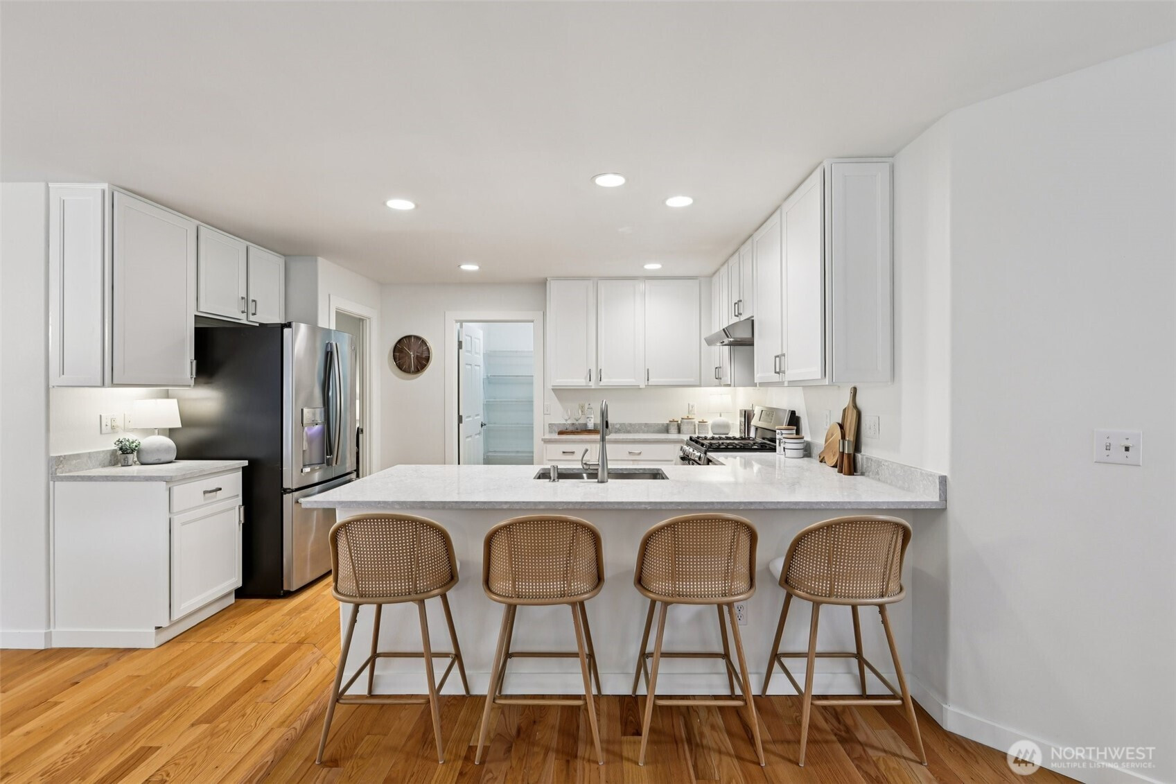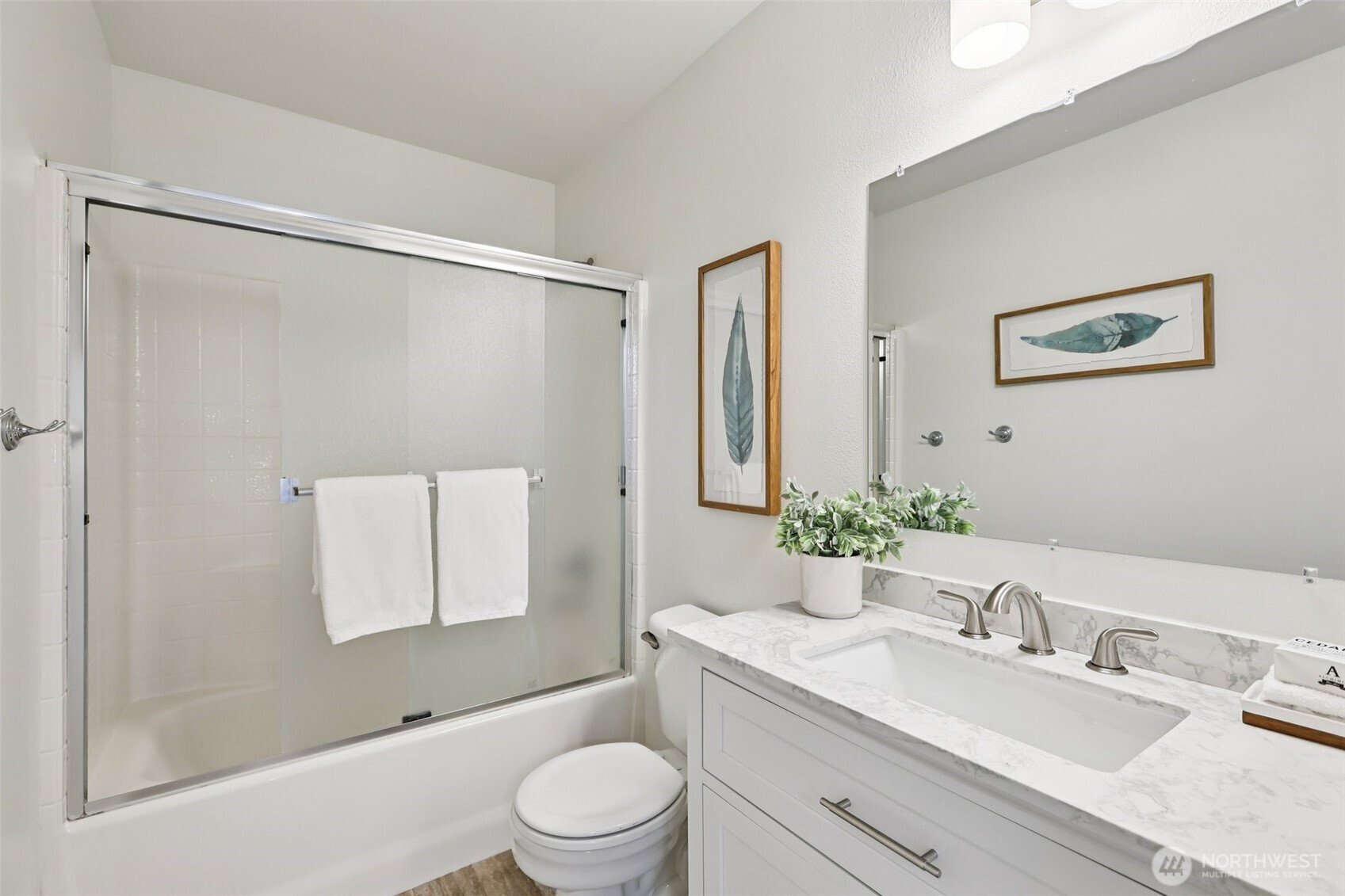 Fall in love with this tastefully updated home on one of the most desirable streets in all of Snoqualmie Ridge—so iconic it was chosen as the backdrop for the Seahawks’ annual lottery commercial. With over $50K in recent renovations, this home features stunning updates you’ll want to see in person. Highlights include a freshly updated 5pc spa-like primary bath with a soaking tub. You'll wake up each morning forgetting if you went to bed in Snoqualmie or if you woke up at the 'Post' hotel in Leavenworth. Additional upgrades include fresh interior paint, new baseboards and trim, updated windows, and a beautifully refreshed kitchen featuring new countertops, modern cabinetry, and sophisticated hardware. The flexible layout includes an additional bedroom and full bath on the main floor—perfect for guests or multi-generational living. Enjoy open-concept living and a private, fully fenced backyard overlooking a peaceful greenbelt. A neighborhood park sits directly across the street, and the home is located within a highly rated school district. Pre-inspected. Move-in ready and truly one you’ve been waiting for!