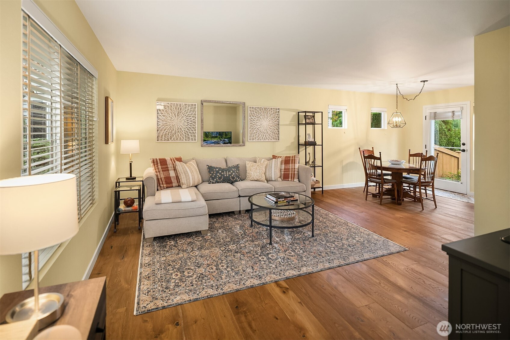 Fabulous stand-alone condo in the heart of Snoqualmie Ridge. Just steps to park, gym, shopping, dining, top-rated schools, 20 miles of nature trails, and a community pea patch garden. Home features so many upgrades, including new interior paint, new engineered hardwood floors downstairs, and new carpet & luxury vinyl floors upstairs. New baseboards, light fixtures, quartz countertops & tile backsplash in the kitchen and bathrooms. New water heater, dishwasher, and washer/dryer. Heated bathroom floors. New blinds and blackout drapes. Custom closet organizers. Dedicated parking spot conveniently located at your back door. Fenced and landscaped backyard maintained by HOA. Must see this home, ready to move in and enjoy.