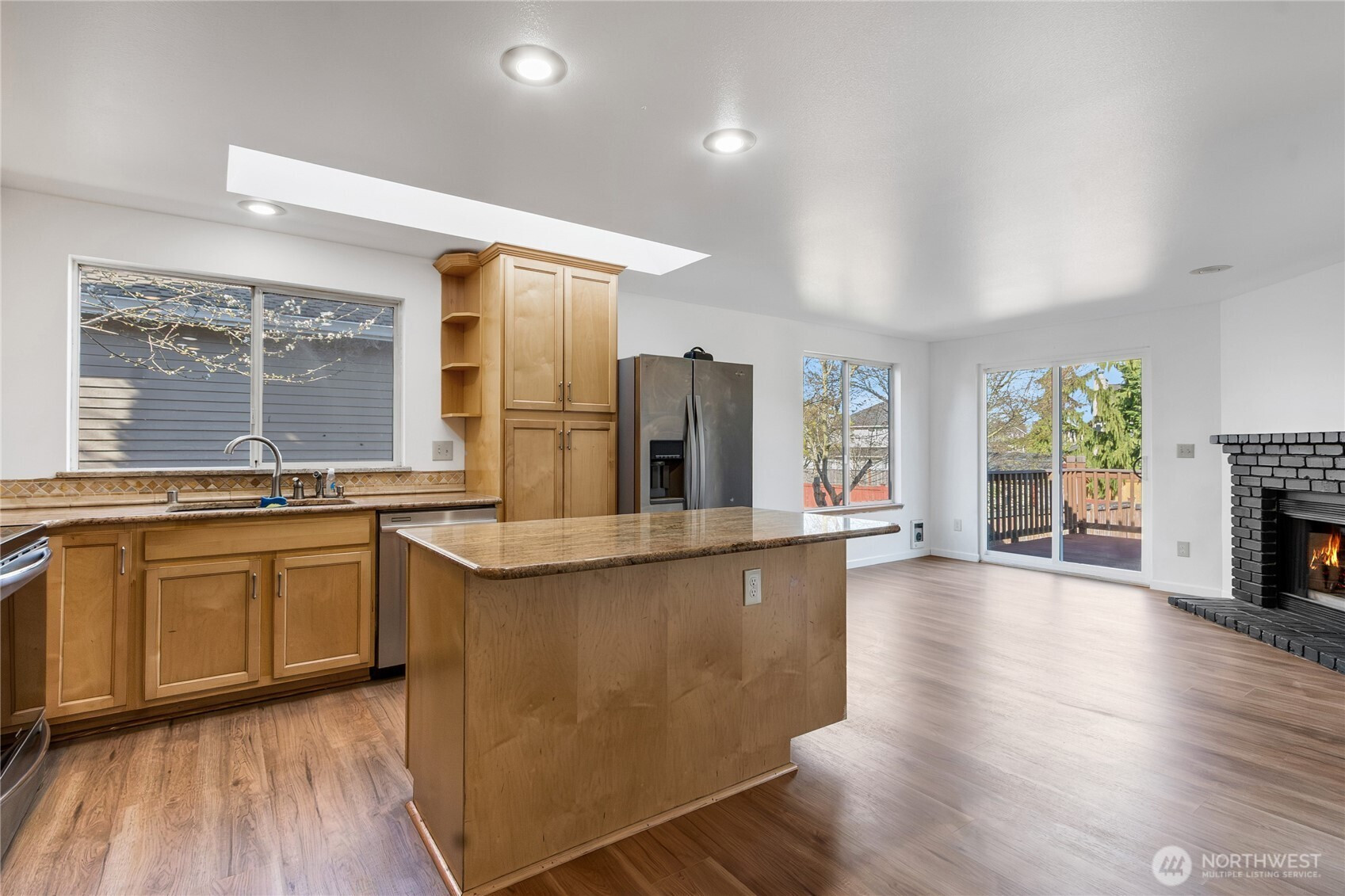 Updated 3 bed, 2 bath rambler in Federal Way’s highly desirable Sherwood Forest neighborhood, backing to a private greenbelt! This move-in ready home offers modern upgrades, open-concept living, and a prime location just minutes to I-5 for an easy commute. The updated kitchen features slab granite countertops, ample cabinetry, and quality finishes—perfect for everyday living and entertaining. The open great room design showcases vaulted ceilings, large windows, and abundant natural light throughout. A spacious family room with cozy fireplace opens to a deck and fully usable backyard, creating seamless indoor-outdoor living with rare greenbelt privacy. Additional highlights include new and durable flooring, fresh interior paint, and a newer roof for peace of mind. Located in a quiet, established neighborhood close to shopping, schools, parks, and major highways. Single-level homes with greenbelt privacy in Sherwood Forest are hard to find—don’t miss this opportunity!