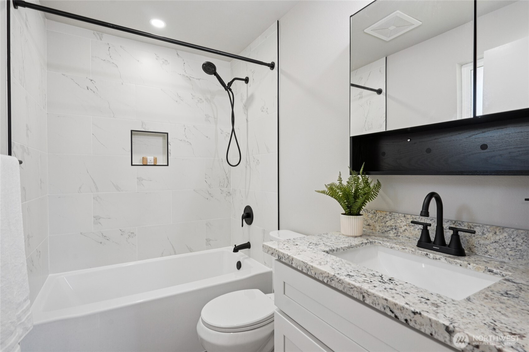 Beautifully remodeled 4 bedroom Twin Lakes home situated on an expansive corner lot w/lush mature landscaping. This residence feels brand new with all new flooring & lighting. Kitchen & bathrooms feature new cabinetry & granite counters. New SS appliances. Open & inviting layout blends modern finishes w/timeless comfort, offering plenty of space for living & entertaining. Oversize living room w/gorgeous wall fireplace & direct access to fully fenced back yard & patio. Primary br w/ensuite & bathtub, main bath w/walk-in shower. Enjoy the peace of a well-established neighborhood with the benefits of a fully updated home—Move in ready. Every detail evokes the feel of a brand-new luxury home, blending sophistication & comfort throughout.