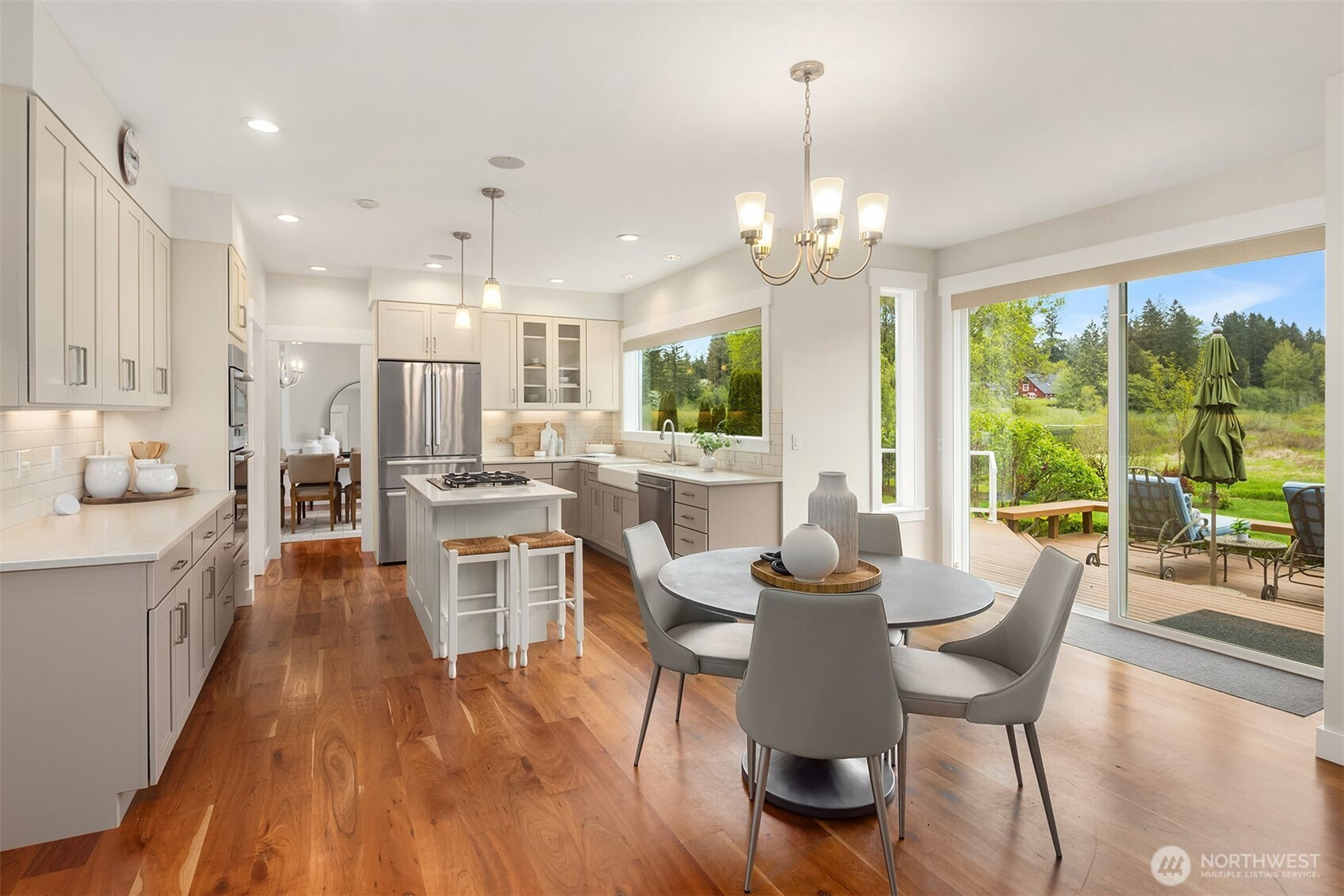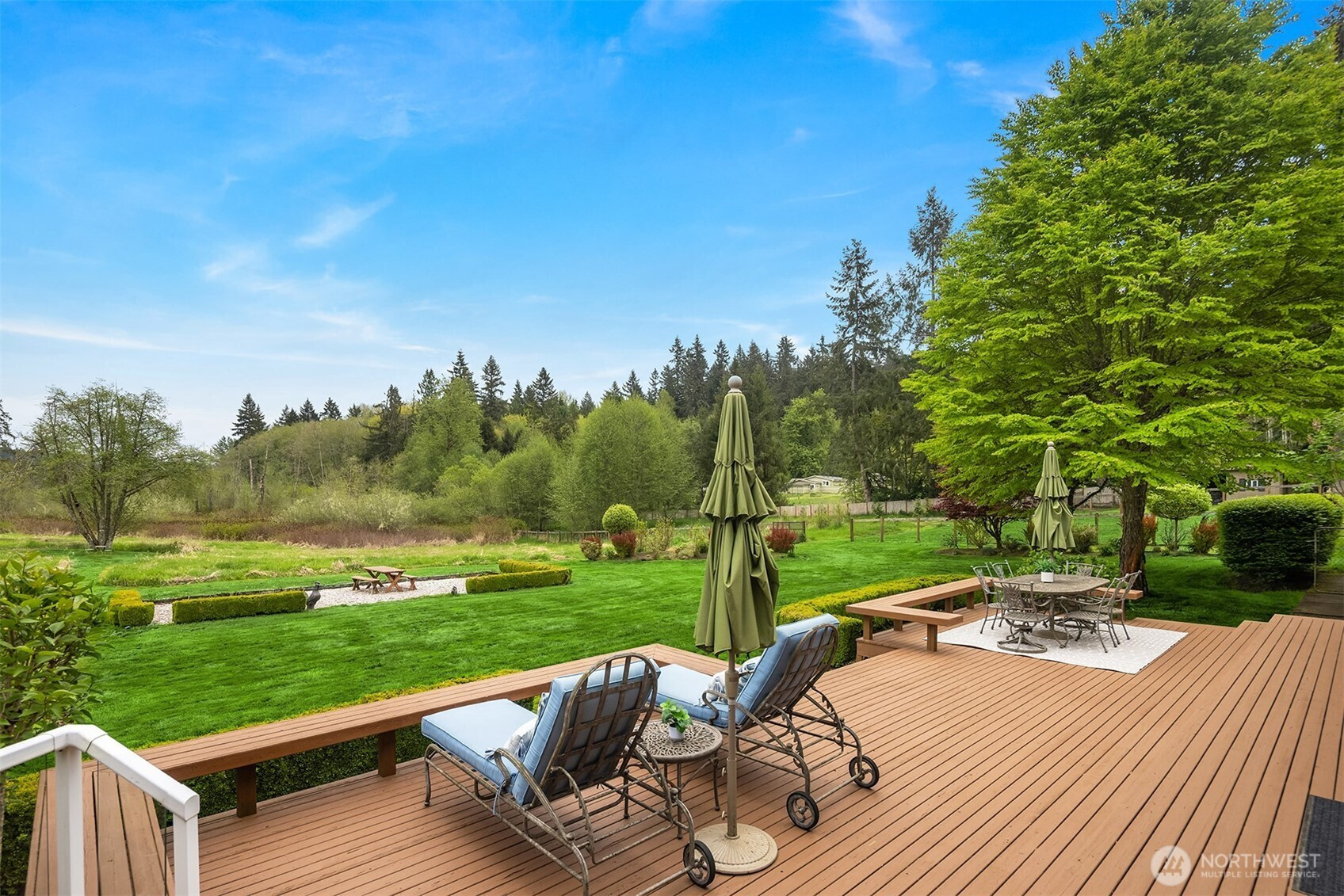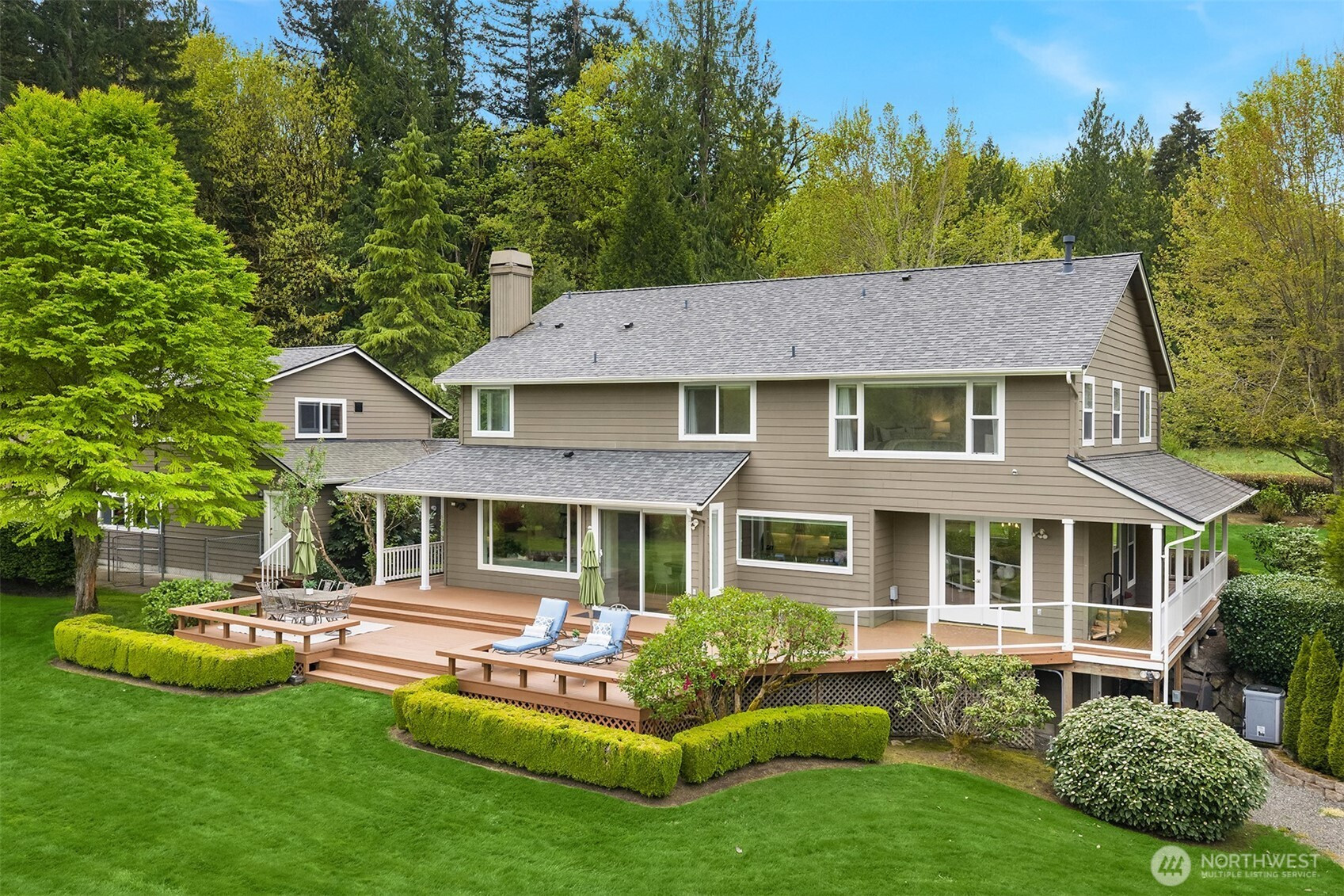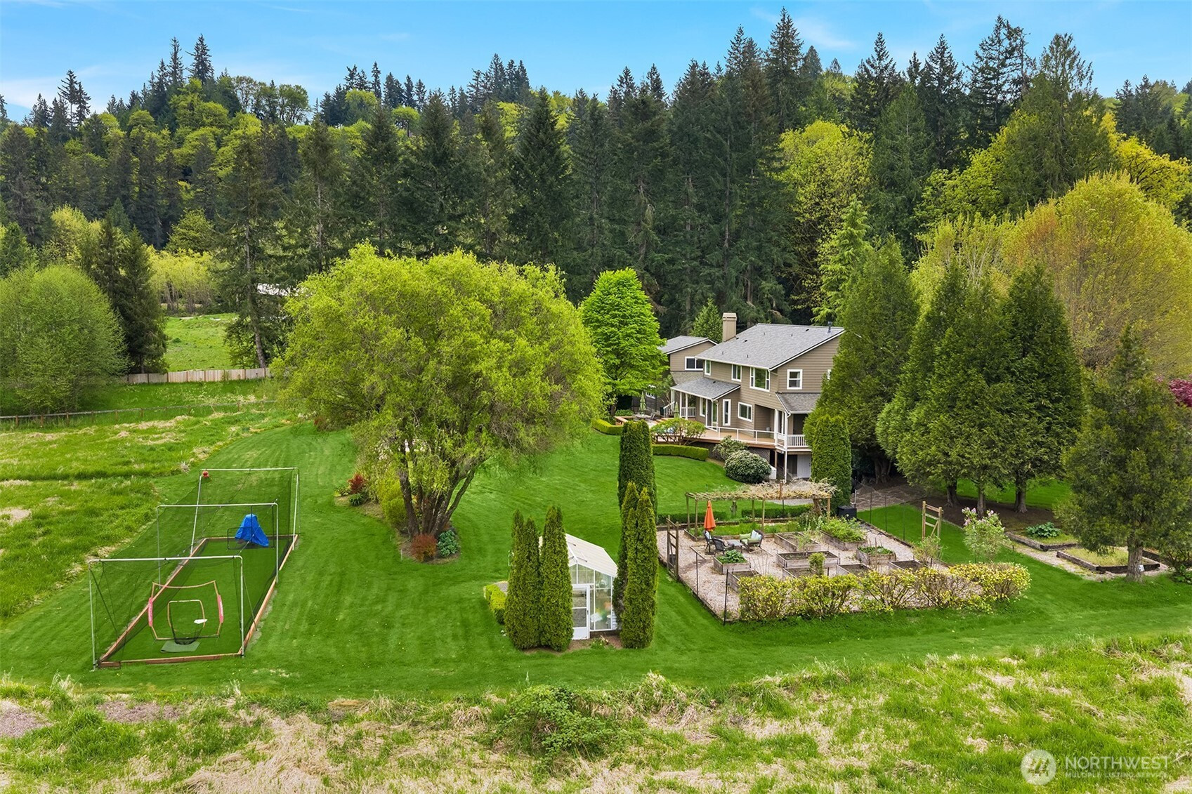 Tucked down a quiet lane, on 5 acres, sits a rare opportunity to enjoy stunning views of Mt Si while living in a one of a kind custom built home. Only the 2nd time on market, this meticulously maintained, custom build offers timeless & elegant finishes. The private, mature property boasts lush landscaping, fruit trees, garden space, a green house, fully fenced pastures & a new batting cage. The flat, usable land offers endless opportunity. Inside, expansive windows offer breathtaking views of nature from every room. The main floor is highlighted by hardwood floors, white wainscoting woodwork, a home office & 2 fireplaces. The Chef's kitchen features stainless steel appliances, a 4 burner range, walk-in-pantry and ample cabinet space. The perfect backdrop for entertaining; enjoy french doors from the dining room & kitchen, both extending to the large wrap around deck. Upstairs; the spacious primary suite boasts mountain views, a walk-in closet & newly remodeled spa like bath w/ radiant floor heat. 2 bedrooms & a functional loft complete the 2nd floor. A covered walkway leads to the detached 3 car garage which includes a studio apartment with private entrance, bedroom, updated full bath, kitchenette & laundry. Equipped with a brand new whole home generator, smart home technology, EV charger and abundant storage throughout, this home is a true retreat from it all with the convenience of shopping, trails & 520 minutes away. Great Lake Washington schools! Welcome Home!