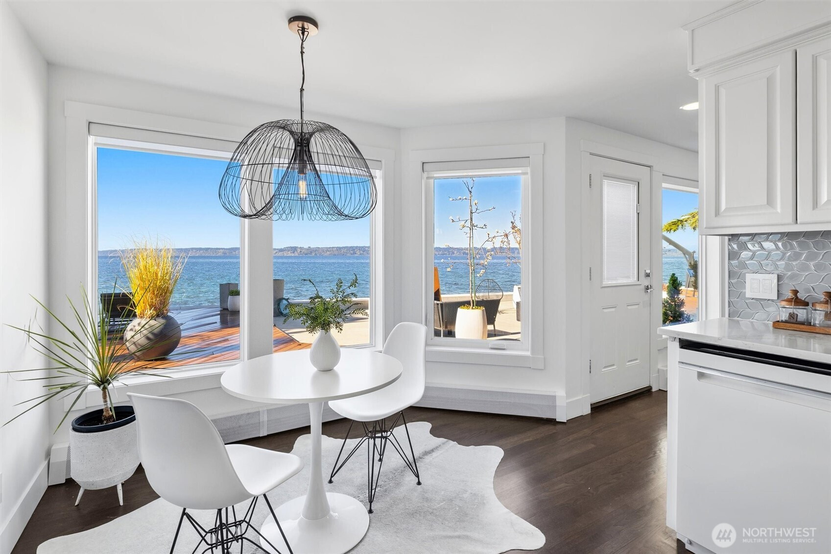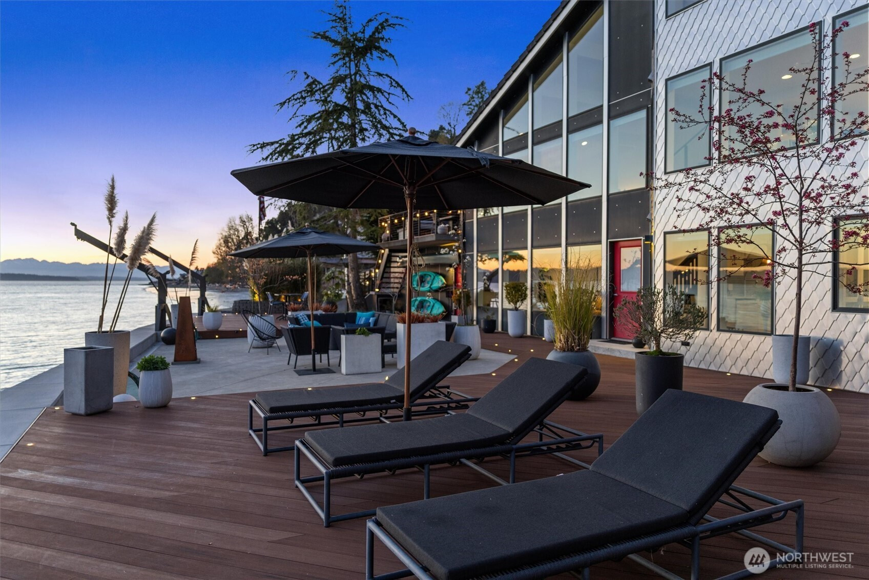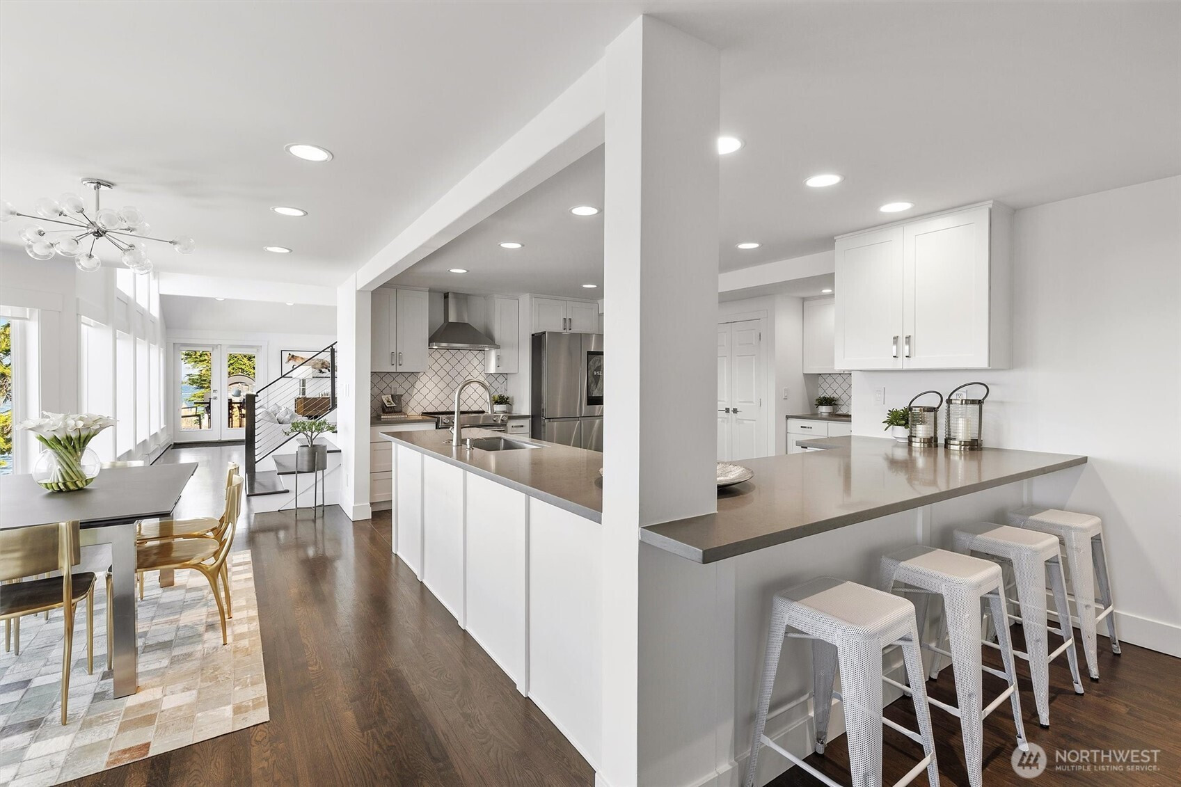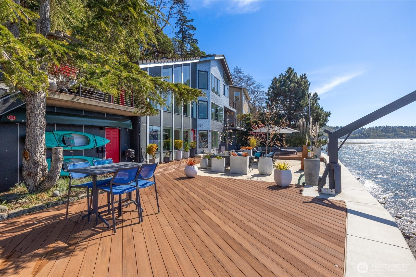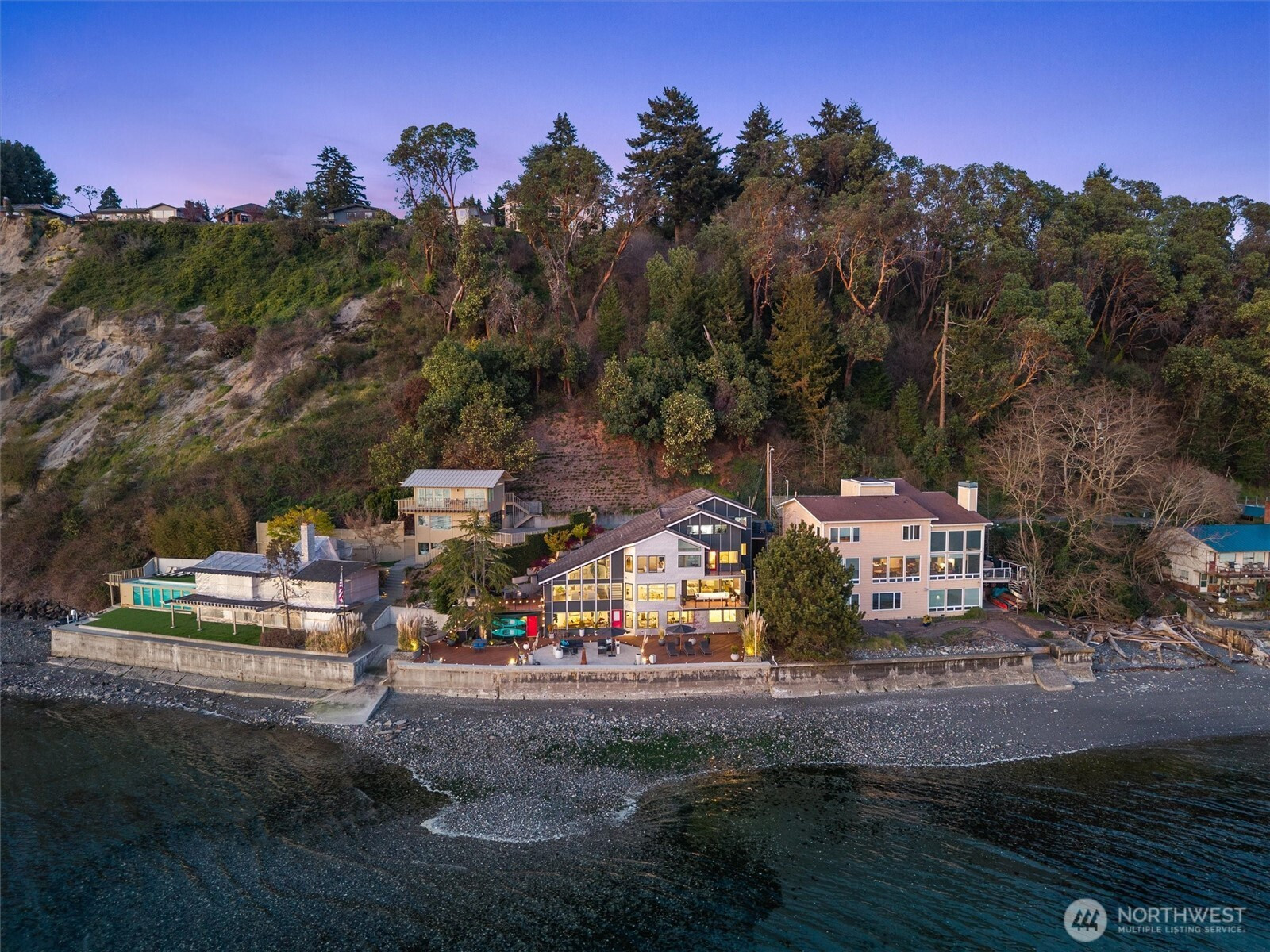 Modern waterfront living is redefined in this extensively upgraded home blending luxury, function, and durability. A comprehensive remodel introduces premium finishes throughout—custom hardwood flooring, designer lighting, and advanced smart-home integrations—paired with a German-engineered hydronic heating system. The open living spaces are enhanced by expansive windows capturing dynamic water and wildlife views, while multiple decks extend the experience outdoors. A chef-inspired kitchen is complemented by a second full kitchen, ideal for guests or extended living. The primary suite offers a spa-like retreat with heated marble floors and panoramic outlooks. A private elevator connects all levels, including a standout garage designed for enthusiasts with workshop, gym, and high-capacity infrastructure. Located near parks, local amenities, and major routes, this home offers a rare opportunity to enjoy waterfront living with thoughtful design and long-term value.