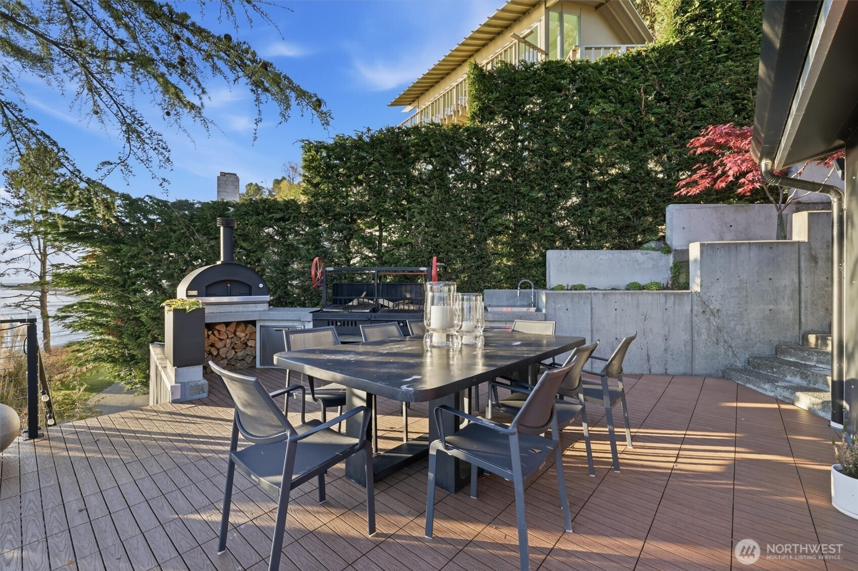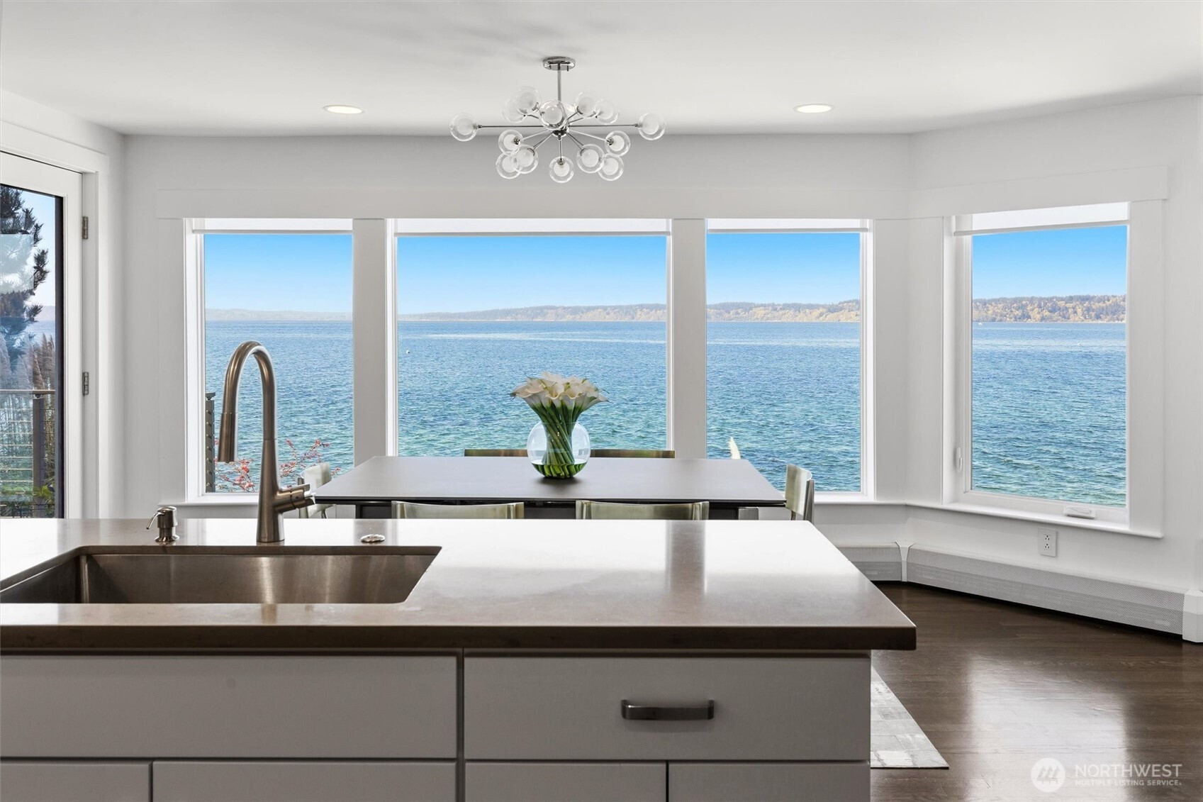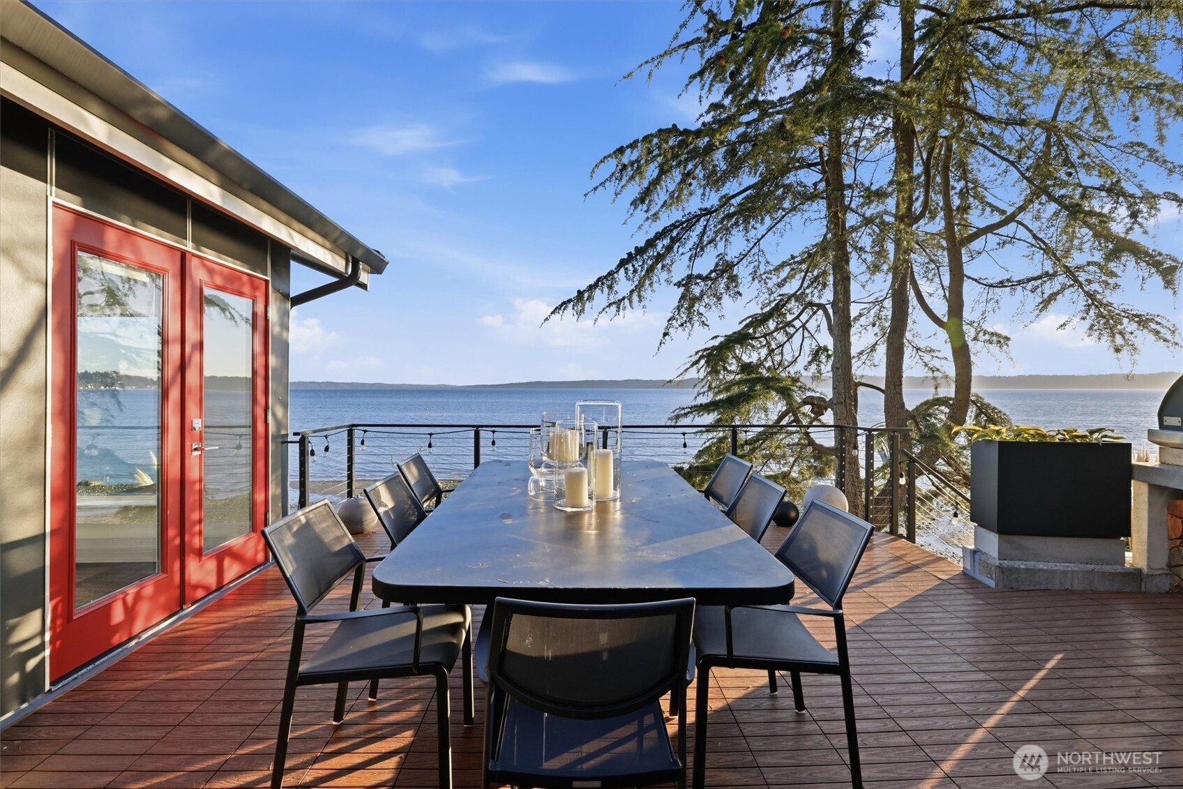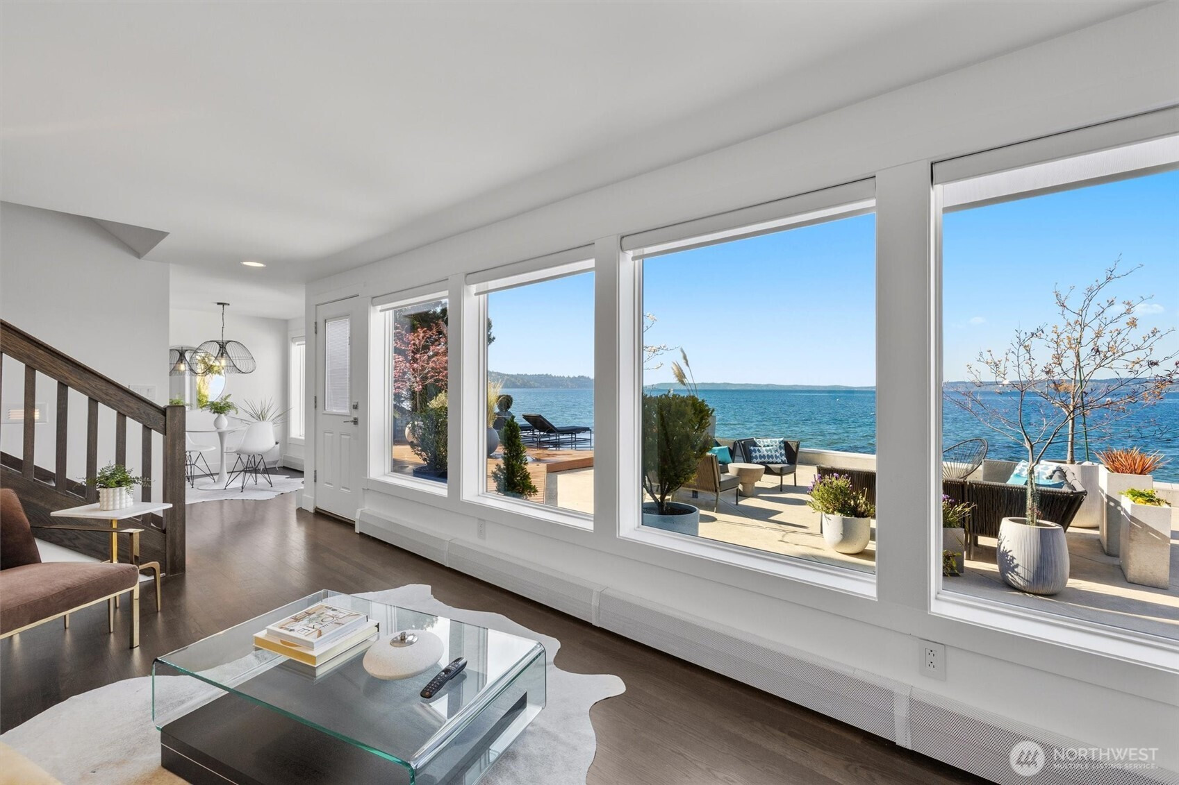 Modern waterfront living is redefined in this extensively upgraded home blending luxury, function, and durability. A comprehensive remodel introduces premium finishes throughout—custom hardwood flooring, designer lighting, and advanced smart-home integrations—paired with a German-engineered hydronic heating system. The open living spaces are enhanced by expansive windows capturing dynamic water and wildlife views, while multiple decks extend the experience outdoors. A chef-inspired kitchen is complemented by a second full kitchen, ideal for guests or extended living. The primary suite offers a spa-like retreat with heated marble floors and panoramic outlooks. A private elevator connects all levels, including a standout garage designed for enthusiasts with workshop, gym, and high-capacity infrastructure. Located near parks, local amenities, and major routes, this home offers a rare opportunity to enjoy waterfront living with thoughtful design and long-term value.
