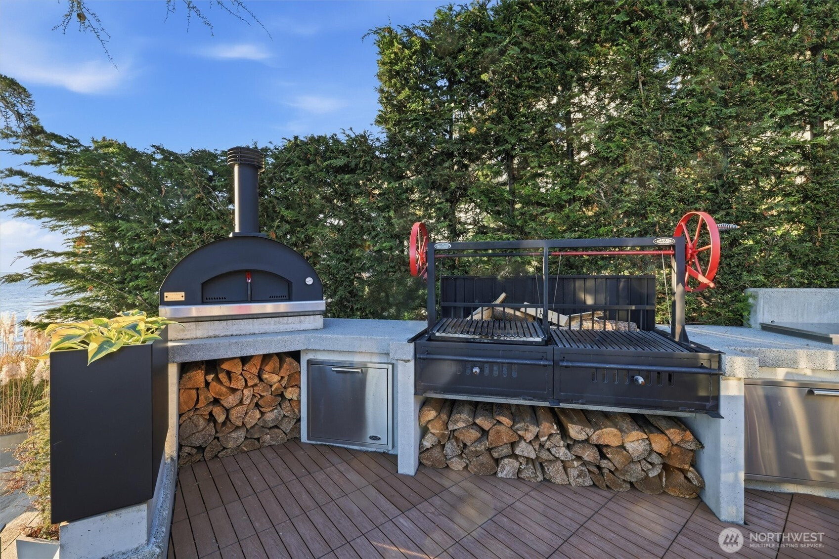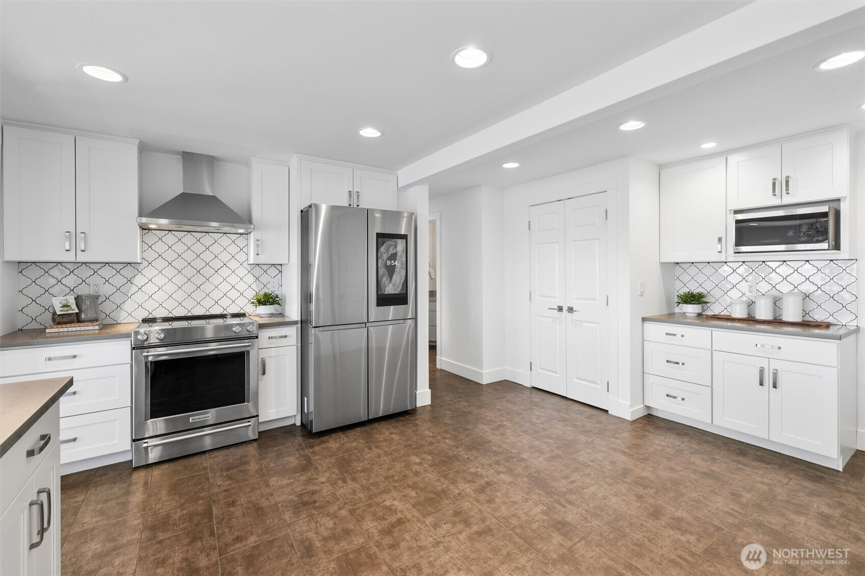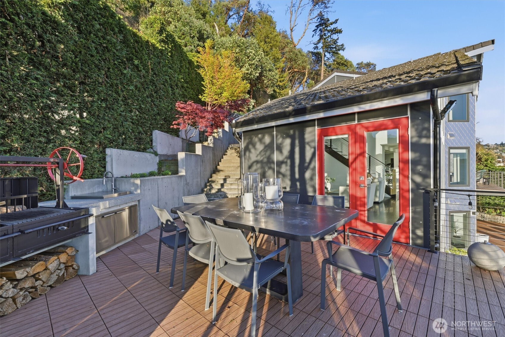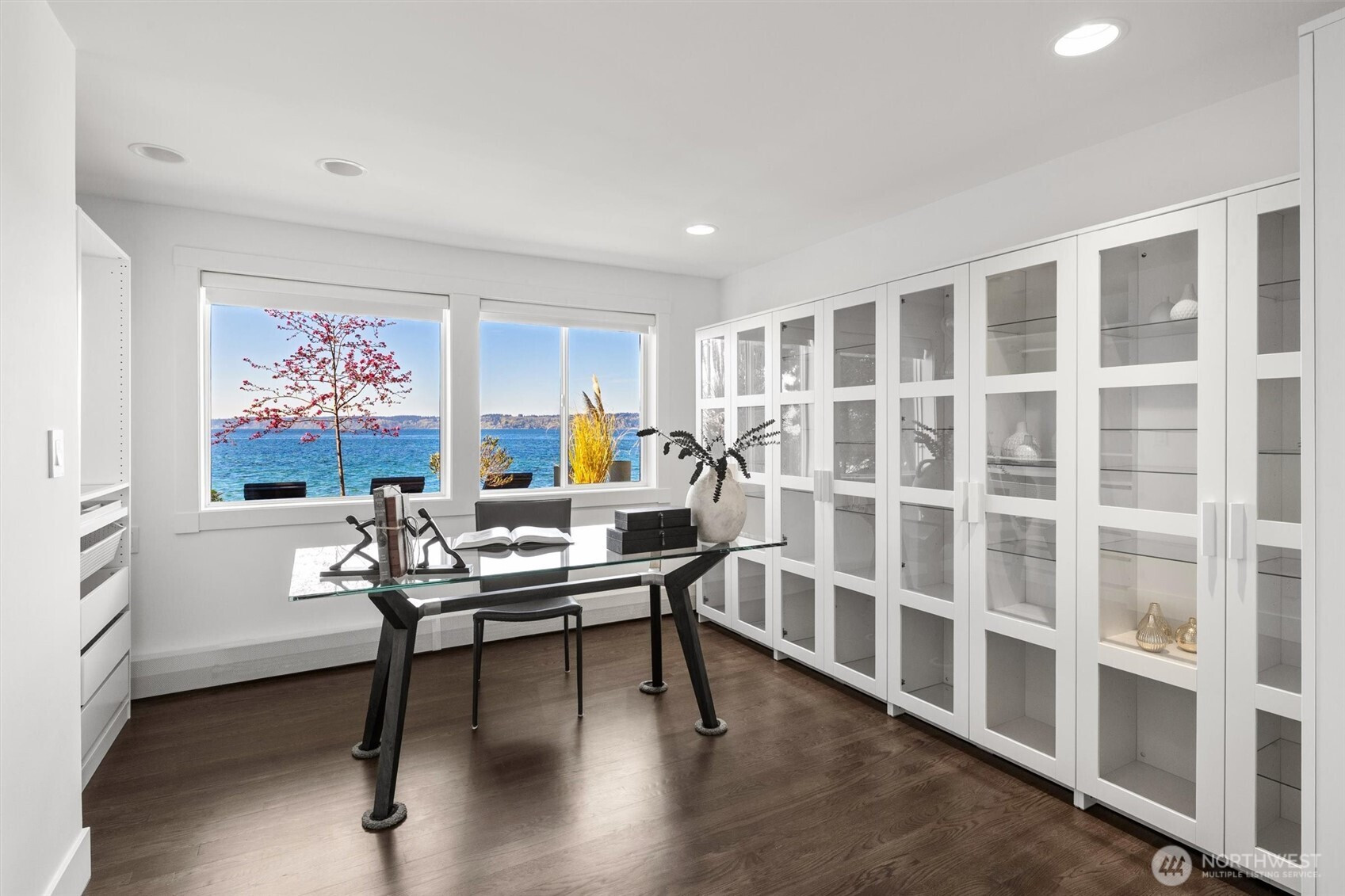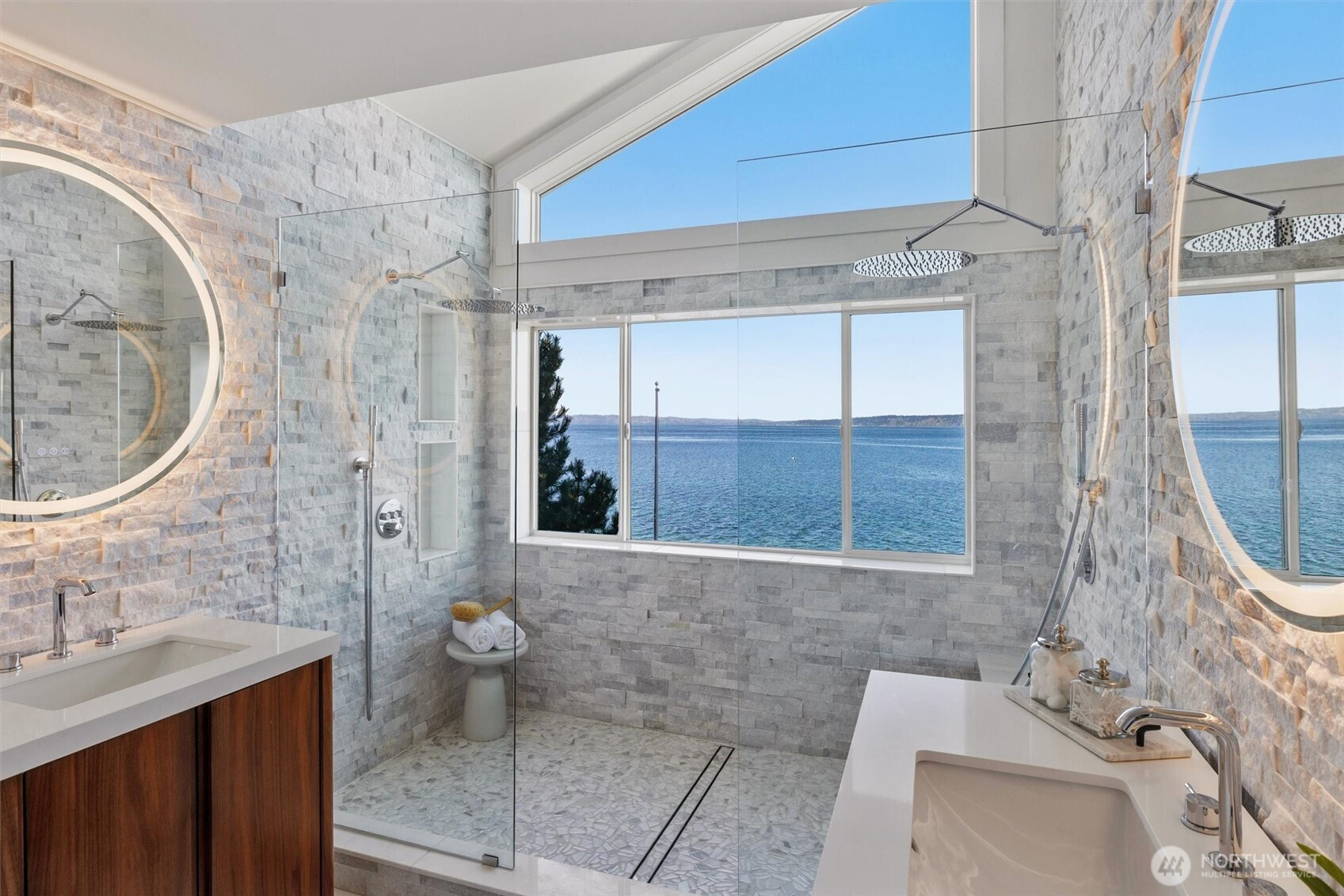 Modern waterfront living is redefined in this extensively upgraded home blending luxury, function, and durability. A comprehensive remodel introduces premium finishes throughout—custom hardwood flooring, designer lighting, and advanced smart-home integrations—paired with a German-engineered hydronic heating system. The open living spaces are enhanced by expansive windows capturing dynamic water and wildlife views, while multiple decks extend the experience outdoors. A chef-inspired kitchen is complemented by a second full kitchen, ideal for guests or extended living. The primary suite offers a spa-like retreat with heated marble floors and panoramic outlooks. A private elevator connects all levels, including a standout garage designed for enthusiasts with workshop, gym, and high-capacity infrastructure. Located near parks, local amenities, and major routes, this home offers a rare opportunity to enjoy waterfront living with thoughtful design and long-term value.