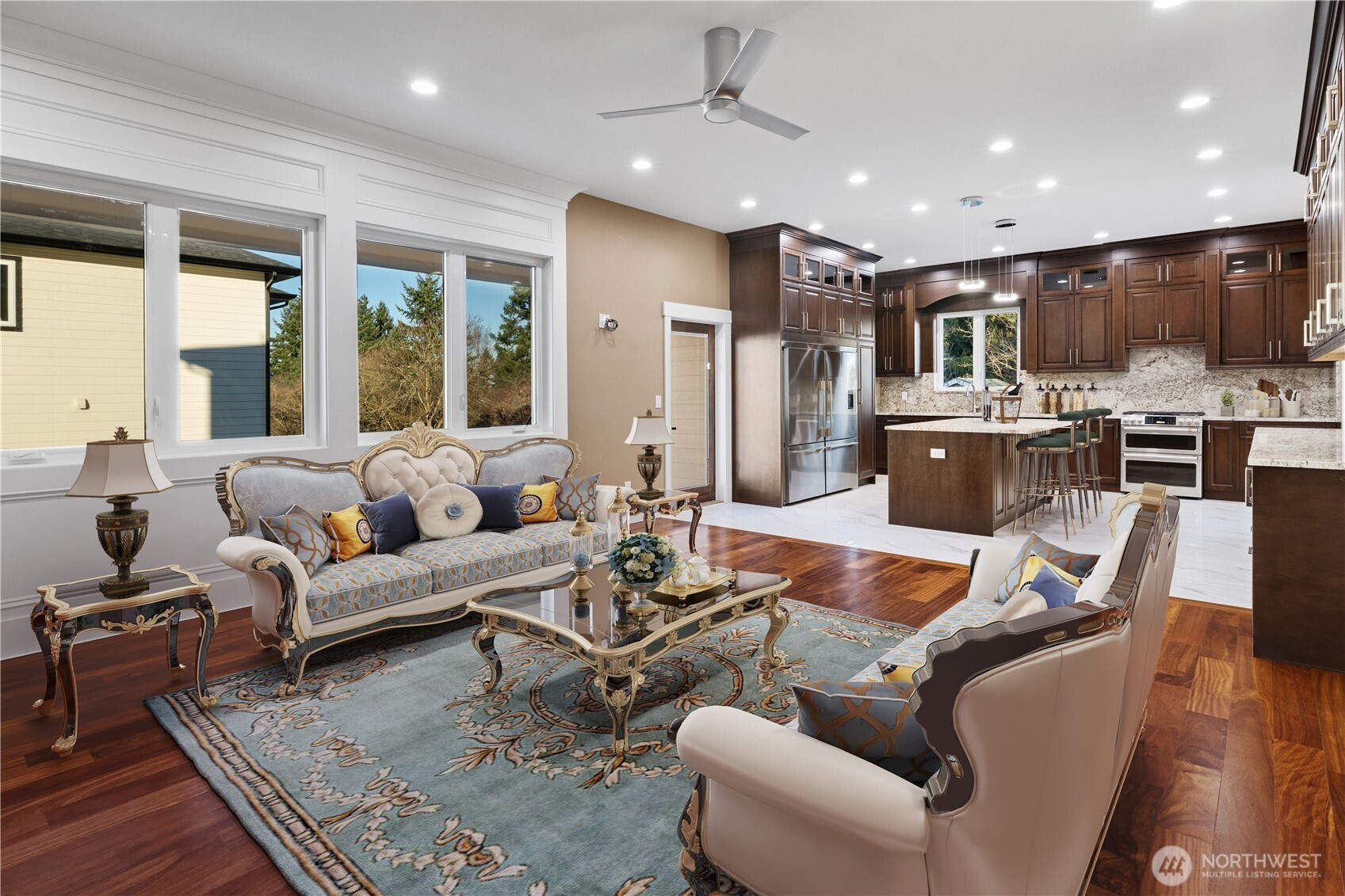 (503) 893-8874Exquisite new construction luxury residence offering exceptional craftsmanship and impressive functionality. A grand entry with soaring ceilings and elegant tile flooring introduces refined finishes, while rich ¾-inch solid exotic hardwoods flow through the main living areas and custom built-in cabinetry features soft-close doors and drawers throughout. The main level includes a bedroom with its own ensuite bath, plus a versatile office and a convenient ¾ guest bath. The chef’s kitchen showcases premium Café appliances, a professional-grade range, and a 64-inch Fisher & Paykel side-by-side refrigerator, complemented by a fully equipped auxiliary cooking area with its own sink, range, and microwave—ideal for entertaining. High ceilings, multiple ceiling fans, and a high-efficiency ductless mini-split system with individualized zones provide comfort year-round. Upstairs, four spacious bedrooms each offer a private ensuite bath, bringing the total to 5 bedrooms and 6 bathrooms plus an office, enhanced by custom built-in closet systems. The primary suite features a jetted jacuzzi tub, while the junior primary boasts a soaking tub and walk-in shower. Additional highlights include EV charging, covered outdoor space perfect for entertainment, and a striking stucco exterior set on a generous lot with ample yard space. Ideally located near downtown Seattle, major shopping, Sea-Tac Airport (outside flight path), and Tacoma. Enjoy being part of a community of newer homes—NO HOA!