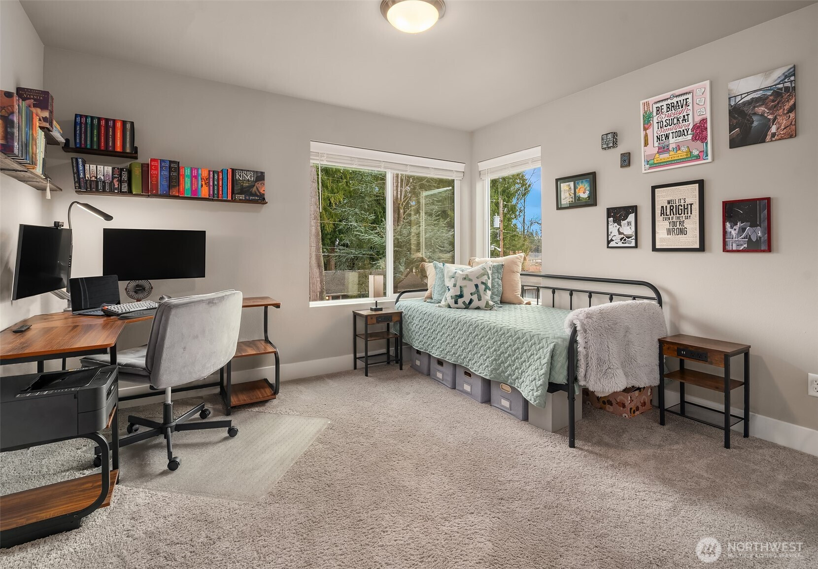 Come home to this nearly new, amazing listing in Jovita Heights! This two-story home with double-car garage and electric car charger is a modern-style gem with the best of everything! Built in 2020, it's been lovingly cared for by the current owners and fully ready for your next chapter! It includes a gorgeous great room with dining space, large gourmet kitchen with pantry, and a large seating area with mounted TV included! An electric heat pump provides heating and AC! Upstairs has an amazing bonus area for whatever your needs are! Make it your own! It also includes three large bedrooms, including a private ensuite with a huge walk-in closet and private full bathroom! This home also boasts a large backyard, fully fenced with a patio! Relax, grill and chill. With this property just 9 minutes by car from the Federal Way DT Light Rail Station, your commute has just been solved! Close to schools, parks and freeways on a dead end street, this home is absolutely move-in ready! Take a tour today! You will not be disappointed!