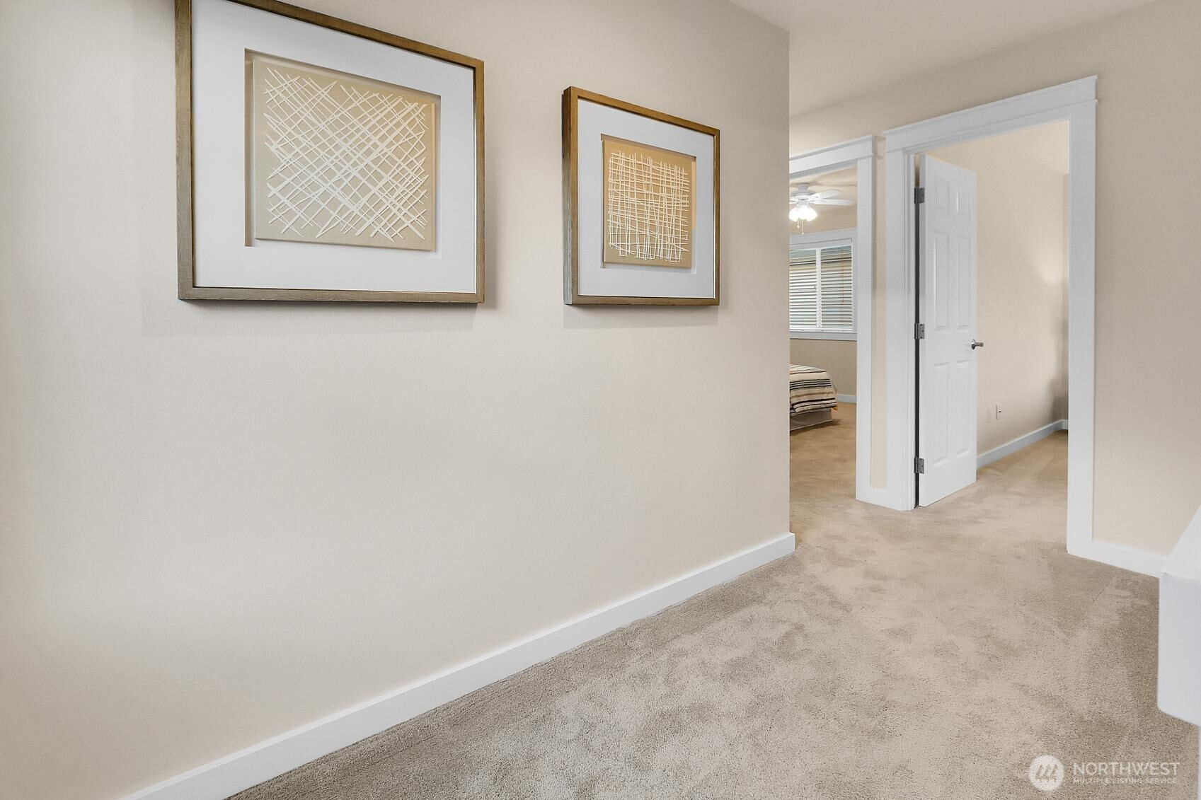 Pride of ownership shines in this beautiful 3-bedroom+office home in the heart of Snoqualmie Ridge. A covered front porch w/mountain views welcomes you inside, where French doors open to a private den. The open living & dining areas flow into a bright island kitchen w/quartz countertops, newer appliances, & walk-in pantry. Upstairs features a spacious primary suite with spa-like bath & walk-in closet, plus two add'l bedrooms & updated full bath. Enjoy the fully fenced backyard with patio, new storage shed, garden & lawn. Thoughtful upgrades incl. dual-zone heat/A/C, recessed lighting, custom millwork, epoxy garage floor, & more. Steps to shops, dining, parks, trails, YMCA & Cascade View Elem. Ideal location, pre-inspected and move-in ready!
