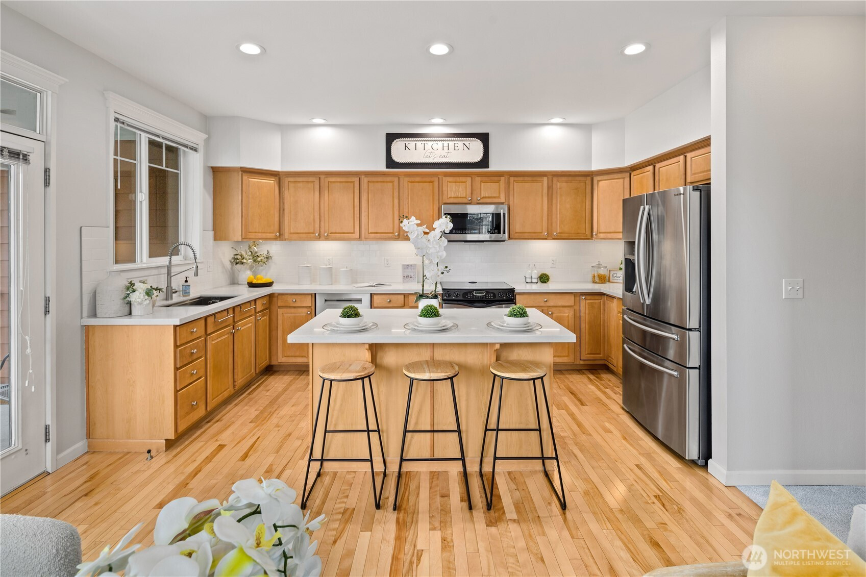 Immaculate end-unit townhome in Aspen Village at Snoqualmie Ridge with stunning Mt. Si and Cascade Mountain views. This former model home offers exceptional privacy, abundant natural light, and thoughtful upgrades throughout. The open kitchen features stainless appliances, updated finishes, an island with eating space, and flows seamlessly into the living area with a cozy gas fireplace, perfect for entertaining. Rich maple hardwood floors and designer touches create a warm and inviting feel. The spacious primary suite captures breathtaking mountain views and includes a luxurious 5-piece bath, while the second bedroom features its own private en-suite bathroom, ideal for guests or roommates. Stay comfortable year-round with newer A/C and enjoy rare flexibility with a 3-car tandem garage complete with a workbench, perfect for gear, hobbies, a home gym, or office space. Located within walking distance of Snoqualmie Ridge Town Center, you’re close to restaurants, coffee shops, breweries, wine bars, parks, and miles of scenic trails, plus The Club at Snoqualmie Ridge golf course just blocks away. Bonus: Take advantage of a 2.75% assumable FHA mortgage, an incredibly rare opportunity in today’s market.