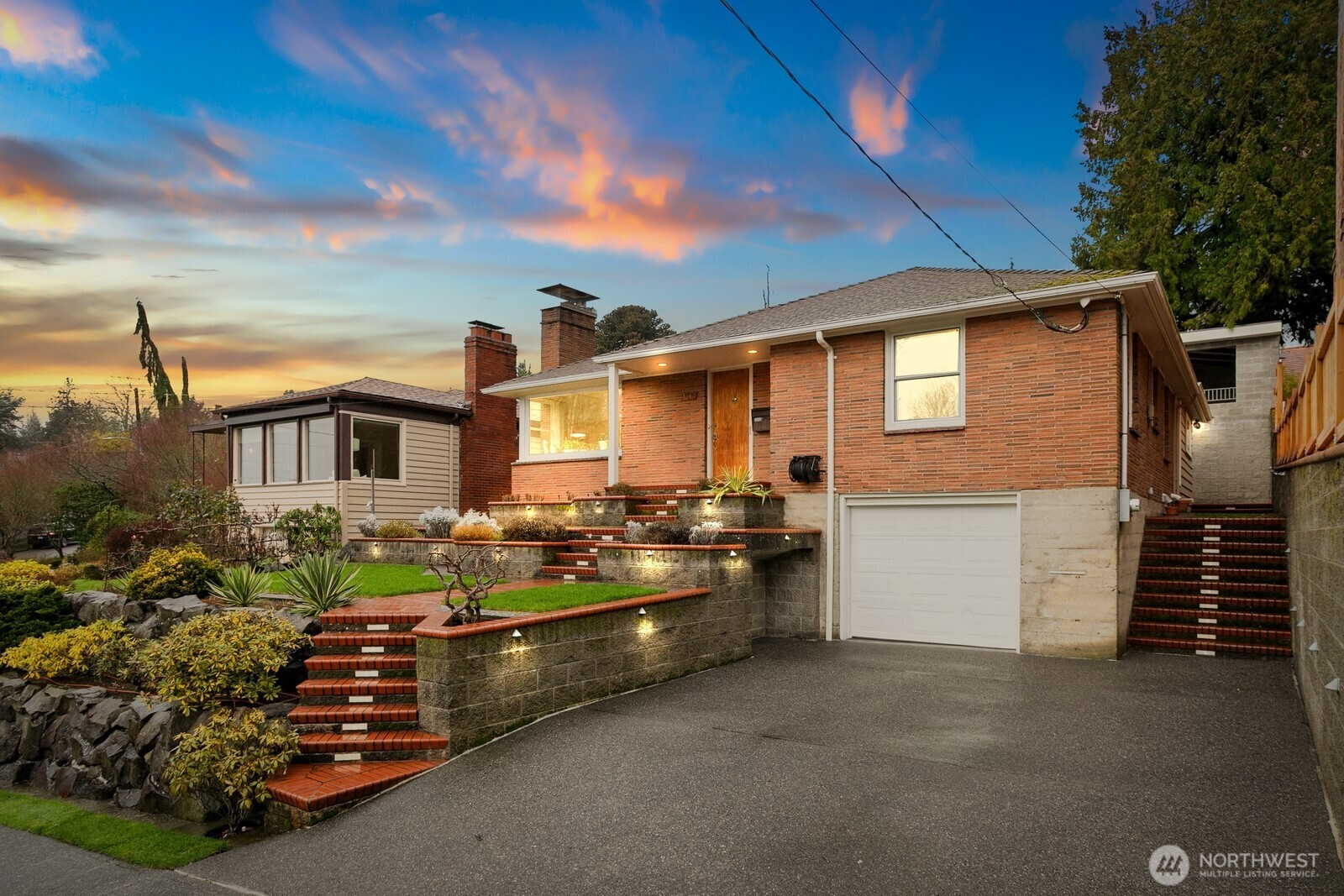 Nestled on a quiet Magnolia street, this charming home offers comfort, versatility, and coveted partial views of the Olympic Mountains and Puget Sound. The cozy living room invites you in with a classic fireplace and picture-window views. The main level flows beautifully, with the dining room opening to the living area and an additional living/media room that connects seamlessly to the open-concept kitchen—perfect for everyday living and entertaining alike. The primary suite features a ¾ bath and walk-in closet, while two additional bedrooms, a full bath, and conveniently located laundry complete the main floor. Downstairs, the thoughtfully designed lower-level ADU adds exceptional flexibility, featuring its own bedroom with gas fireplace, living room, kitchen, ¾ bath, laundry, and direct access to the one-car garage. Ideal for guests, rental income, or multigenerational living. A rare opportunity to enjoy views, space, and versatility in a timeless setting. This charming home is conveniently located to Discovery Park, Magnolia Village, Magnolia Community Center, Elliott Bay Marina, Expedia’s headquarters at the foot of the Magnolia Bridge, Fisherman’s Terminal, Ballard Locks, Amazon Campus & South Lake Union, Myrtle Edwards Waterfront Park, Public Market, Seattle’s re-imagined waterfront and Aquarium, Colman Ferry Terminal, Seattle Center, Space Needle and Chihuly Gardens, and is an effortless commute to downtown!