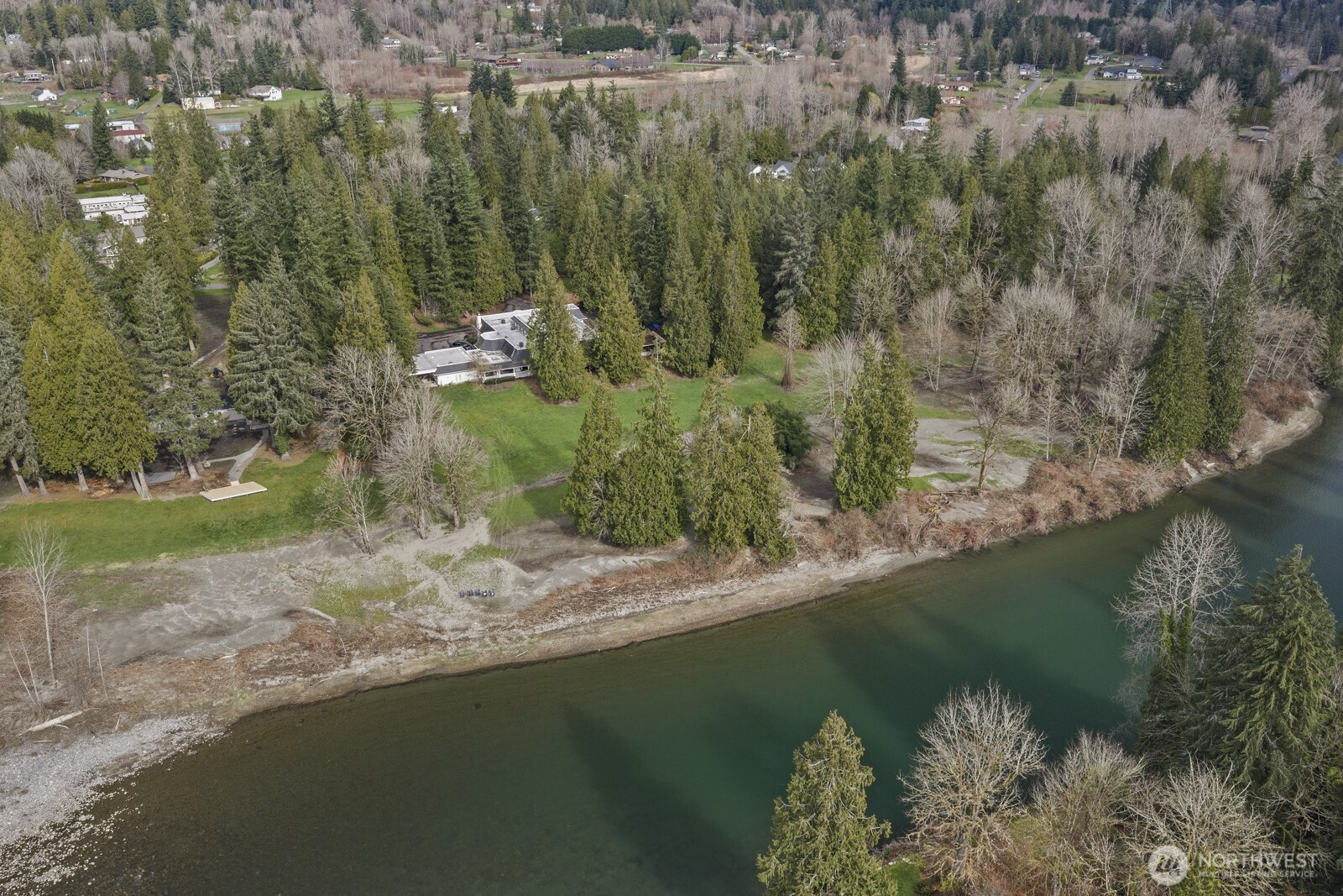 Exceptional acreage riverfront estate in Spring Glen. Located in Fall City's cherished private airstrip community. Sited on 6.37 acres across 3 tax parcels. Enjoy stunning views of Snoqualmie River & your own private beach. Rare, one-level spacious floor plan w/room for everyone. Over $800K in luxury upgrades. Home is an entertainer's dream. Host events & gatherings. Jaw-dropping chef's kitchen remodel includes 2 waterfall islands, Sub Zero fridges, Blue Star wall ovens, professional range, custom vent hood, & much more. Attached 2 bed ADU w/separate entrance/laundry. Central great room w/soaring ceilings, natural light, & gathering space. Luxe primary suite w/remodeled bath including massive double shower w/Kohler Anthem+digital control, 8 massage jets & Real Rain overhead panel. Add. full commercial kitchen. Gym, sunroom, 6 fireplaces. Oversized 3 car garage. Relax, recharge, entertain on expansive covered deck. Sprawling grounds w/room to roam. Enjoy abundant wildlife. Heron, eagles, ducks, beavers, elk, deer, fish can be seen in backyard & river. Equestrian potential. Room for airplane, RV, or boat pkg. RV-sized carport w/dump station. Fall City Airport Association membership included. Enjoy nearby shops, dining, trails, & more. Prized schools. See special features list. Idyllic small-town community w/quick access to I90, Bellevue, Seattle. Truly a special offering. This is the one! *Zillow info incorrect. House has 3beds in main portion & attached 2bed ADU. 5 beds total.