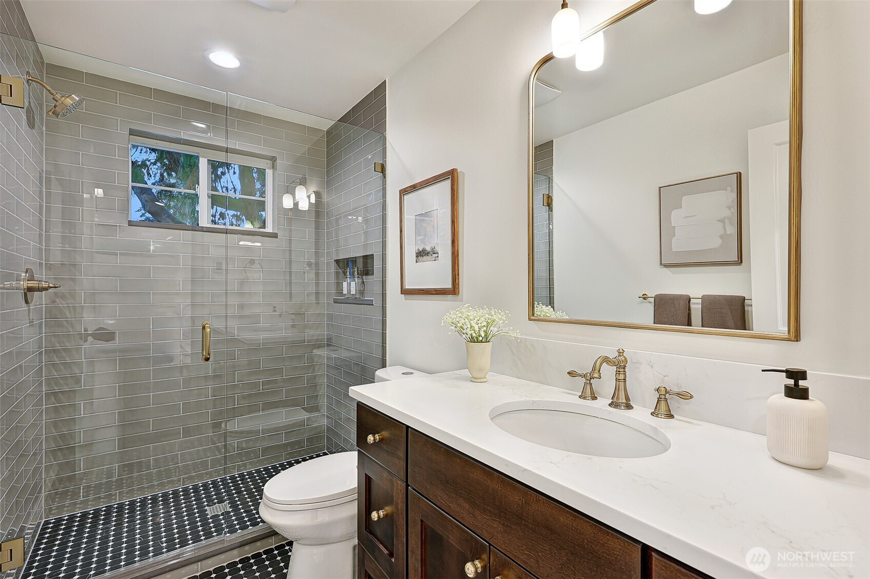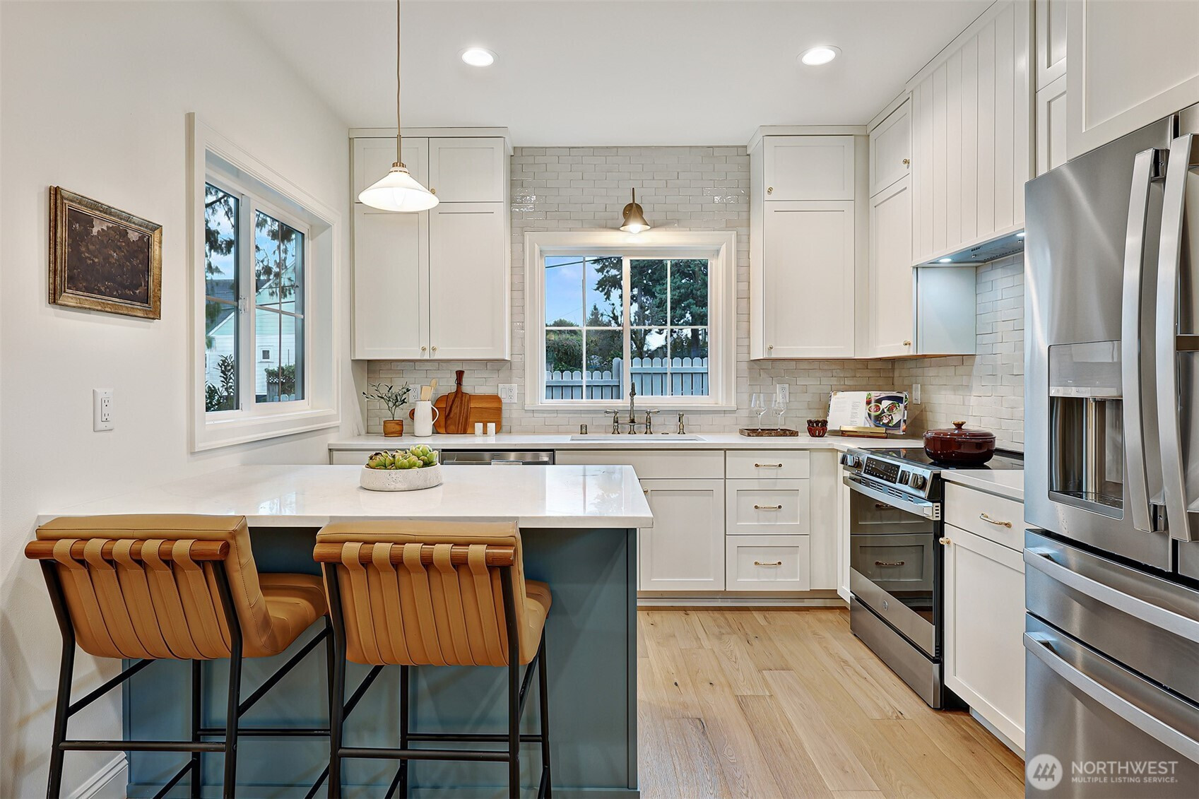 Modern design & craftsmanship shine in this brand-new home in coveted Bryant. Built by boutique local builder Herron Homes, this home features engineered hardwood floors, efficient heat & A/C, & sunlit living spaces that blend function & style for an incredibly livable layout. The kitchen boasts quartz counters, an induction range & premium appliances. Upstairs are 2 bdrms & 2 baths (all baths w/ radiant floor heat) while the lower-level 3rd bdrm & bath w/ W/D provides an ideal guest space and/or rec room w/ generous storage space. Dedicated parking space on alley & 51 sqft storage shed included. An easy walk to bakeries, neighborhood parks & PCC, w/ UW, Magnuson Park & top View Ridge Elementary, Eckstein & Roosevelt schools nearby.