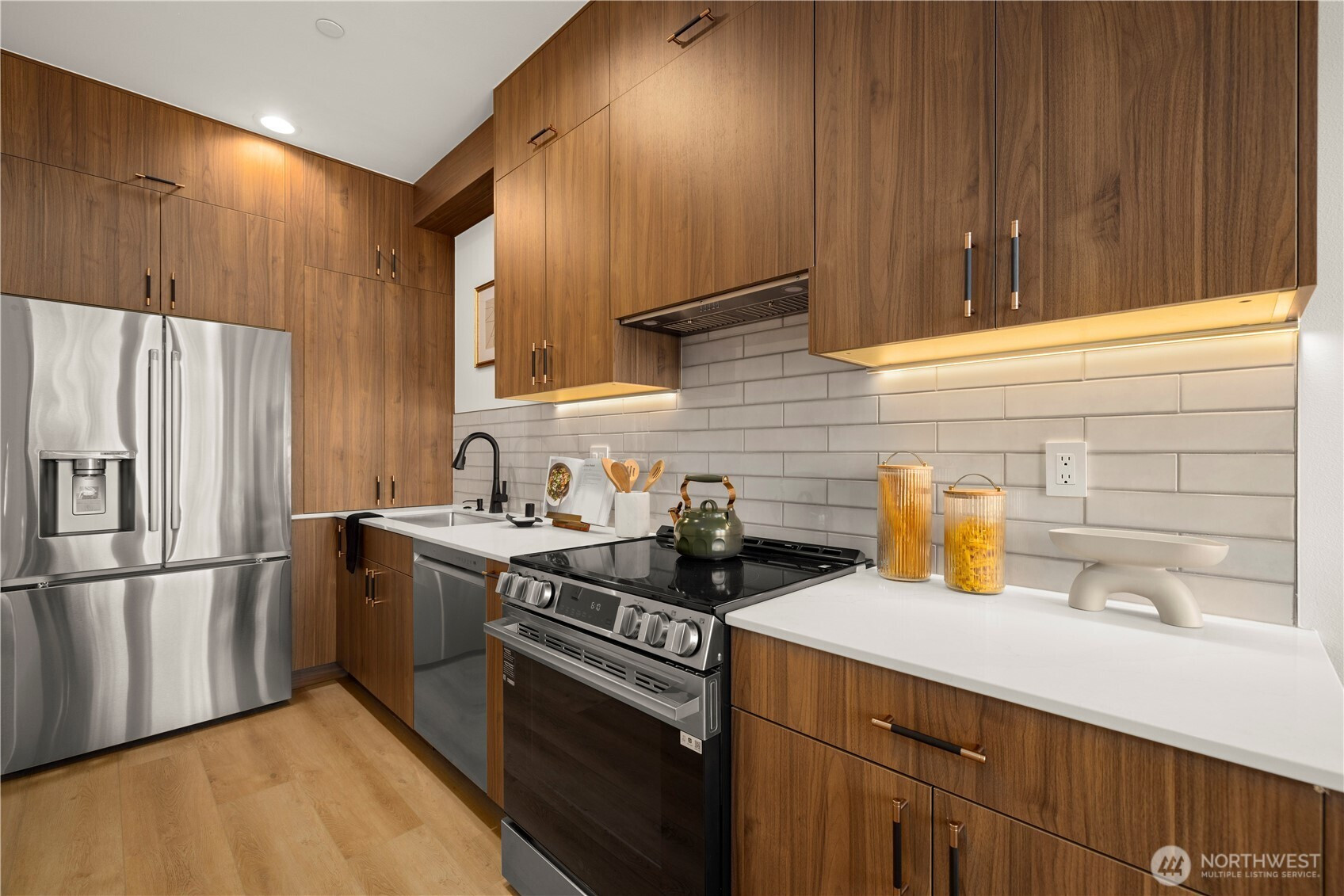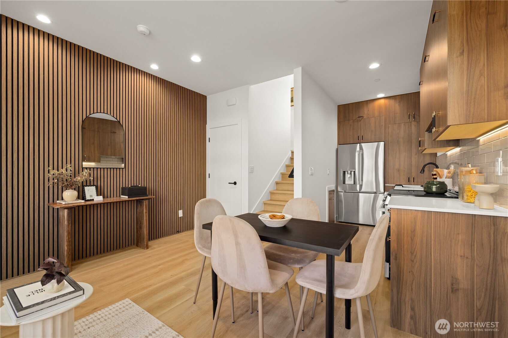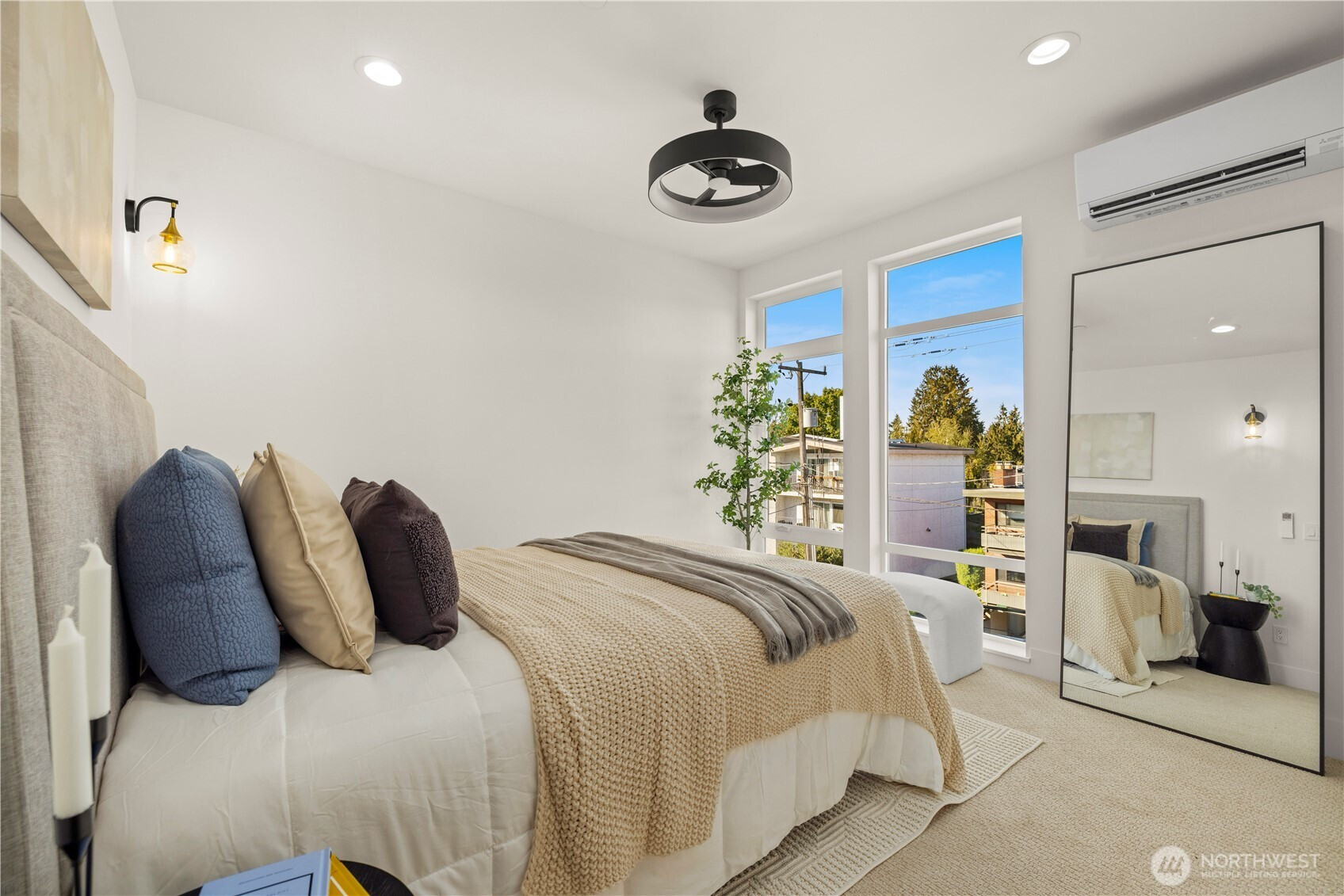 Looking to move this fall? Discover this stunning new construction across from a peaceful neighborhood park! Showcasing a bold modern façade, thoughtful layout, 2 bedrooms & EV-ready PARKING. Enter in to porcelain floors, under-lighting, chic hardware & a striking accent wall. The chef-inspired kitchen features premium SS appliances, quartz countertops & custom cabinetry—ready for dinners with friends or cozy nights in. The 2nd level hosts a bedroom & full bath, perfect for guests or a home office. The top-floor primary suite feels like a personal retreat with a spa-like bath. Private rooftop deck! Near Green Lake, Golden Gardens, Ballard’s shopping, dining, transit & trails. An exceptional opportunity available now—don’t miss your chance!