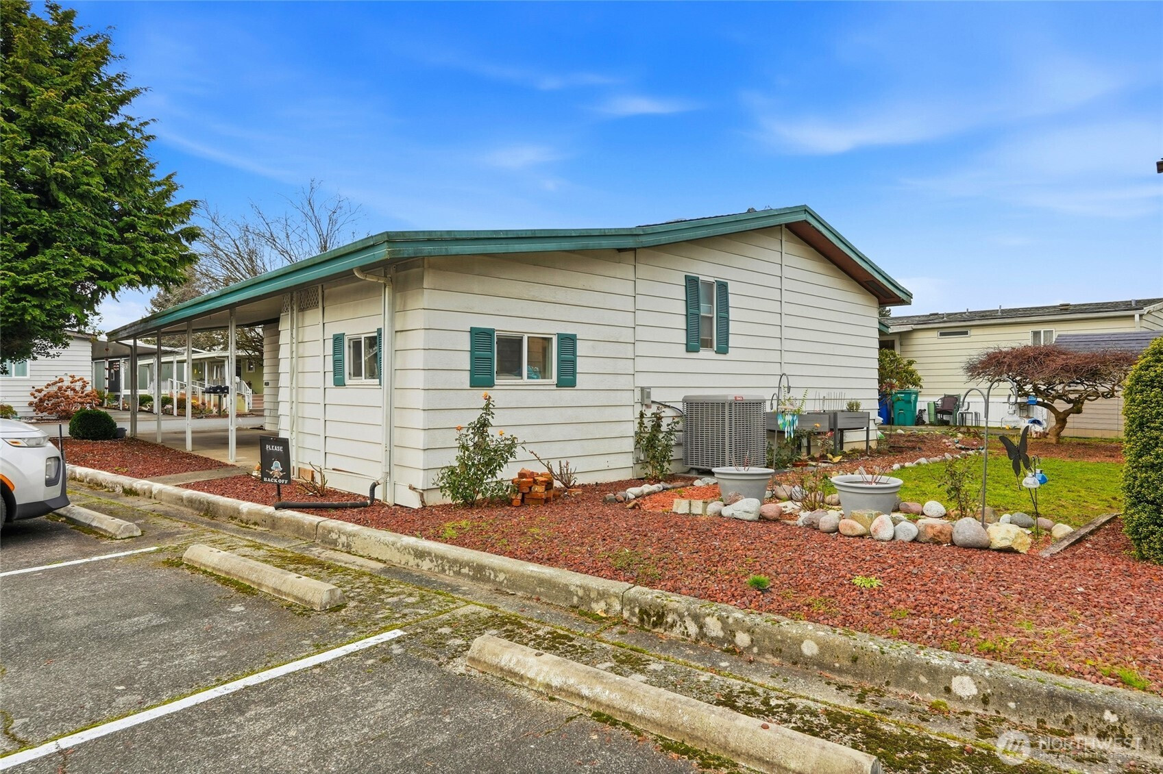 (503) 893-8874Welcome to easy living in this sought-after 55+ community — located on a private corner lot with extra sunshine, added space, and a beautiful garden setting that feels like your own little retreat. With fewer neighbors and more privacy, this home offers a peaceful, tucked-away feel that’s hard to find. Enjoy slow mornings on the spacious front deck overlooking the garden, perfect for coffee, planting flowers, or simply relaxing in the fresh air. Step inside to a bright, open great room designed for comfortable everyday living, with a natural flow between the living, dining, and kitchen spaces that makes the home feel welcoming and connected. Large windows invite in warm natural light throughout the day. A newer heat pump keeps things cool all summer and cozy in winter for year-round comfort. Covered carport parking and a generous storage area add everyday convenience, and all appliances are included to make moving in easy. Life here extends well beyond your front door. Spend afternoons reading in the community library, unwinding in the sauna, or playing a game of pool with neighbors. The welcoming clubhouse offers space to cook, host potlucks, or join activities, while outside you can swim, soak in the hot tub, or gather around the fire pit on cool evenings. Stroll the peaceful waterfront paths and enjoy a truly connected, relaxed lifestyle. Two pets allowed. Sold AS-IS and ready for your personal touches. Park approval required.