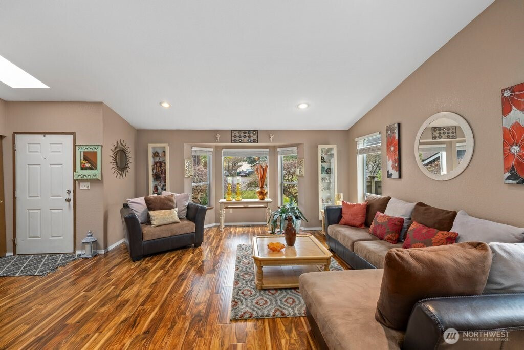 Welcome to this well-maintained tri-level home in a delightful cul-de-sac in Federal Way offering 1,920 sq ft of comfortable living space on a 7,203 sq ft lot. Built in 1988 and thoughtfully cared for, this 4-bedroom, 2.75-bath residence blends functional design with inviting updates throughout. Engineered hardwood, vinyl, and carpeted flooring create warmth across the living and family rooms, while large windows invite natural light into every level. The kitchen opens to the dining area and features ample cabinetry, modern appliances, and an easy flow for daily living and gatherings. Upstairs, the spacious primary suite includes an ensuite 5 piece bath, while additional bedrooms provide flexibility for work, guests, or hobbies. A lower-level family room offers a versatile retreat with room to relax or entertain plus the 4th bedroom and 3/4 bath. Efficient gas heating and central A/C ensure year-round comfort. Outside, the fully usable yard provides space for play, gardening, or outdoor enjoyment. The attached two-car garage adds convenience and storage plus laundry. Located near shopping, dining, parks, and commuter routes, this home combines practicality, comfort, and location in one appealing package. Mortgage savings may be available for buyers of this listing.
