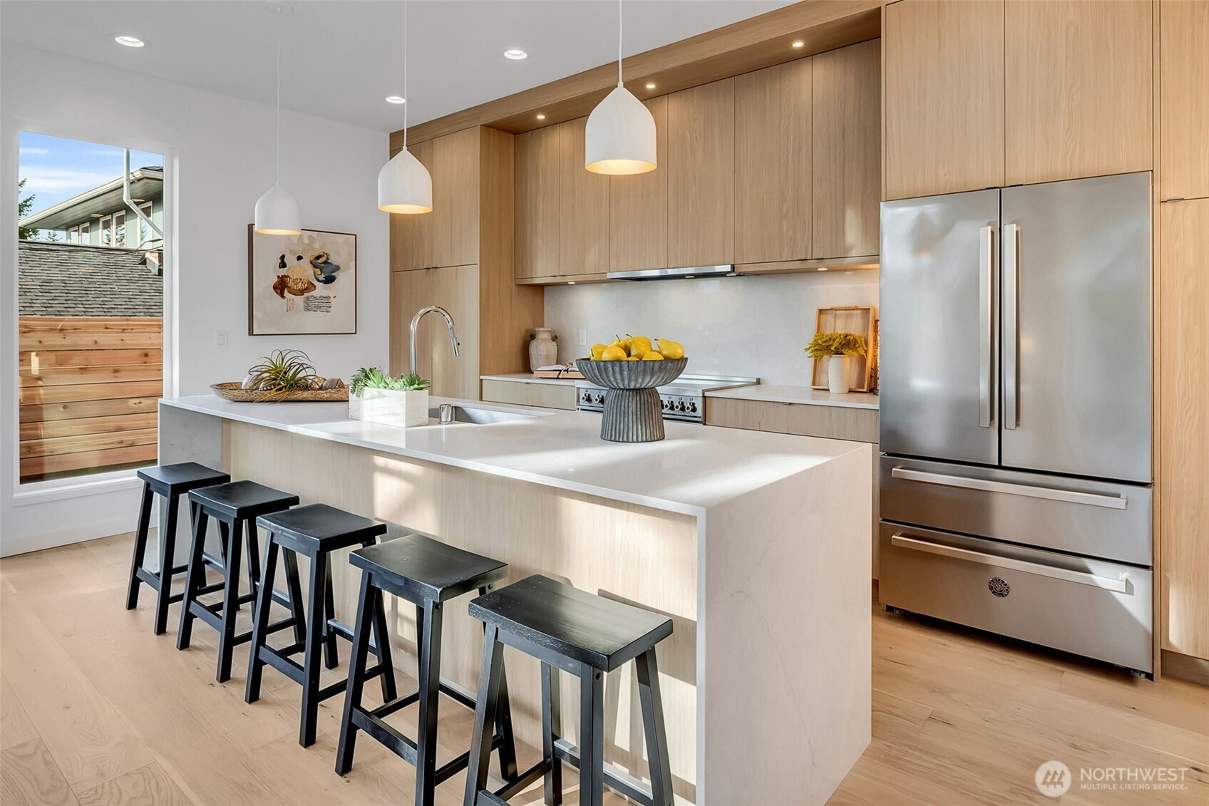 Premier Seattle builder, Block II, presents a remarkable and comfortable home where light and tranquility blend the outdoors with an idyllic interior. Contemporary craftsmanship shines with 10’ ceilings, 8’ doorways, vaulted spaces, a gourmet kitchen with high-end appliance package, pantry, waterfall countertops, and full-height slab backsplash. Large picture windows capture abundant southern light, connecting seamlessly to the spacious deck and yard for lounging and entertaining. Upstairs has four ideal bedrooms, including views of Puget Sound and mountain peaks to frame your mornings. Luxurious Carrara marble–finished baths with rain shower, heated floors, and more. A 4.875% buy-down is available with the preferred lender.