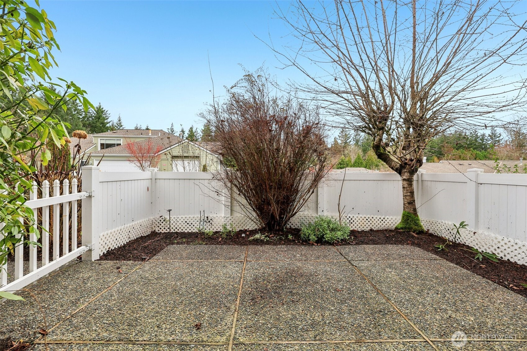 Welcome to Garden Village 2-bedroom, 2-bathroom condo in the vibrant Providence Point, an active adult 55+ community. This quiet, warm and inviting home is all on one level, with accessible features such as a level entry and attached garage. A fully fenced patio is right off the living room through sliding door. The primary bedroom has multiple closets with custom organizers and renovated, spacious walk-in shower in the ensuite bathroom. A versatile secondary bedroom/den is perfect for guests or a home office. The well-appointed kitchen includes quartz countertops, stainless appliances, ample storage, and a pantry. Enjoy the comfort and ease of living in this condominium home. New Flooring & Trim, updated lighting, Furnace & FP serviced ++