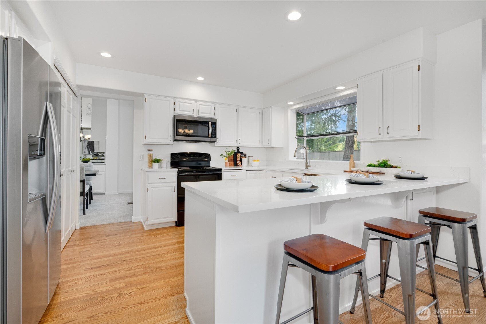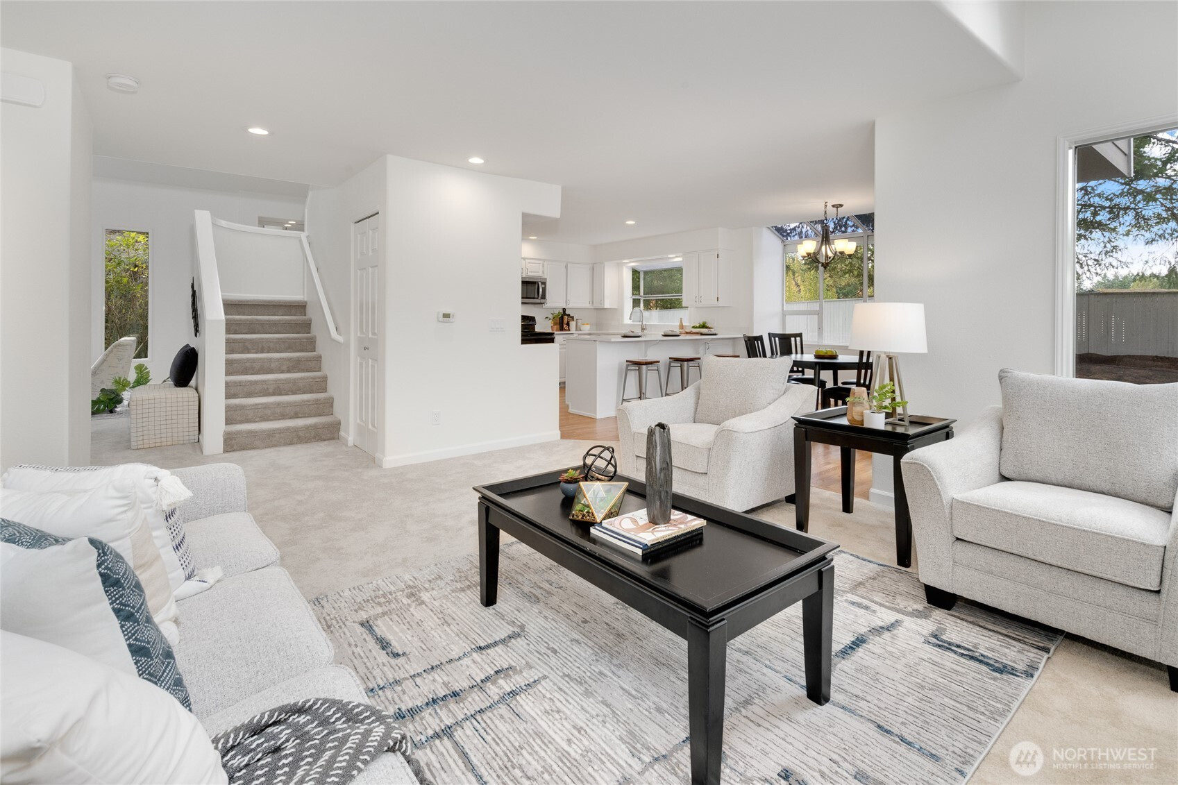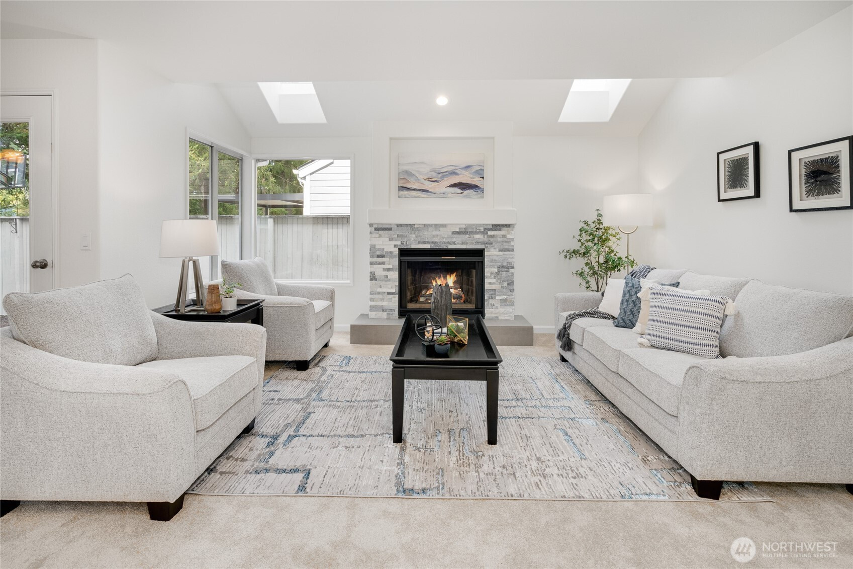 Beautiful, renovated 3-bedroom + den, 2.5-bath, 2,220 sq ft home in Klahanie. Fresh interior paint, new carpet, new quartz counters, newly painted cabinets, updated sinks, fixtures, hardware, and modern lighting throughout. Features include a striking stone fireplace, whisper-quiet bath fans, and LVP flooring in the primary bath. Enjoy a huge private fenced yard with new landscaping, perfect for entertaining. Tucked on a cul-de-sac in the Issaquah School District, with community pools, parks, trails, and sports fields. Convenient to shopping, schools, and I-90 for easy Bellevue and Seattle commutes.