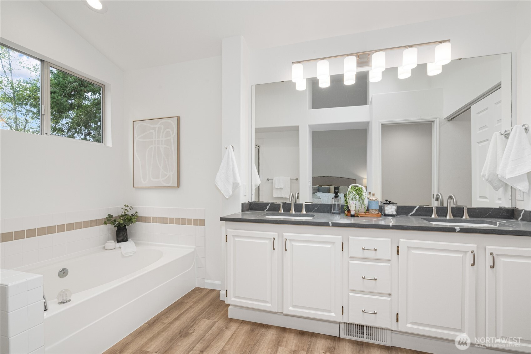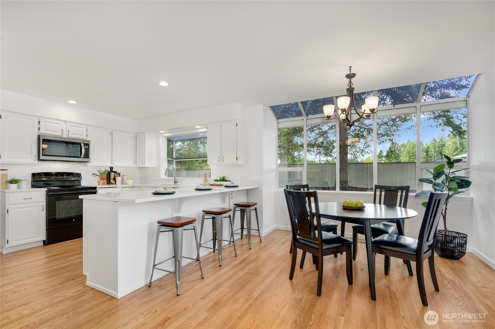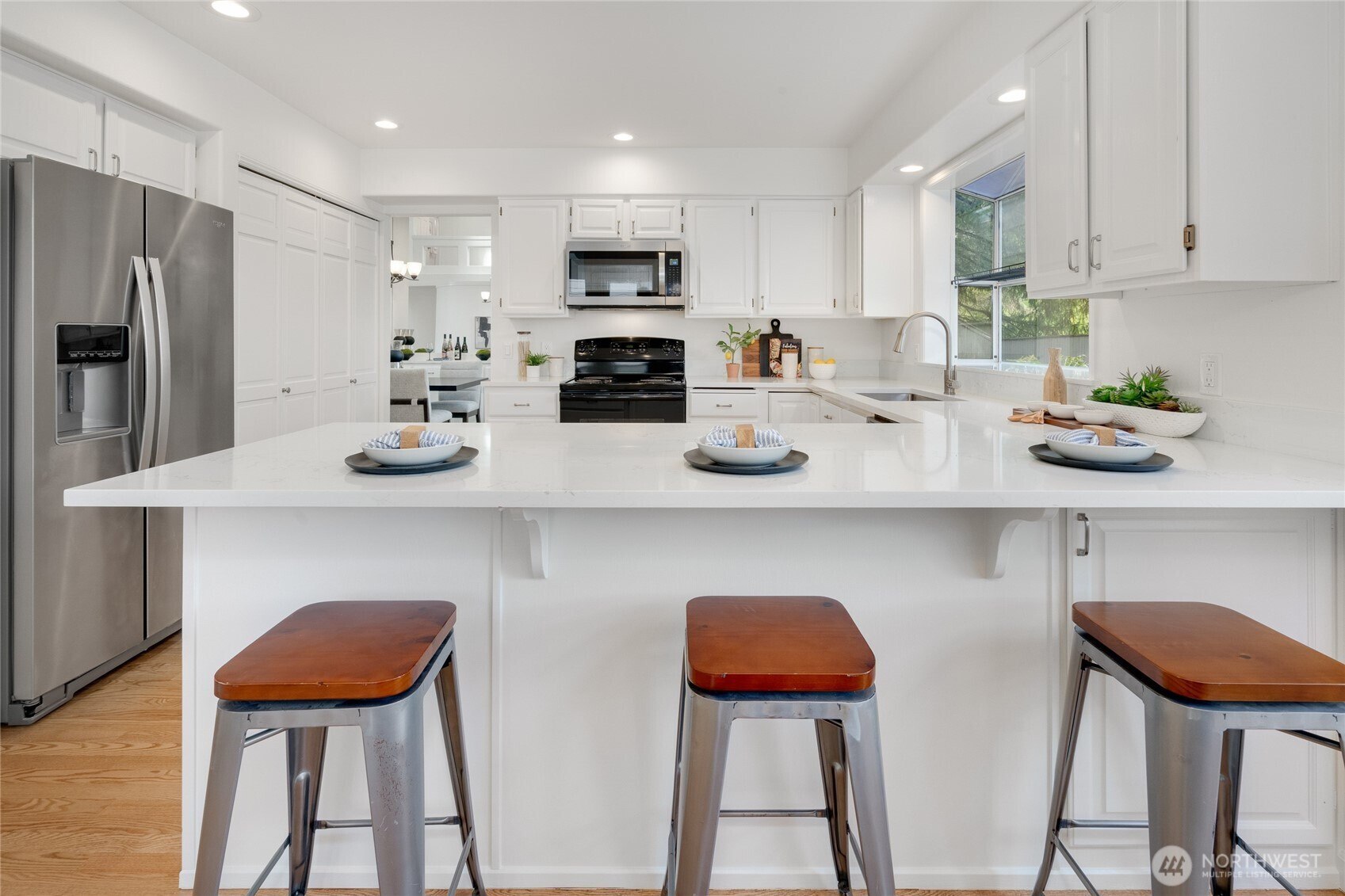 Beautiful, renovated 3-bedroom + den, 2.5-bath, 2,220 sq ft home in Klahanie. Fresh interior paint, new carpet, new quartz counters, newly painted cabinets, updated sinks, fixtures, hardware, and modern lighting throughout. Features include a striking stone fireplace, whisper-quiet bath fans, and LVP flooring in the primary bath. Enjoy a huge private fenced yard with new landscaping, perfect for entertaining. Tucked on a cul-de-sac in the Issaquah School District, with community pools, parks, trails, and sports fields. Convenient to shopping, schools, and I-90 for easy Bellevue and Seattle commutes.