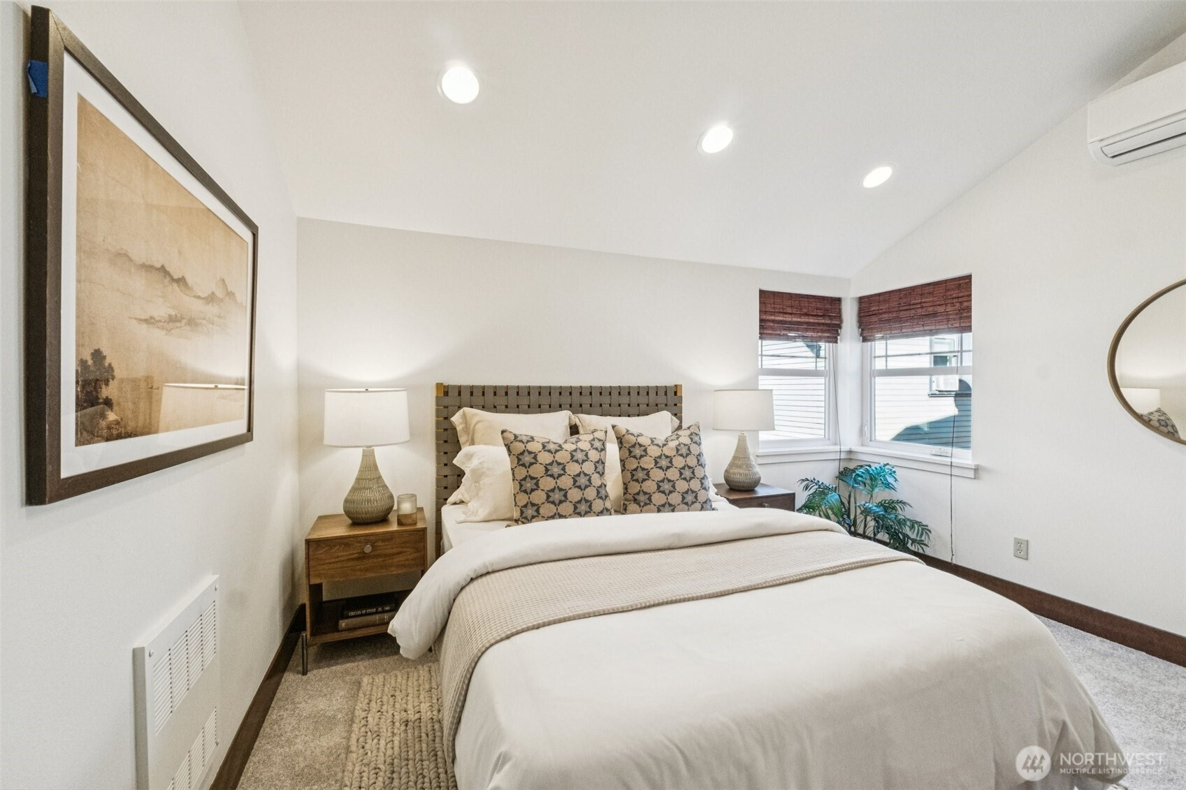 Fantastic Fremont location w/ a 90 Walk Score—steps from all the conveniences this trendy neighborhood offers! Fresh interior paint & new carpet make this move-in ready. Easy commute w/ nearby bus lines, bike routes & Hwy 99. Enter through your fenced courtyard or attached 1-car garage. Spacious main level w/ open kitchen, dining, living & ¾ bath. Two ensuite bedrooms up w/ walk-ins + laundry, and mini-splits in every room for A/C and year-round comfort! Ground-floor bedroom ideal for guests or office. Welcome to the Center of the Universe!