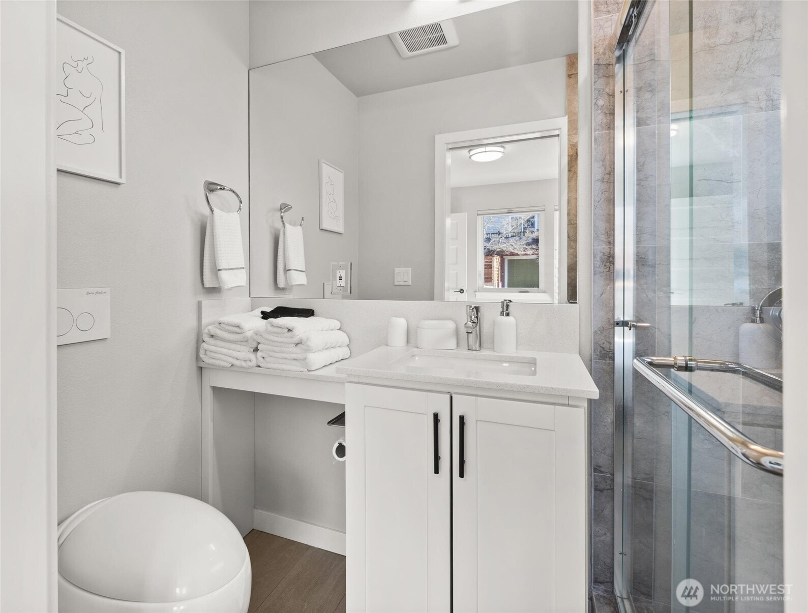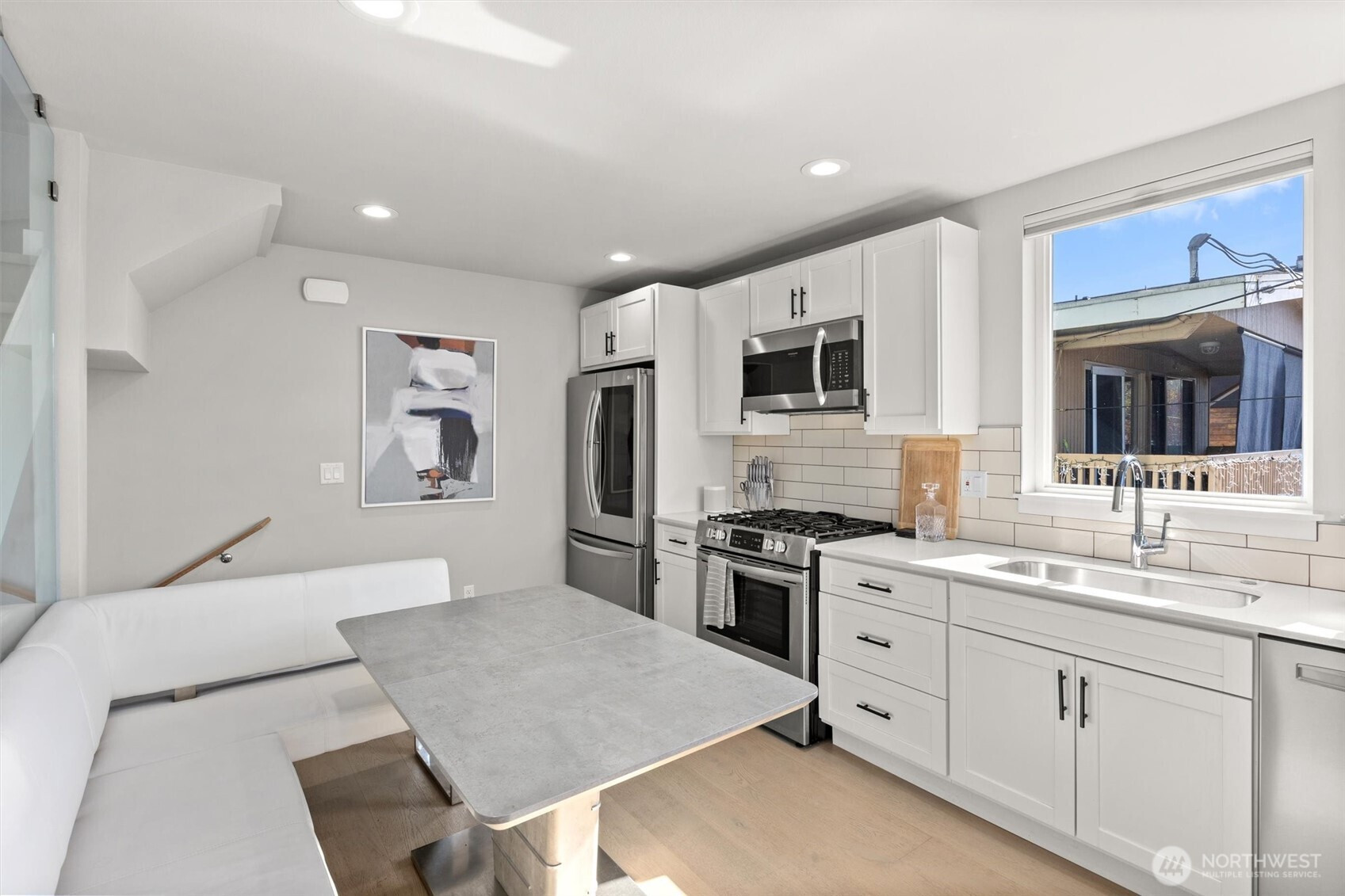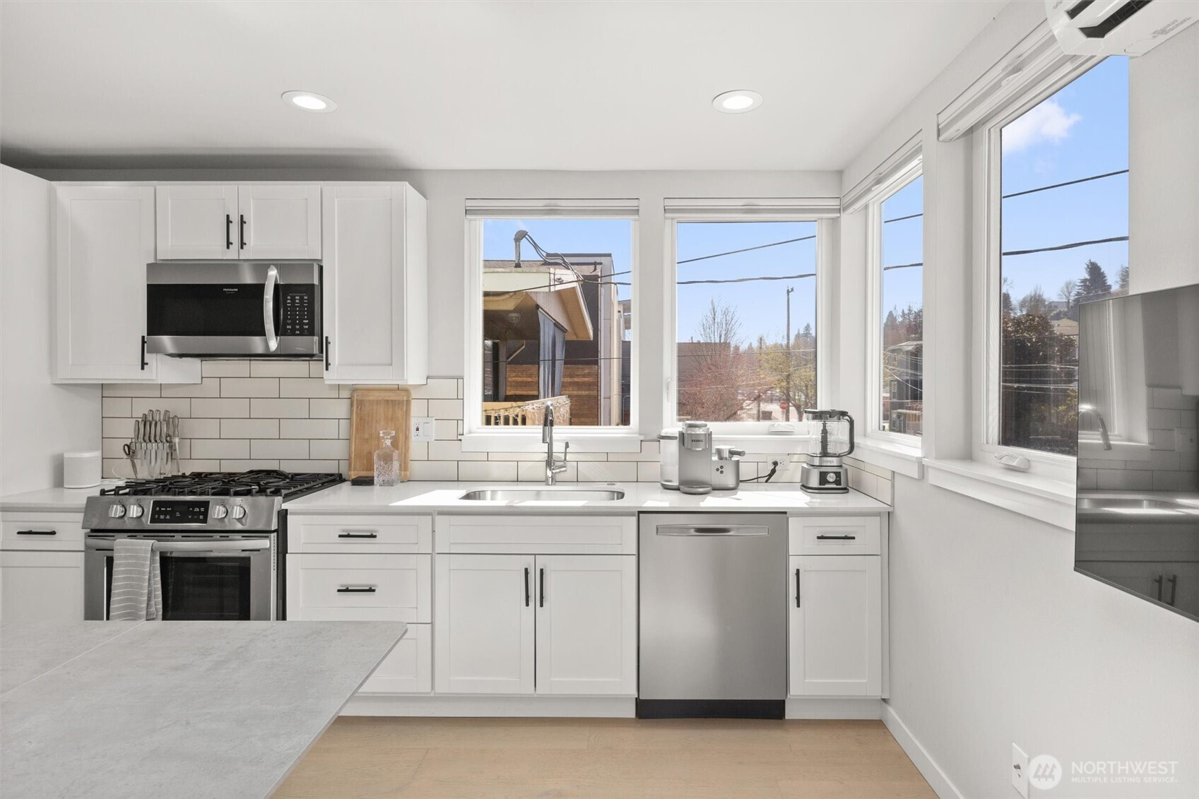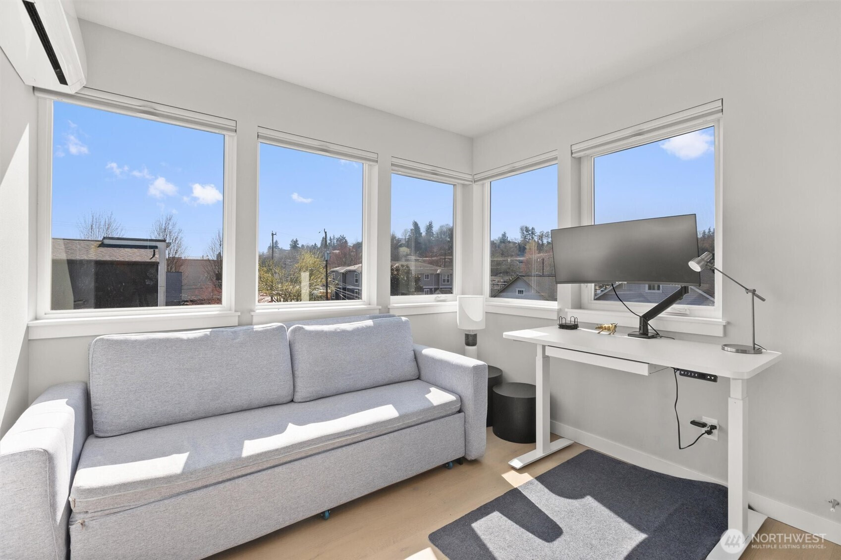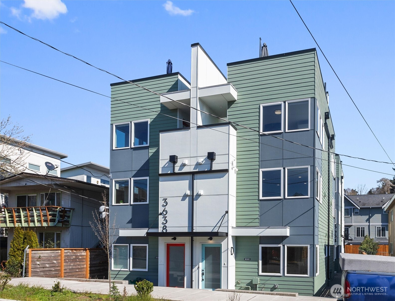 Come see this contemporary and stylish 2Br/1.25Ba corner unit offers posh owner suite with heated floor and well-appointed primary bath. Stainless steel appliances adorned main floor kitchen & living area. 2nd bedroom and 1/2 bath highlighted the 3rd floor, and of course, rooftop deck for outdoor entertaining. Conveniently located near Columbia City and proximity to Mount Baker light rail station. Notable features include central vacuum, tankless hot water, two independent AC/heating units dedicated for 2nd & 3rd floor, pre-wired/connected 1 Gb high speed fiber internet, 4-stars Built Green pending, all-in-one washer/dryer & window blinds are included & installed. No HOA and no rental restrictions.