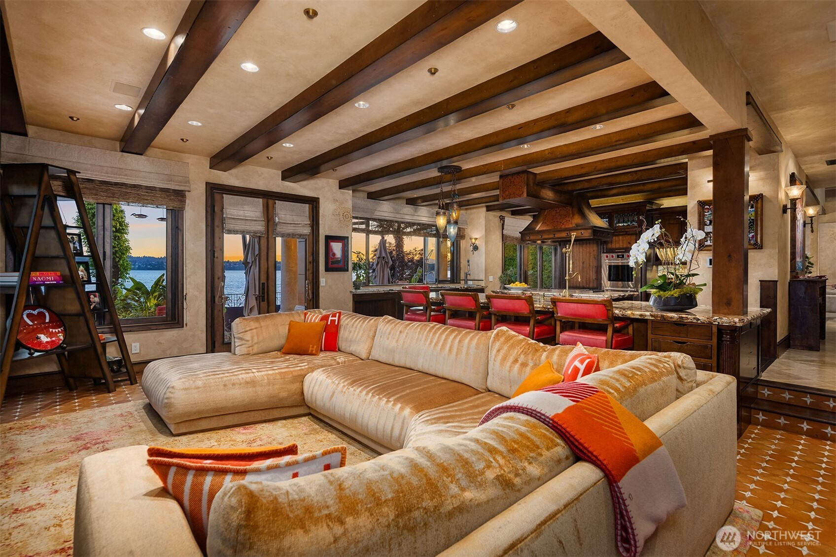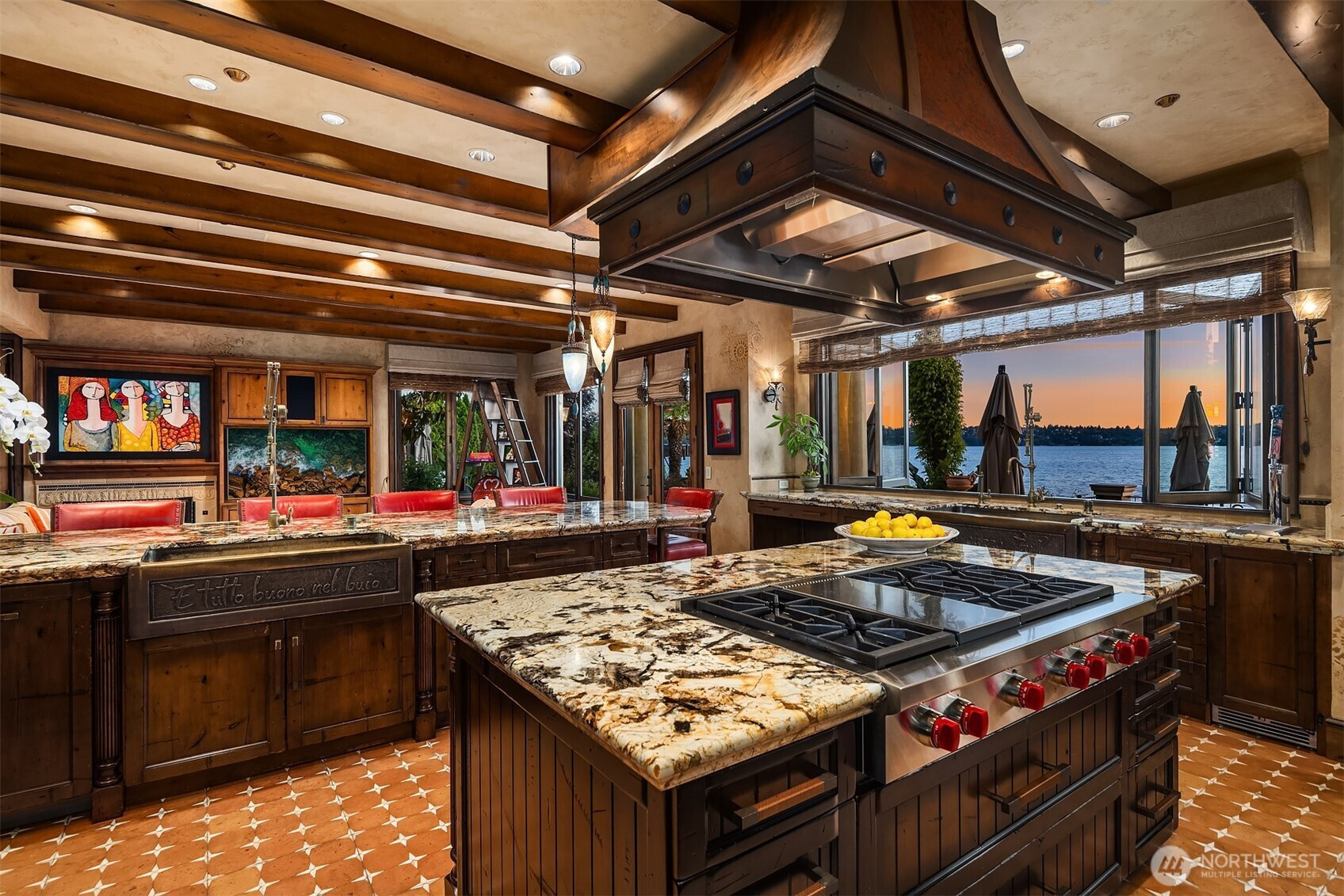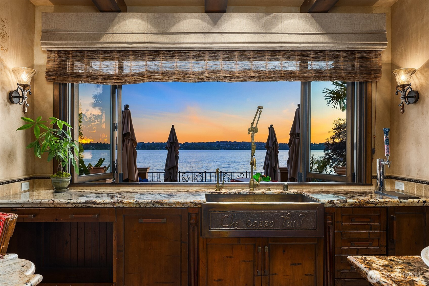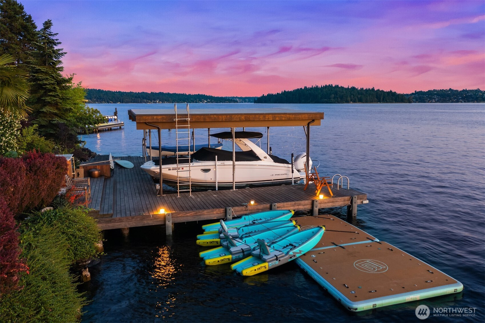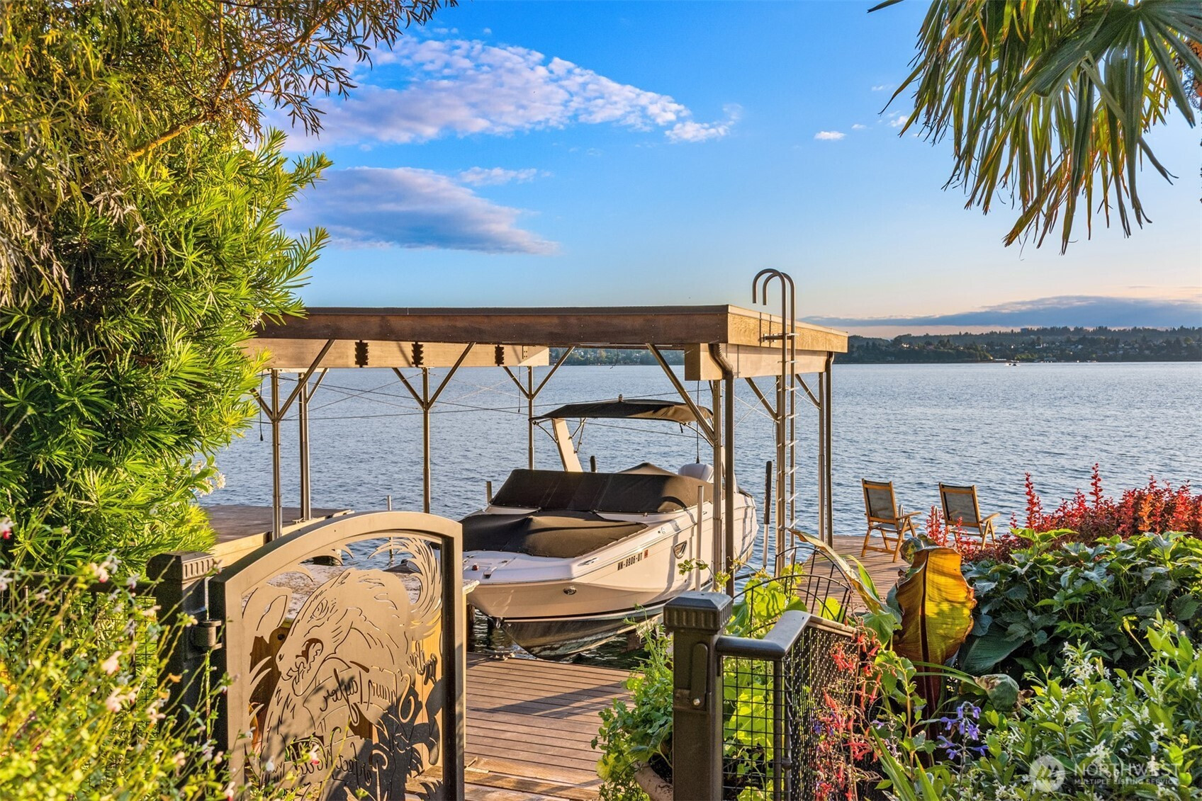 (503) 893-8874Reintroducing the ultimate Mercer Island lifestyle. A bespoke home on 100' of unparalleled west facing Lake WA frontage is built at the water’s edge. Designed for indoor/outdoor living and entertaining; the one-of-a-kind terrace perched over the water could not be built today. French doors and folding windows link al fresco energy to the warmth inside. Studs up remodel in 2016 spared no expense and added a separate carriage house. Notable details include limestone and sandstone imported from a quarry in France, floors reclaimed from a 16th century Italian monastery, specimen gardens, and a dock w/covered slip. Elan Smart Home System lets you manage your home from your phone. A generator runs the entire home if needed. Front row for Seafair.
