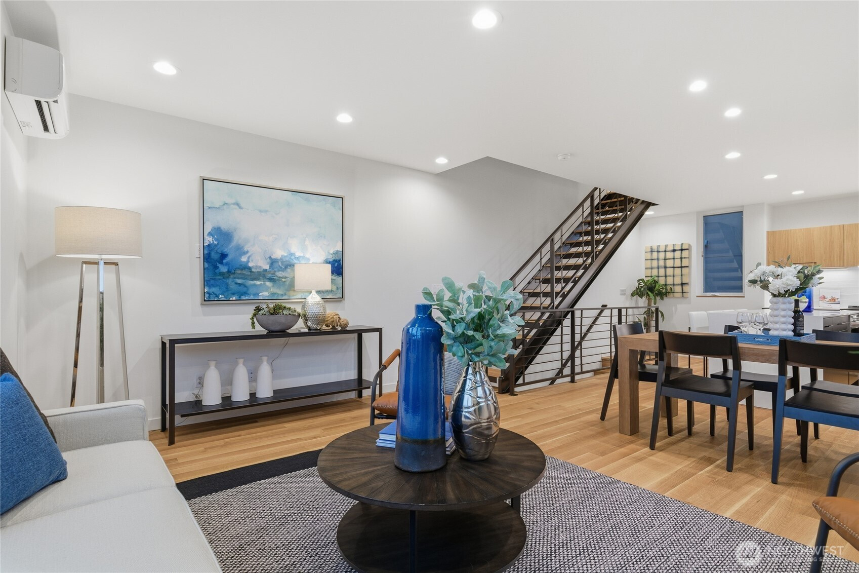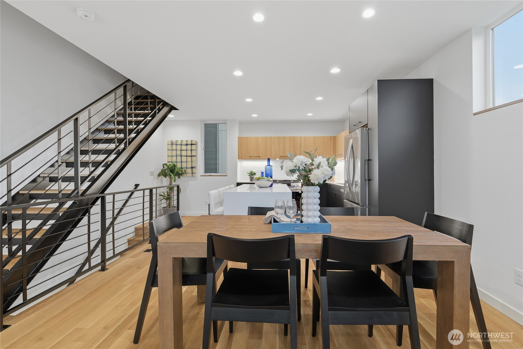 Crisp modern design meets everyday comfort. Four spacious brand-new homes from BuildSound in the heart of Fremont, the Center of the Universe, yet tucked in away from the hustle and bustle of city living. Step into a main-floor great room with wide-plank floors and a standout kitchen featuring a custom tile backsplash, quartz counters, modern cabinets, and stainless appliances. The primary suite offers a spacious ensuite bathroom and generous closet upstairs, with two lower-level bedrooms ideal for guests or work from home. Entertain guests and enjoy stunning views from your private roof deck. Assigned EV-ready parking space. Walk Score 95 - steps away Fremont’s shops, restaurants, and nightlife. Easy commute to SLU/Downtown Seattle.