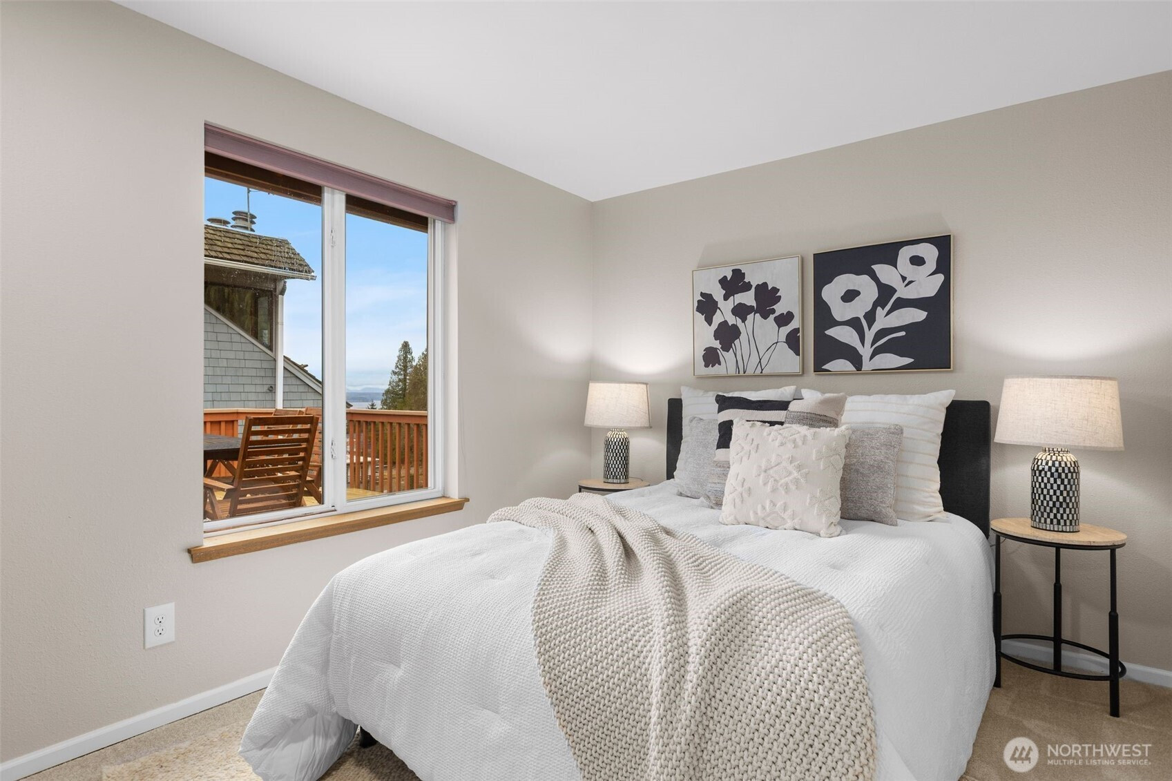 Discover space, light, and sweeping views in this beautifully refreshed Gatewood home. Soaring living room ceilings and picture windows bathe the home in natural light. Fresh paint, new carpet and updated light fixtures make it truly move-in ready. The spacious layout offers 5 bedrooms (3 up, 2 down) plus a rec room, providing flexibility for work, play, and guests. A generously sized dining room features French doors that open directly to the expansive deck—perfect for indoor-outdoor living and entertaining. Step outside to enjoy stunning sunsets and territorial views from the deck overlooking a lush garden on an oversized 8,000+ square foot lot. Garden includes a plethora of fruit, including blueberries, raspberries and strawberries. An attached two-car garage adds convenience and storage. A perfect blend of space, updates and serene outdoor living in the heart of Gatewood.