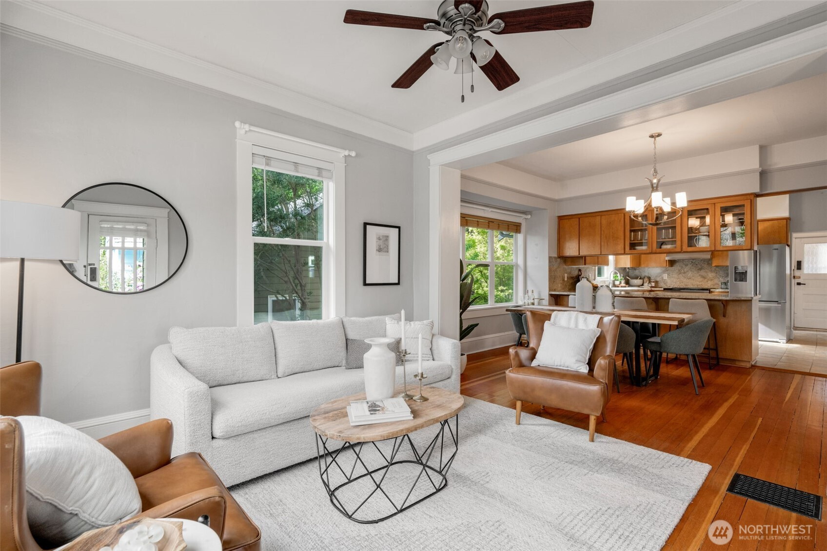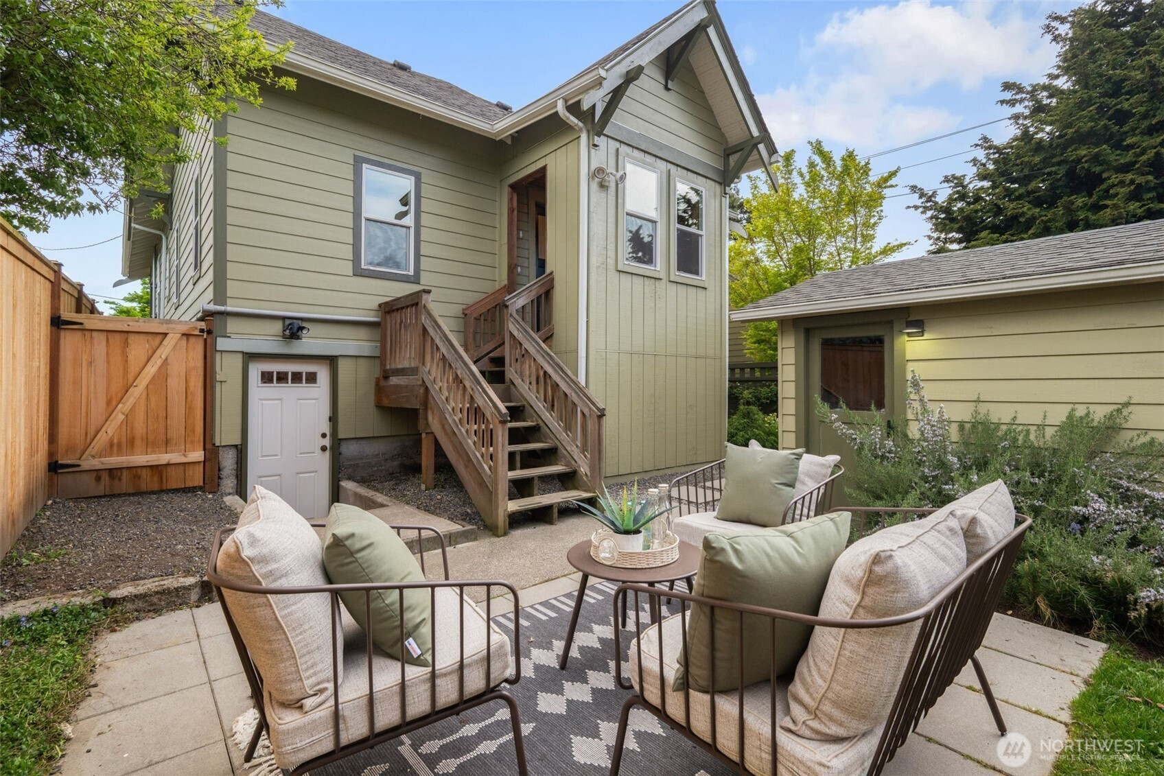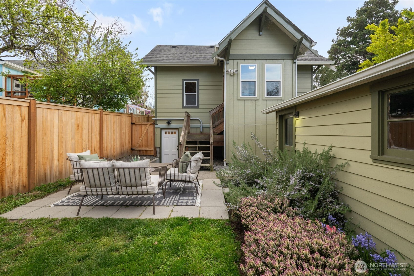 Welcome to this quintessential Craftsman sited between Fremont & the best of Ballard's shops, markets, breweries and more! With high ceilings and hardwood floors the main level flows openly from living room, dining and kitchen - to two bedrooms and one full bath. Lower level features a spacious family room with a plumed bar and separate entry on to the patio for easy entertaining or rental potential. The pet-friendly large & level fully-fenced yard with garden space offer you an oasis in urbanity. Secure garage and one additional off alley spot make access a breeze. Lots of updates like electrical, furnace and water heater. Pre-inpsected. Don't miss the new Starbucks or great parks nearby!