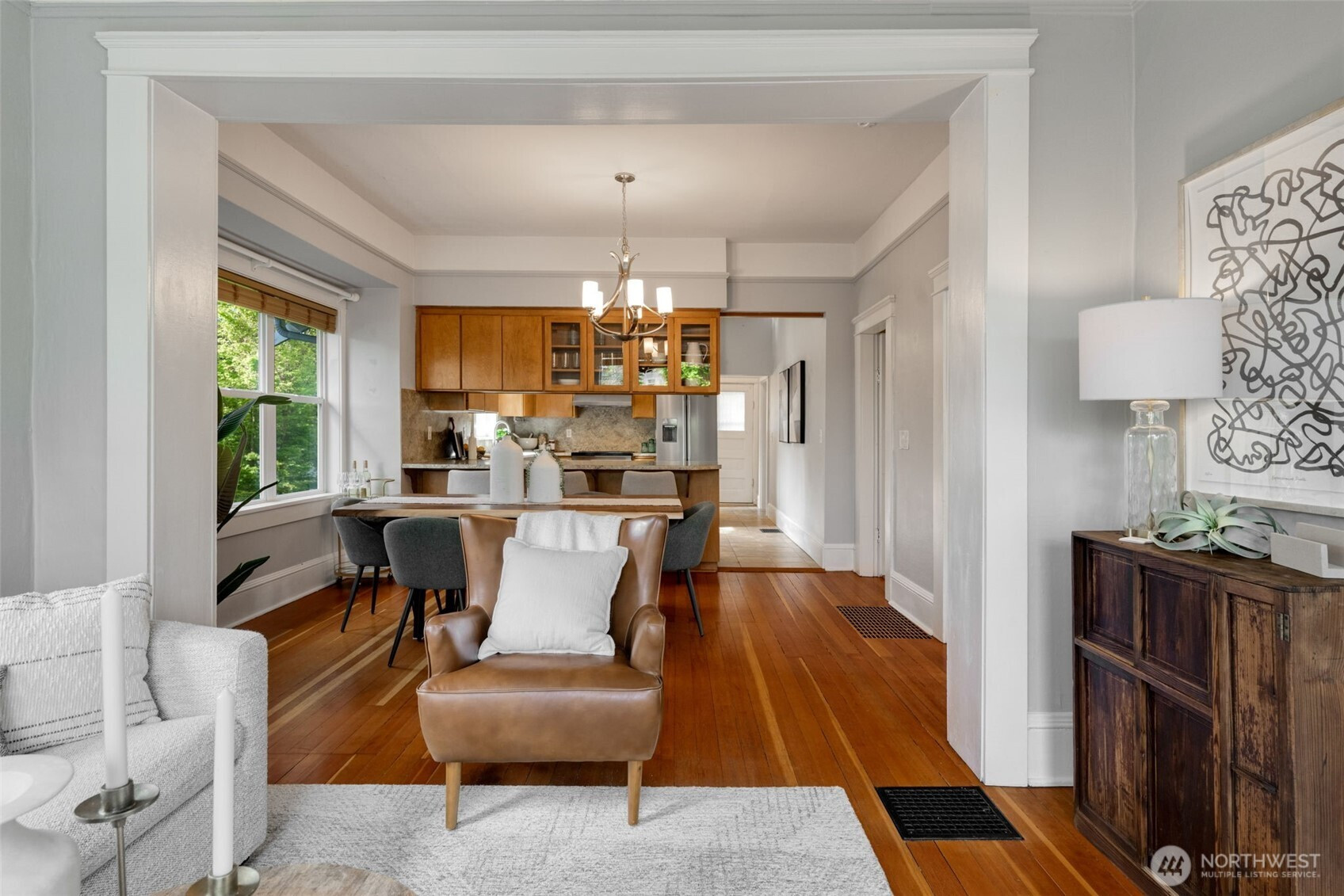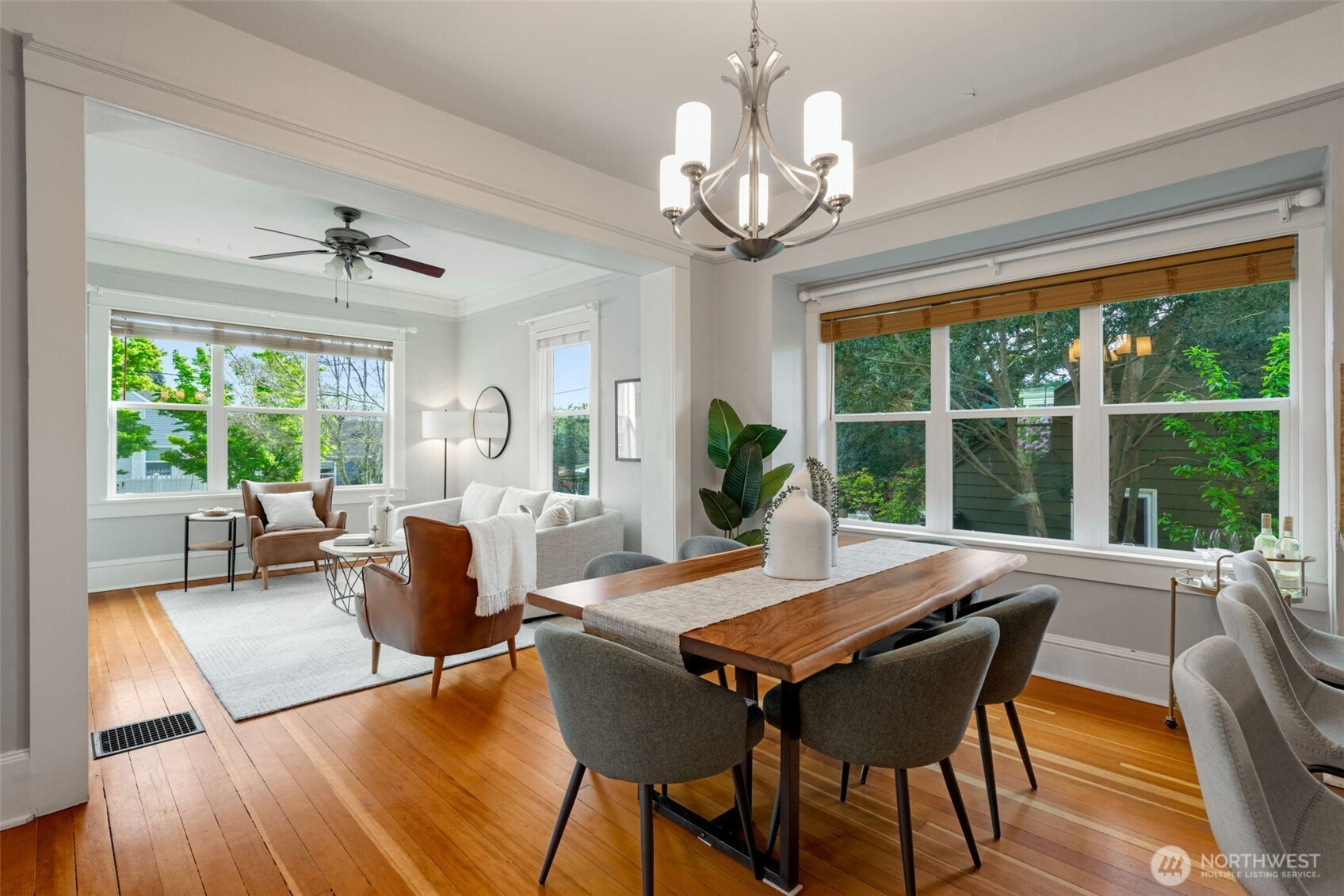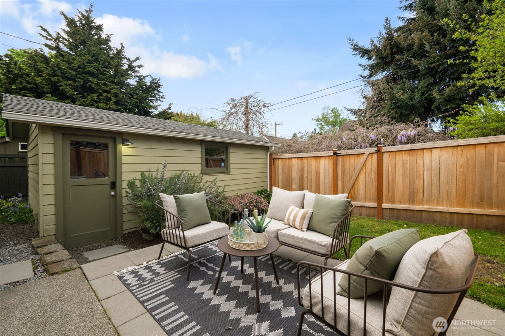 Welcome to this quintessential Craftsman sited between Fremont & the best of Ballard's shops, markets, breweries and more! With high ceilings and hardwood floors the main level flows openly from living room, dining and kitchen - to two bedrooms and one full bath. Lower level features a spacious family room with a plumed bar and separate entry on to the patio for easy entertaining or rental potential. The pet-friendly large & level fully-fenced yard with garden space offer you an oasis in urbanity. Secure garage and one additional off alley spot make access a breeze. Lots of updates like electrical, furnace and water heater. Pre-inpsected. Don't miss the new Starbucks or great parks nearby!