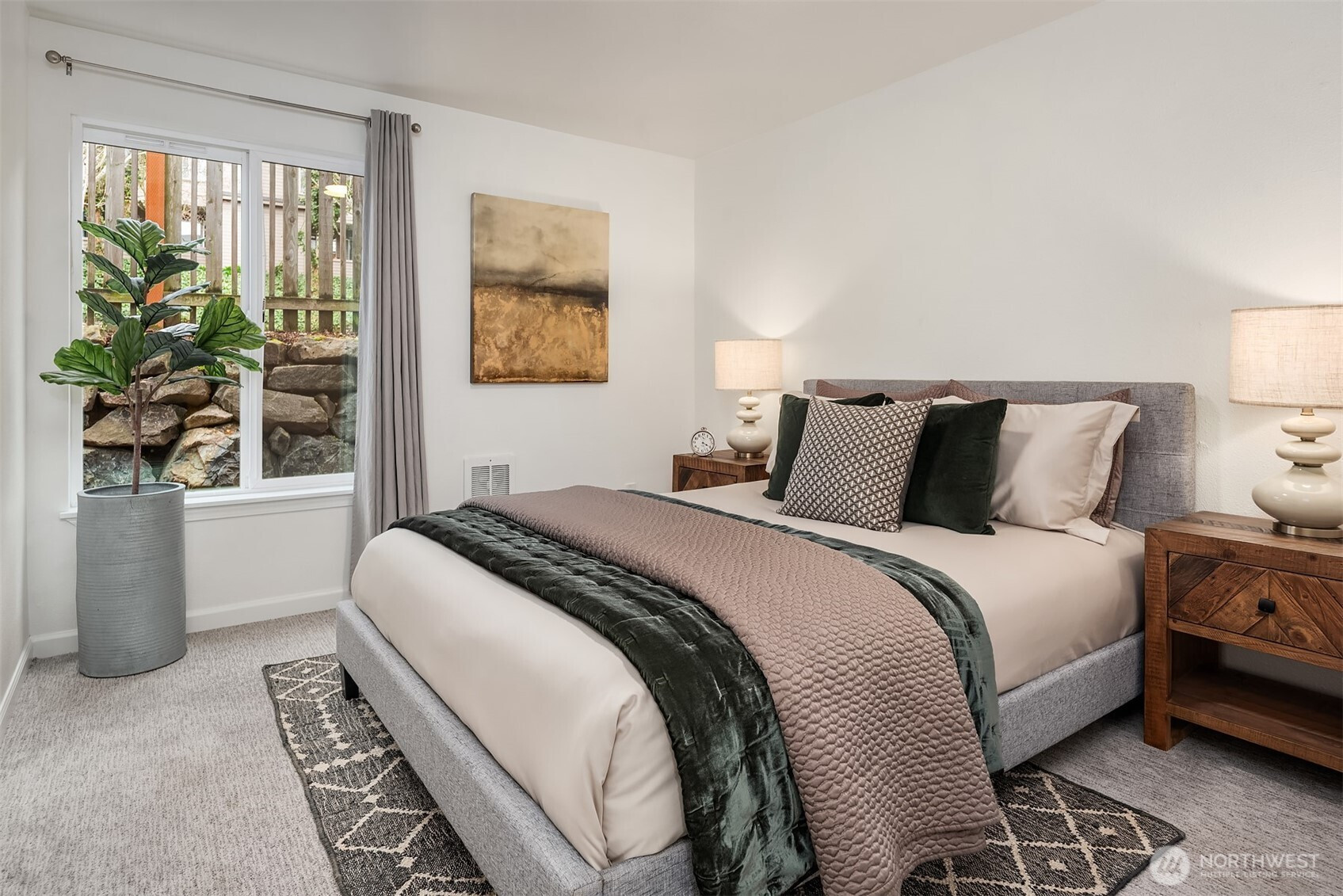 Updated 2 bedroom condo in Fremont, Seattle with parking and in-unit laundry. This 821 sq ft 2 bed 1 bath home lives efficiently with an open living area, LVP flooring throughout the main spaces, and a remodeled bathroom. The kitchen was updated in 2020 with quartz counters, new cabinetry, and appliances, making day-to-day living easy and low maintenance. The Callisto features a full exterior renovation completed in 2017 (including siding and windows), offering peace of mind in an established community. Walk Score 95 and Bike Score 90 put you in the middle of Fremont’s best lifestyle amenities, with quick access to South Lake Union, downtown, Ballard, Wallingford, and the Burke-Gilman. Rare bonus: a private fenced patio that is great for pets, grilling, and a quick breath of fresh air. If you have been searching for a Fremont condo that combines 2 bedrooms, parking, private outdoor space, and modern updates under $500,000, this is the one to see.
