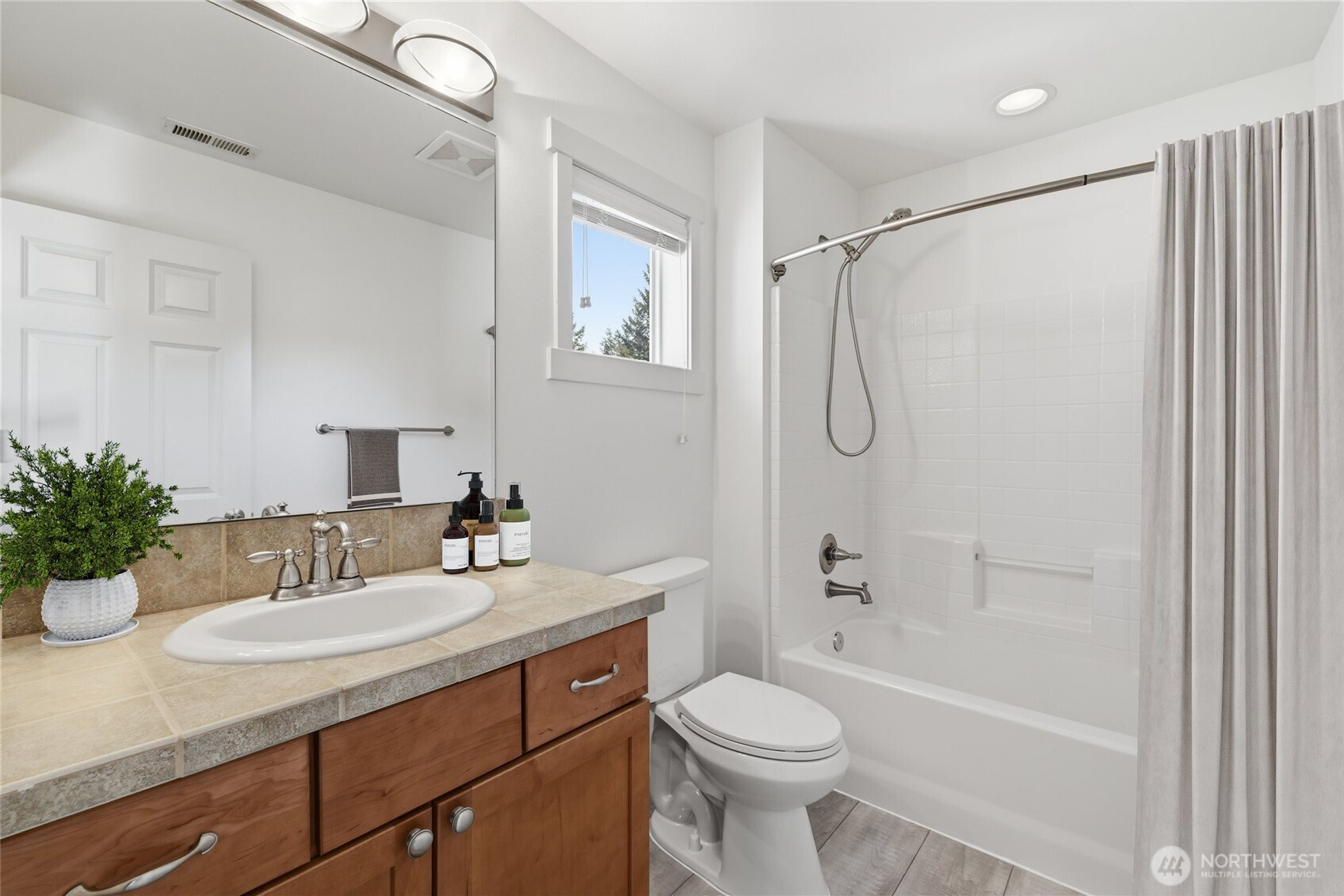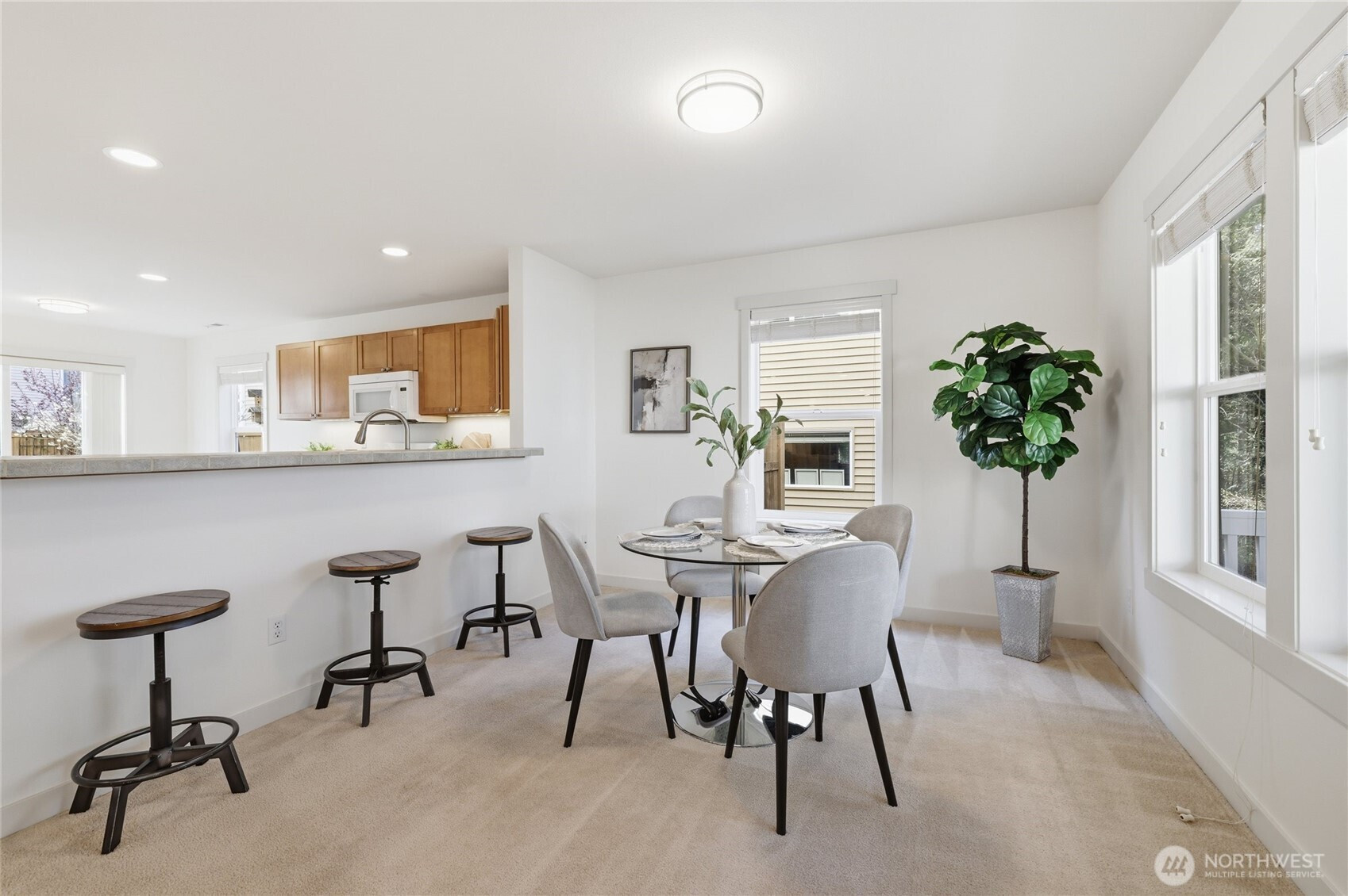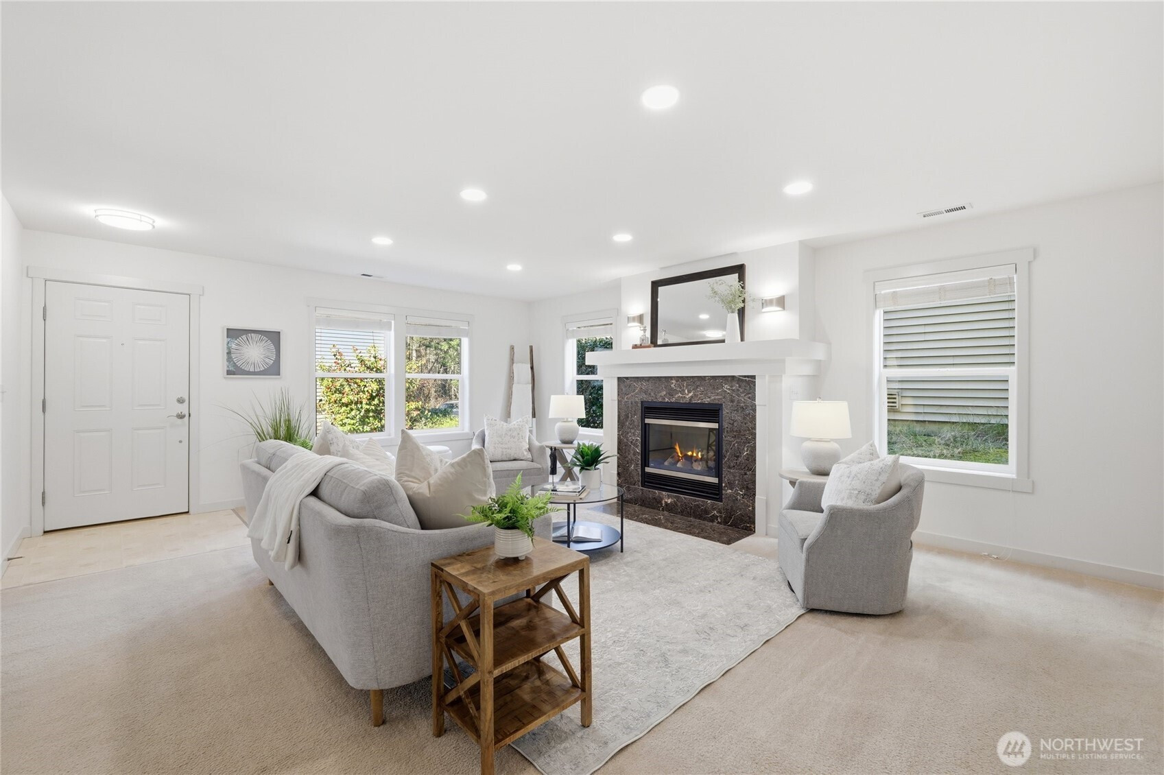 Nestled in the heart of Snoqualmie Ridge, this beautifully refreshed home offers a thoughtful balance of comfort, style, and everyday livability. Fresh interior paint, all-new light fixtures, and updated flooring in the upstairs bathrooms create a bright, modern feel throughout. The open and functional layout flows seamlessly between living spaces—ideal for both daily living and entertaining. A welcoming front porch overlooks the landscaped yard, adding charm and a peaceful place to unwind. Upstairs, a spacious primary suite features an ensuite bath and walk-in closet, complemented by a dedicated family room for added flexibility. The fully fenced back patio features a quaint garden space and backs to a peaceful greenbelt, offering a serene and private outdoor setting. The attached 2-car garage offers added convenience with a separate driveway and access from the other side of the street. Enjoy close proximity to parks, trails, and golf, with easy access to I-90 for smooth commutes to Bellevue, Issaquah, and Seattle. Located within the Snoqualmie Valley School District, this home delivers both lifestyle and long-term value.