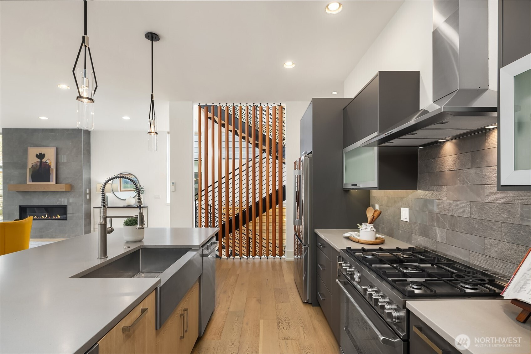 Downtown Issaquah *** Modern + Smart. 3 levels of supremely livable space & clever distinction with Walk Score of 76! 4 beds + 3 baths; office/flex room; guest quarters; galleried landings; floating staircases; 10 ft ceilings; glass walls yielding an incredible light aesthetic. 2025-2026 embellishment included new interior paint; new carpet; new refrigerator, washer and dryer; and more. New landscaping in fully fenced yard for . Italian crafted Bertazzoni range, live-edge powder room focal point; wood privacy balustrades. Excellent floor plan for numerous lifestyle dynamics - 3 bedrooms upstairs, and 1 bedroom plus bonus room & bathroom on lower level. Covered patio overlooks new landscaping of select plantings soon to bloom, containers of bamboo, hydrangea & Japanese maple. Walk to popular Front Street restaurants, brew pubs, shopping and the nationally acclaimed Village Theatre. Unmatched location, comfort and design. Great, friendly neighborhood.