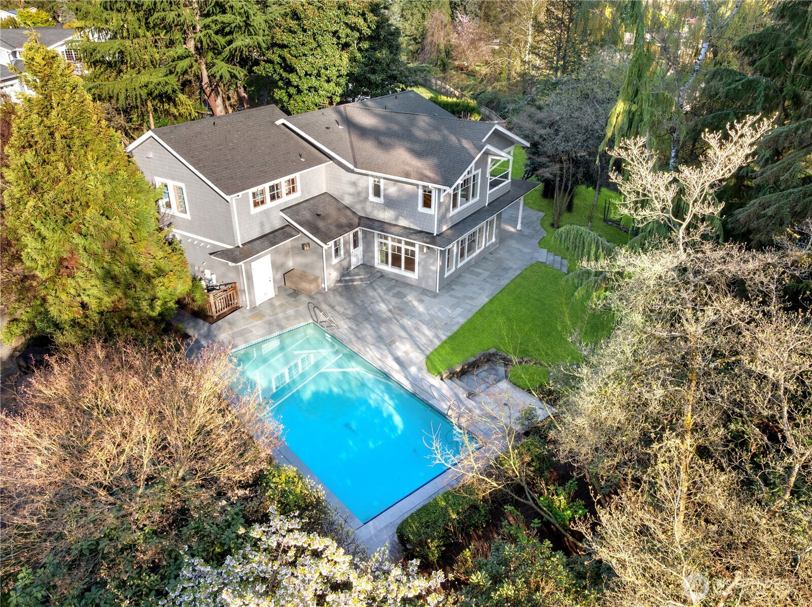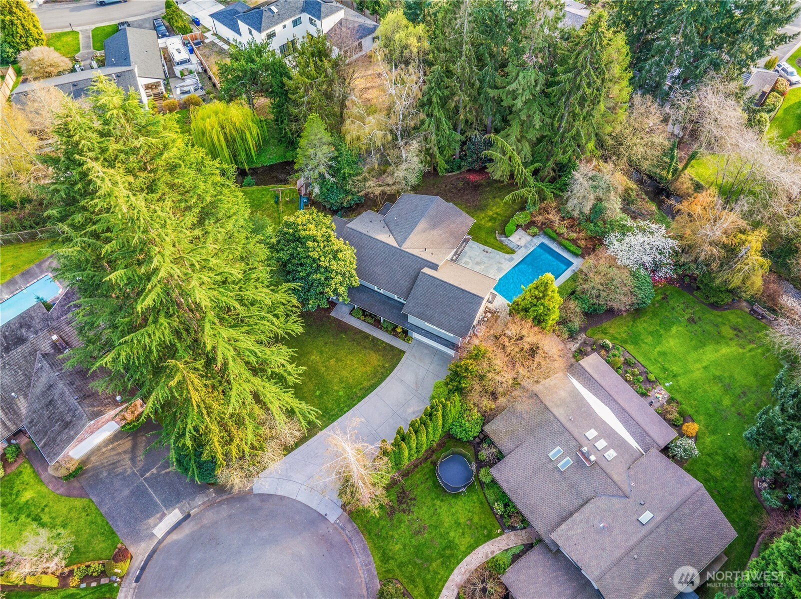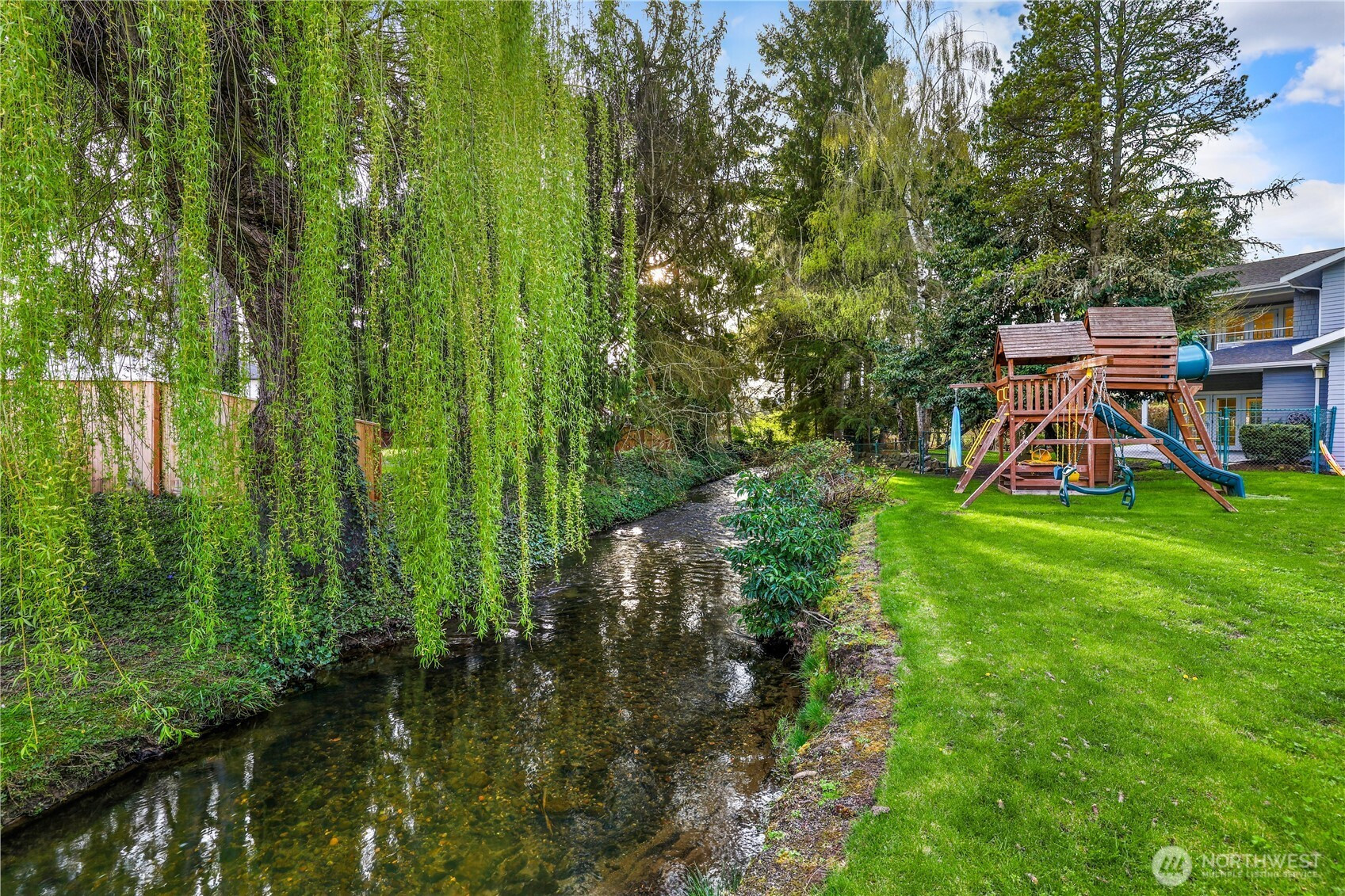 Nestled on a beautifully landscaped ½ acre lot in highly sought after Newport Shores, this exceptional home offers a rare blend of privacy, space, and lifestyle. Set along tranquil Coal Creek, enjoy the soothing sights and sounds of nature right from your own backyard plus your own in ground swimming pool. This home is thoughtfully and extensively updated with rich hardwood floors and light-filled living spaces that are designed for comfort and entertainment. The spacious kitchen is beautifully appointed with sleek porcelain countertops, a Sub-Zero built-in refrigerator and a Viking professional gas range and hood vent. The kitchen opens to inviting gathering areas and covered patios. The impressive primary suite showcases vaulted ceilings and a private covered deck, creating a peaceful retreat. Additional bedrooms—including a second upstairs en-suite offer exceptional flexibility for guests, extended living, or private work-from-home spaces. Step outside to your own private oasis with lush landscaping and a sparkling in ground pool with automatic safety cover for summer enjoyment. Systems include a back up generator with auto switchover, a new Carrier Infinity HVAC and a new Navine tankless hot water system. Located in The Newport Shores community with access to a newly remodeled clubhouse, pool with summer swim team, pickelball, tennis courts, sand volleyball area, new playground, and marina w/moorage. Ideal proximity to freeways, shopping and excellent schools.