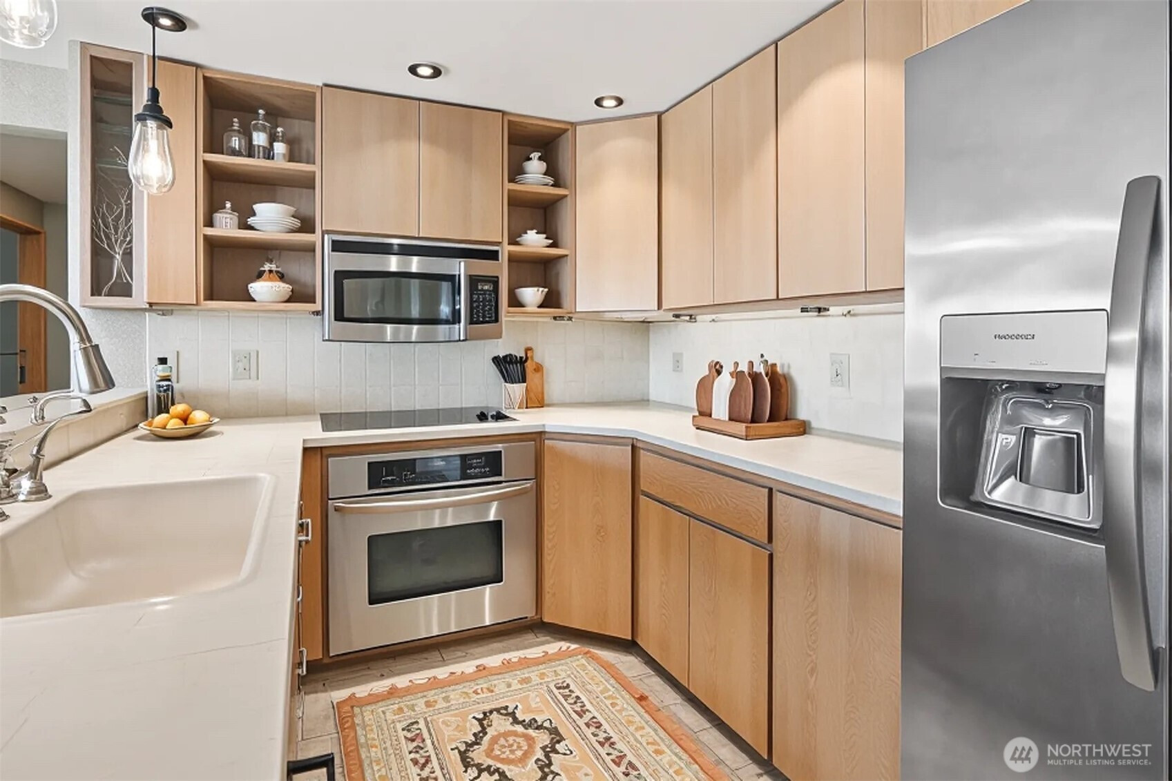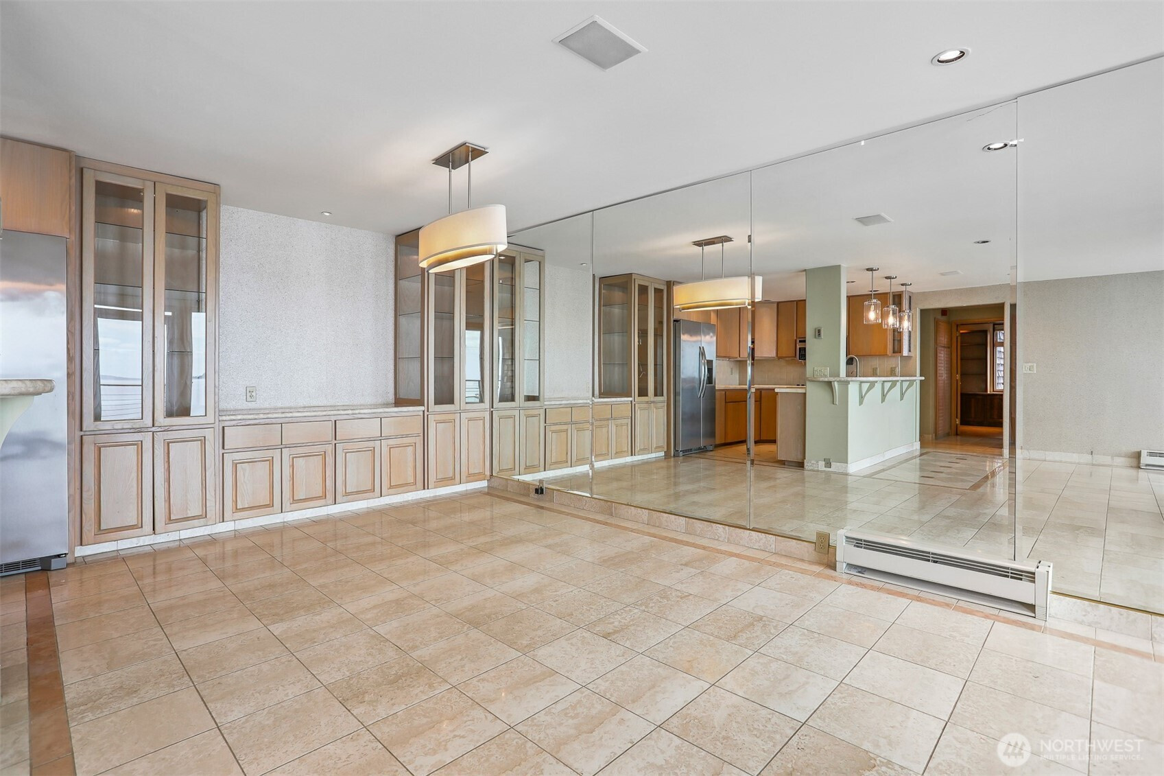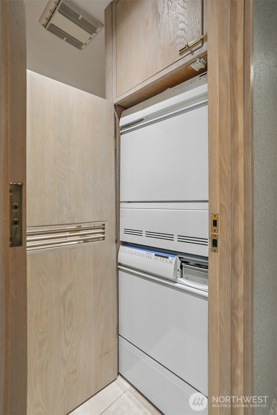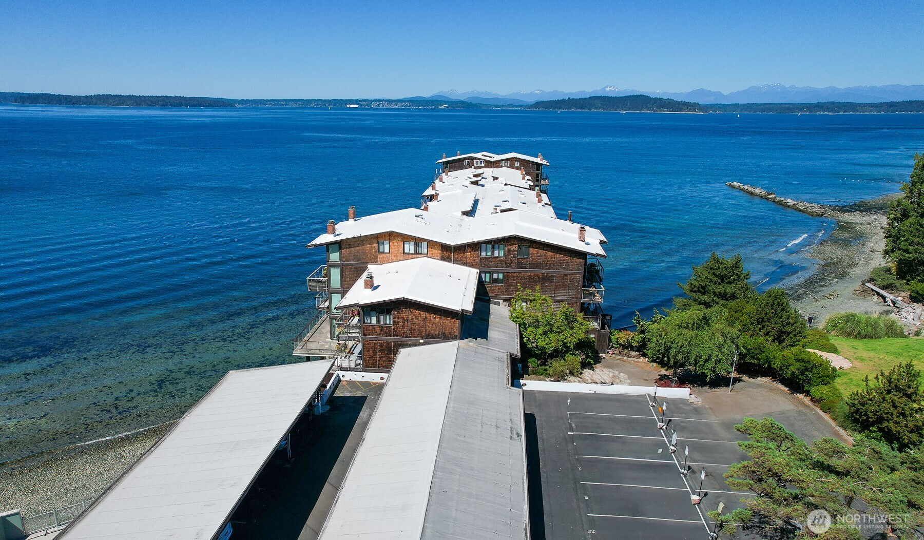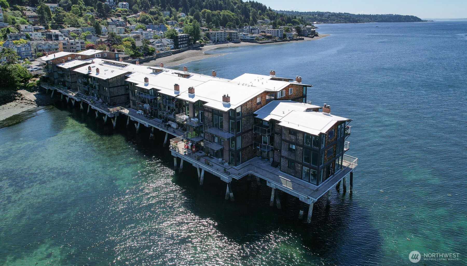 New Year New View in this stunning south-facing waterfront home!! Wake up to the soothing sound of waves lapping the shore or dine alfresco on your balcony as the sunset radiates off Puget Sound. This open-concept unit has only one shared wall and is filled with natural light thanks to floor to ceiling windows and gleaming travertine floors. The spacious primary features en-suite ½ bath and generous built-in storage. Second bedroom with walk-in closet offers versatility for guests, work, or hobbies. Rare in-unit laundry! Bathrooms and kitchen have radiant floor heat. Located in a well-maintained building with heated pool, sauna, and secure storage for bikes/kayaks/paddle boards. Assigned covered parking. Live the ultimate waterfront lifestyle.