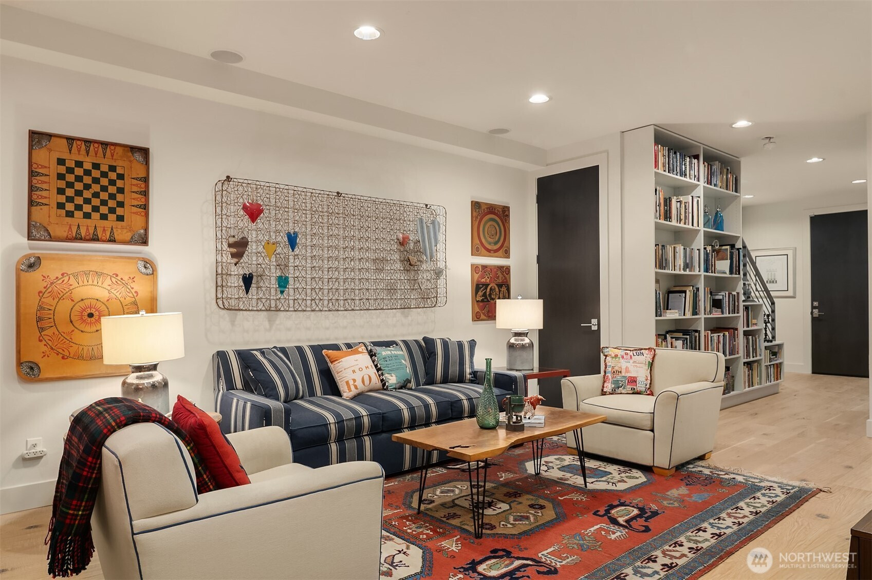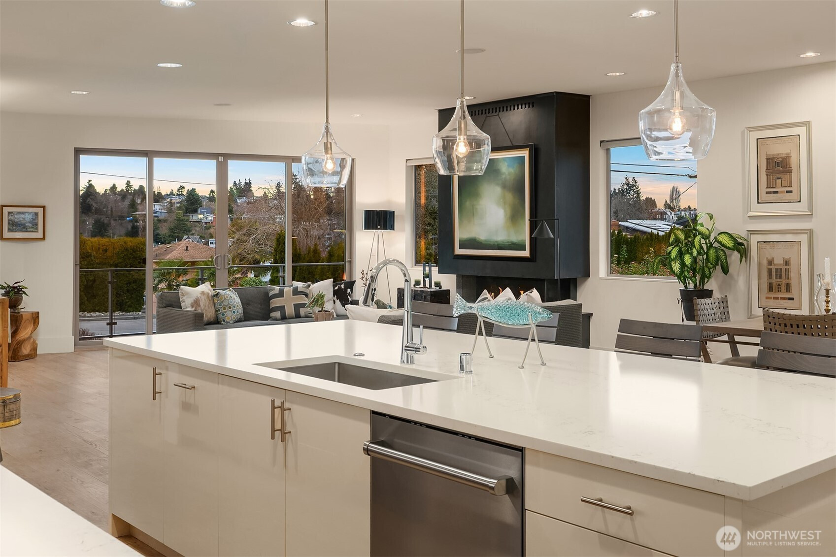Experience elevated Northwest contemporary living in this better-than-new luxury home with captivating views of the ship canal. Built in 2019 and thoughtfully designed with today’s lifestyle in mind, this residence blends refined architecture with exceptional comfort and function. An open-concept floor plan welcomes you with light-filled spaces, wide-plank floors, and seamless indoor-outdoor flow. The chef’s kitchen is the heart of the home, featuring high-end appliances, sleek cabinetry, and generous prep and gathering space—perfect for entertaining or everyday living.A striking gas fireplace anchors the main living area, while the sumptuous primary suite offers a true retreat with spa-inspired finishes and tranquil privacy. Three bedrooms on the main level provide flexibility for guests, office space, or multigenerational living. The lower level is equally impressive, boasting a large and inviting family room, custom built-in bookcases, space ideal for an art studio or creative workspace, a dedicated wine room, and a spacious two-car garage with abundant storage.Head to the rooftop deck to savor long summer evenings around the gas fireplace, taking in sweeping canal views and unforgettable sunsets. This is a rare opportunity to own a meticulously crafted, move-in-ready home that captures the essence of sophisticated Pacific Northwest living.