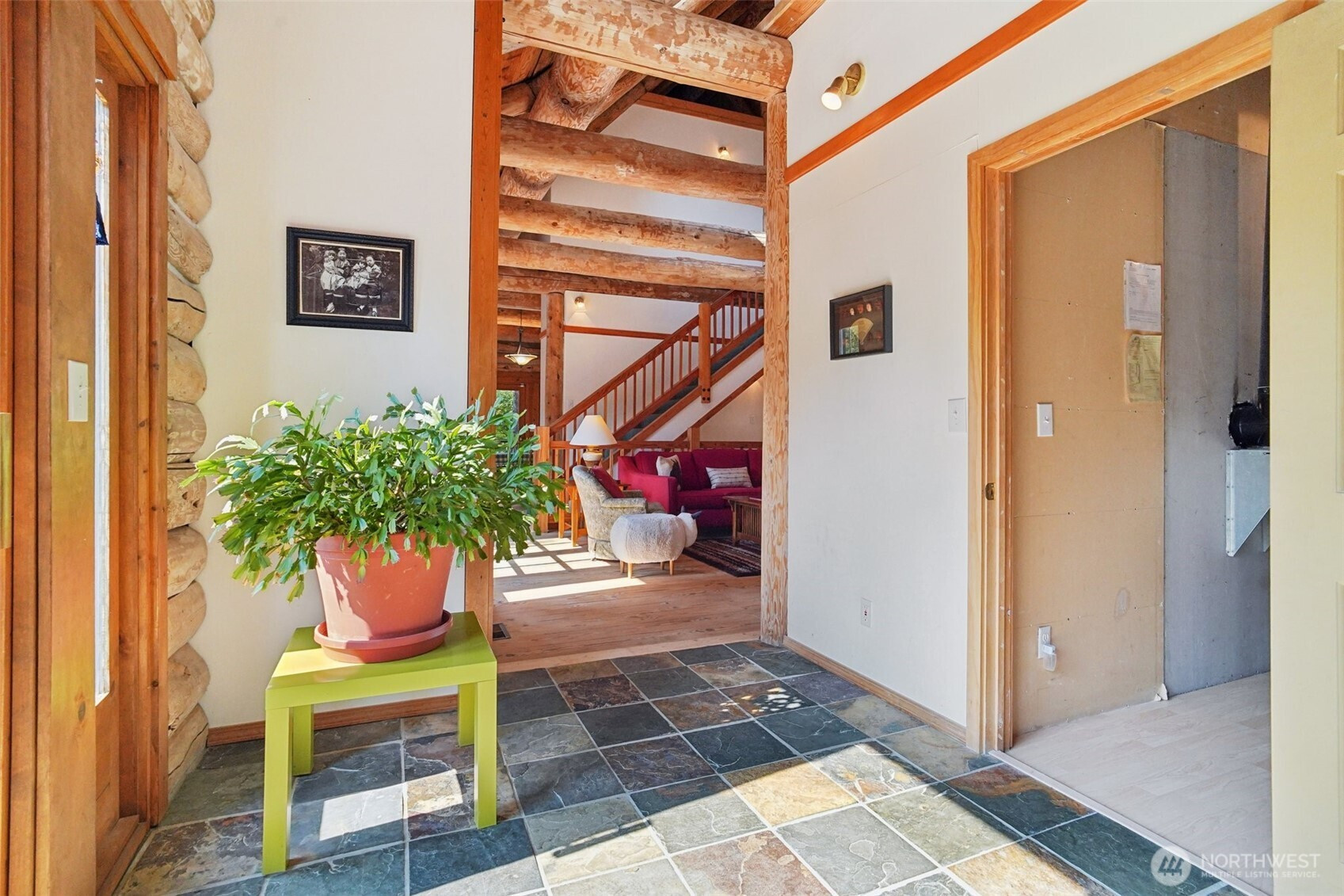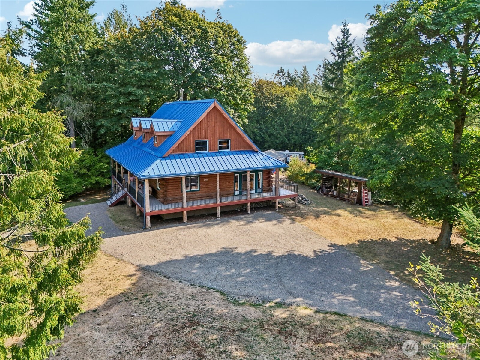 Country living at it's best - unique PNW property and house is the real deal. 1 1/4 acre partially wooded, quiet, wildlife setting showcases a unique log farmhouse. Well maintained and occupied by original owner/builder. Recent upgrades include: newly stained - deck and log walls, cedar dormers and gables, powder coated metal railings, newer Carrier furnace and heat pump. Quintessentially Northwest log home has Carbon River rock wood stove surround, slate tiled sunroom, pine barn flooring. Custom pine kitchen cabinets with plenty of storage, bedrooms with large closets and a sumptuous wrap around porch. Full daylight basement, office space with large picture window taking in the properties beautiful scenery. Your legacy homestead is here.