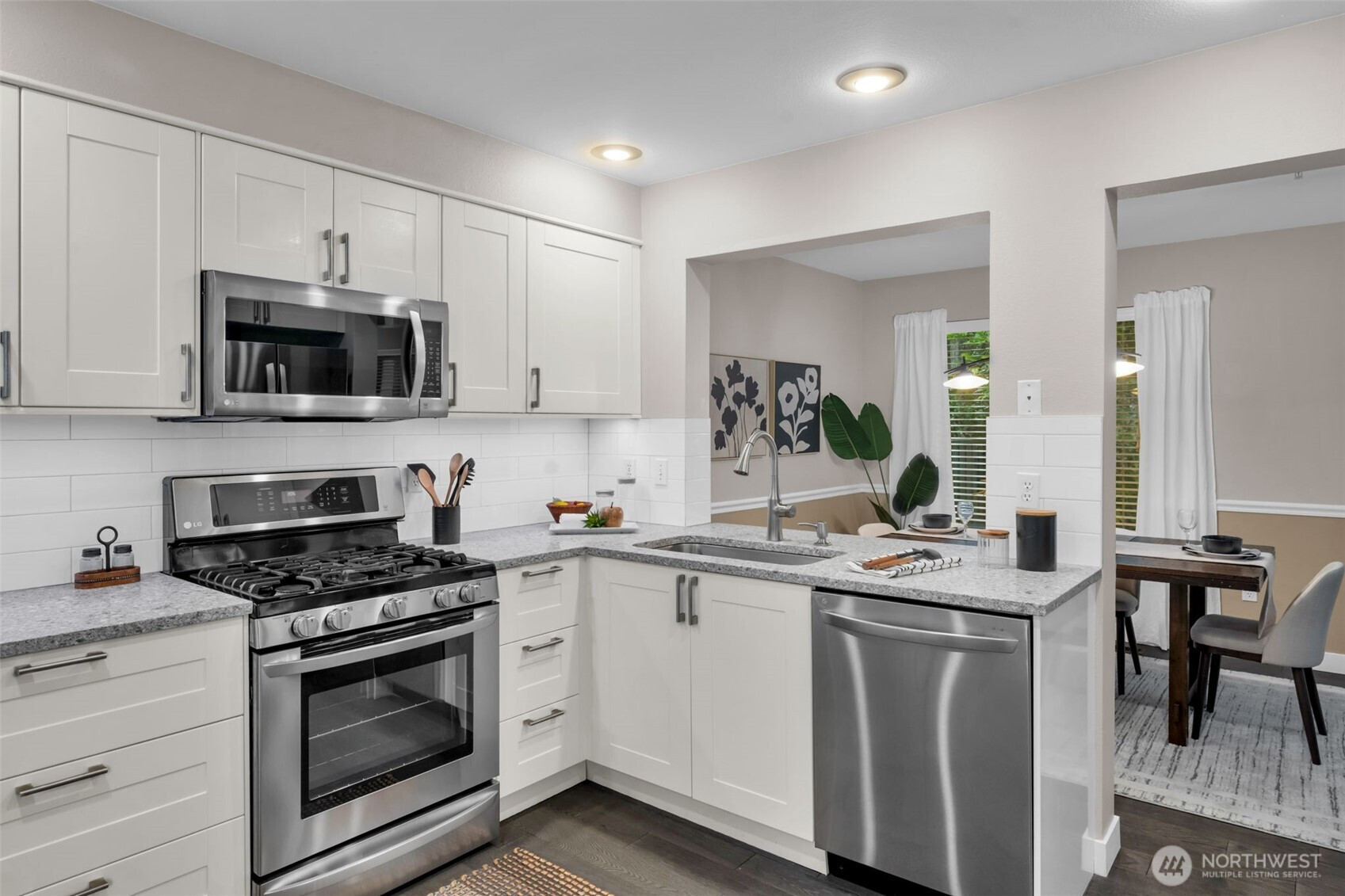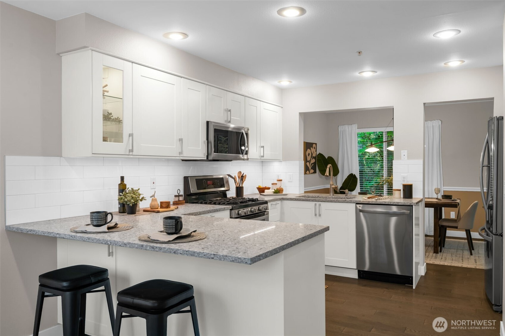 Experience the best of Klahanie living in this beautifully updated 2-bed, 2.5-bath townhouse tucked within a peaceful cul-de-sac. Designed for comfort & connection, this home blends easy living with community charm. Soaring windows fill the 2-story living room with natural light, while a cozy gas fireplace & open kitchen invite relaxation & gatherings. Two ensuite bedrooms offer privacy & flexibility for modern living. Enjoy short walks to Challenger Elementary & Beaver Lake Middle true neighborhood schools. HOA covers water, sewer, earthquake insurance, exterior maintenance, landscaping & more for stress free living. With parks, pools, trails & playgrounds nearby, this is more than a home it's a lifestyle of ease & connection.