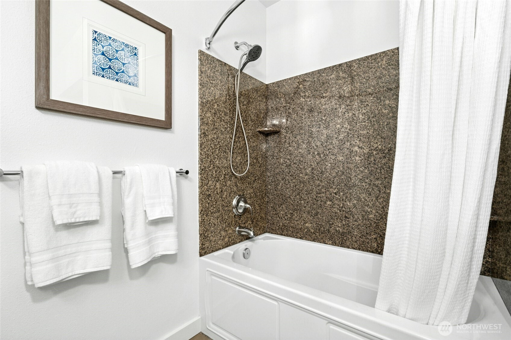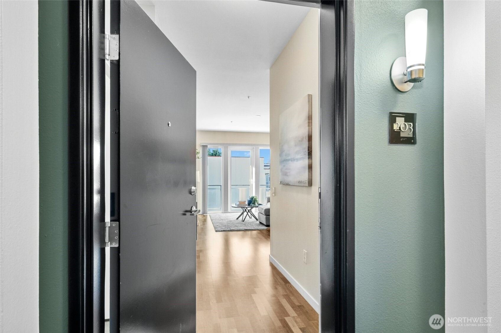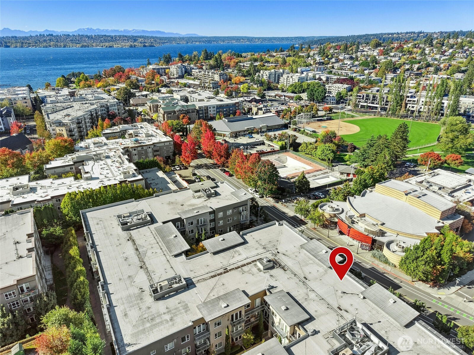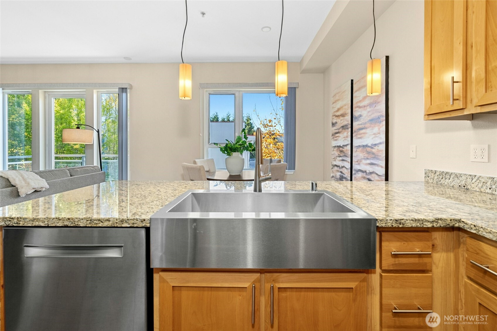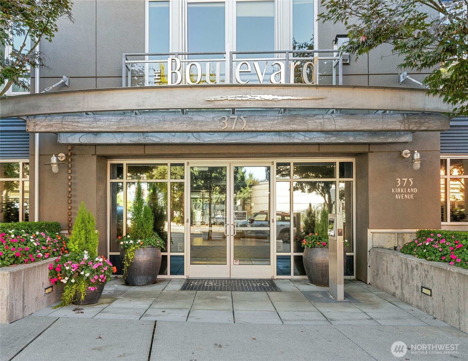 Discover refined living at The Boulevard! This sun-filled, freshly styled condo features soaring ceilings, gleaming hardwoods, and a welcoming living/dining area with fireplace and private balcony. The gourmet kitchen impresses with granite counters, bar seating, upgraded stainless steel appliances including a 6-burner gas range, apron sink, dishwasher, microwave/oven combo, and pullout pantry—perfect for entertaining. A flexible den suits office, fitness, or hobbies. The serene primary retreat offers a walk-in closet with organizer and a spacious bath with granite counters. Full-size washer/dryer, secure parking, and storage included. Just steps to the waterfront, parks, library, boutiques, and top dining in downtown Kirkland.