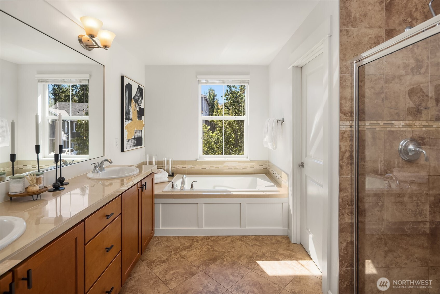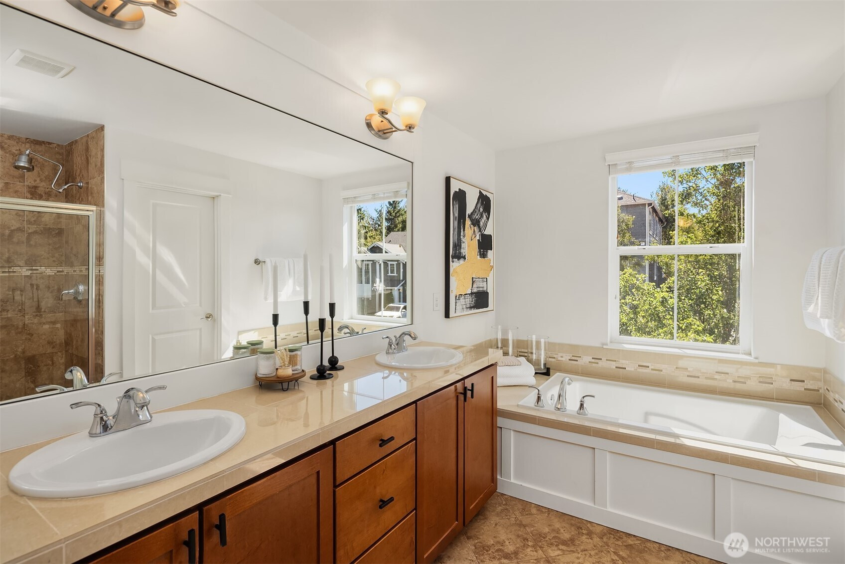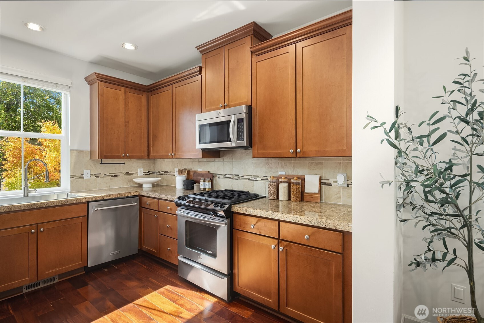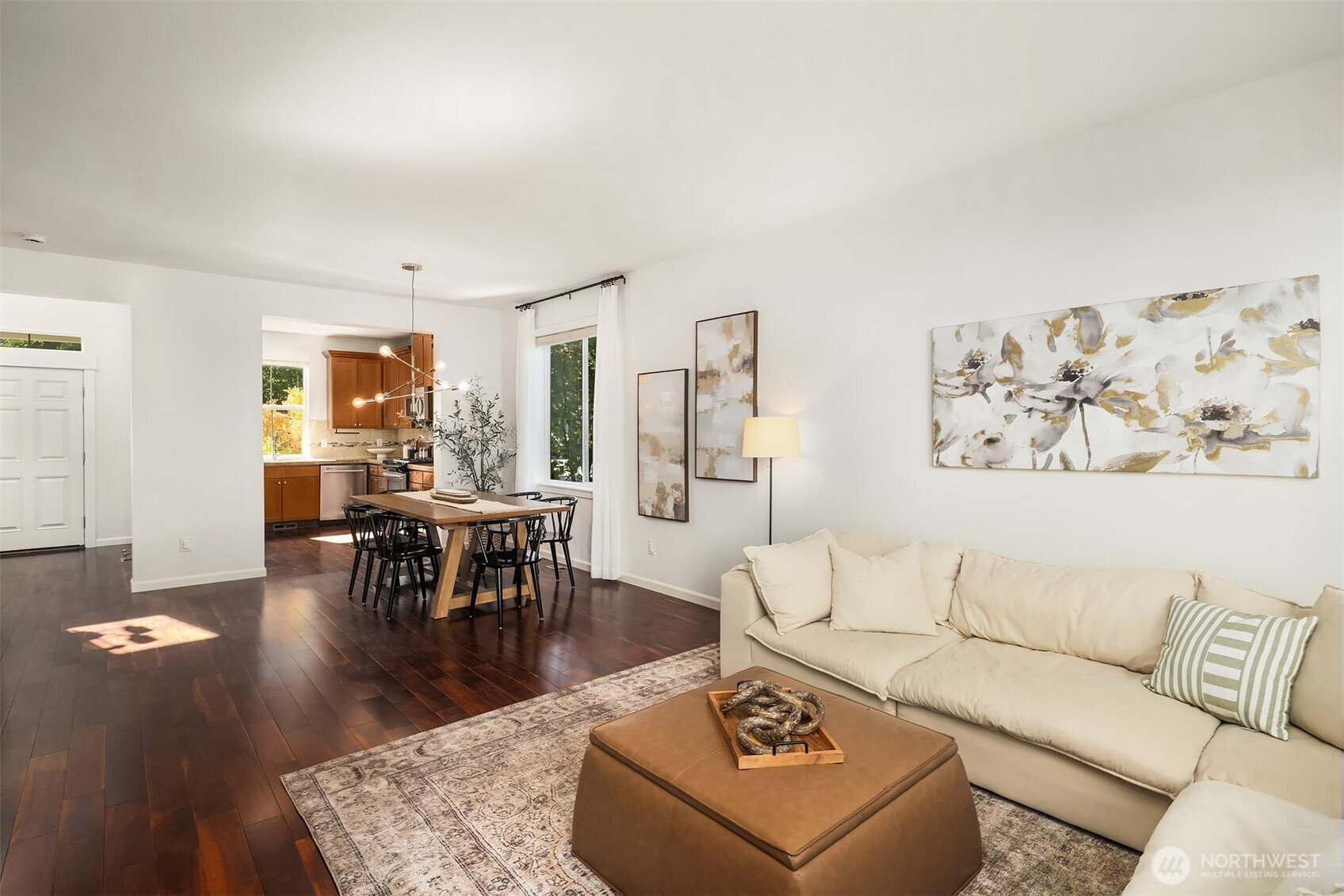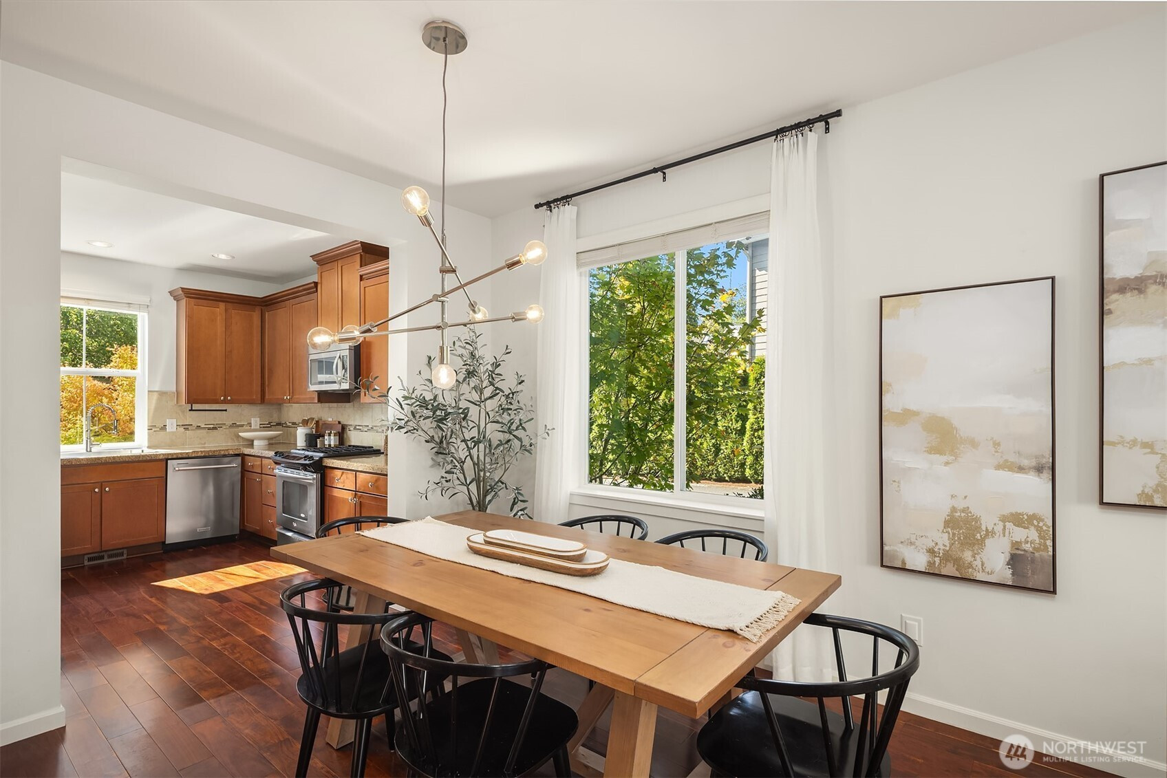 Step inside to soaring ceilings, warm hardwoods, and a cozy fireplace that set the tone for this inviting Snoqualmie Ridge retreat. The kitchen offers granite counters, stainless appliances, a gas cooktop, and rich cabinetry—ideal for everyday meals or casual entertaining. Upstairs, the primary suite includes two closets and a spa-like 5-piece bath, joined by two additional bedrooms, a full guest bath, and a versatile flex space. Exceptional woodworking details add timeless character. Outside, the turf backyard with lush landscaping provides a low-maintenance space for play, pets, or gatherings. With A/C, trails, parks, and the vibrant Ridge community at your doorstep, this home blends comfort, functionality, and adventure.