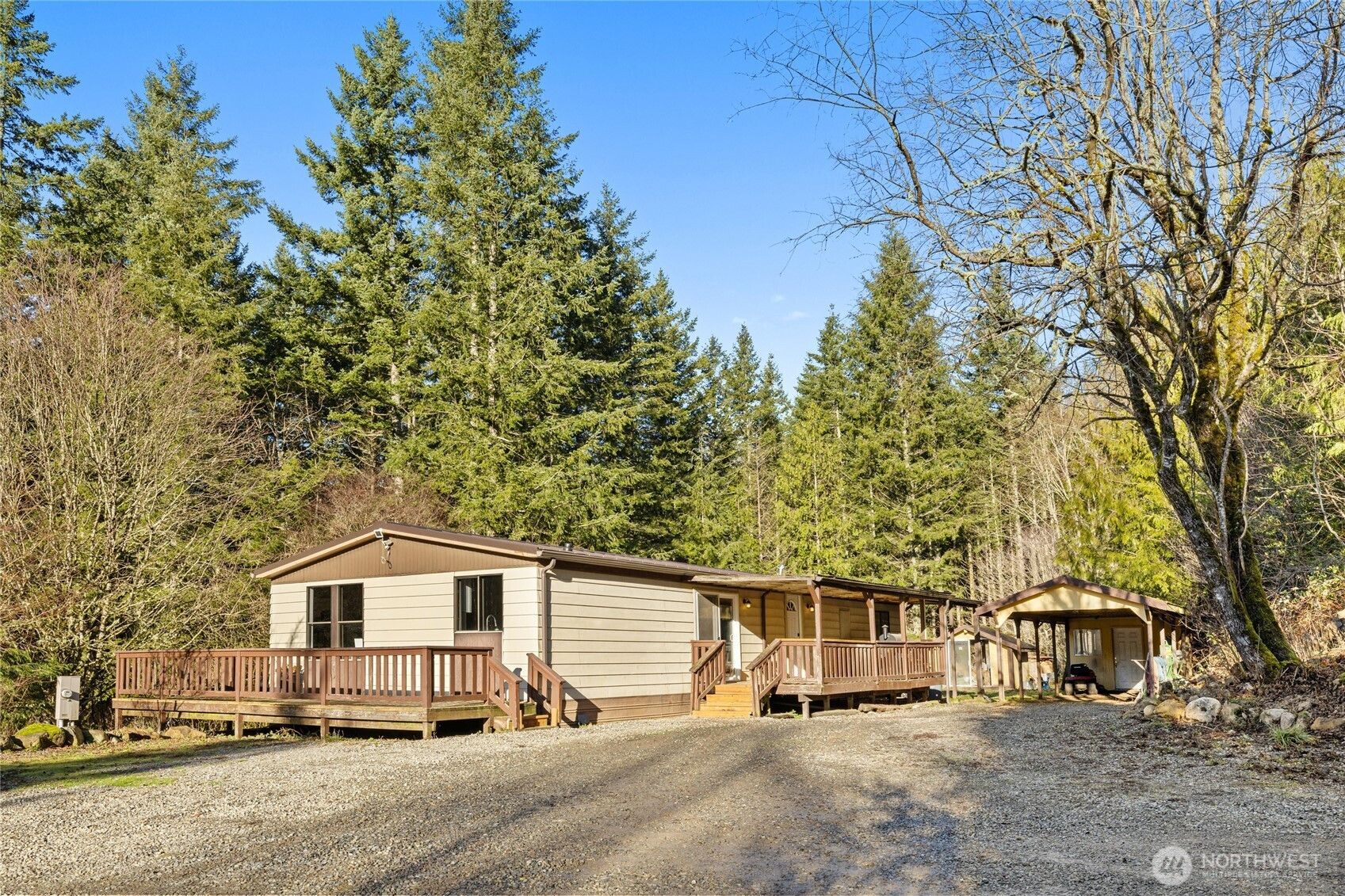 Welcome home to peaceful foothill living in Enumclaw! Tucked away on 7.78 serene acres near Lake Walker— with a boat launch just down the road—this property offers the perfect blend of privacy, space, and outdoor adventure. Relax and take in the mountain views from the front covered deck or the side deck that wraps around to the front door, ideal for entertaining or enjoying quiet mornings surrounded by nature. Inside, you’ll find vaulted ceilings and numerous updates including a new metal roof, updated kitchen with eating island, new flooring throughout, and more. The home features 3 bedrooms and 1.75 baths, providing comfortable living with a thoughtful layout. Outside, a detached carport with a small shop offers great space for hobbies or projects. An additional outbuilding needs work but holds great potential—perfect for a greenhouse, storage, or a creative vision of your own. Plenty of room for all your toys, RV parking, and wide-open space to enjoy the Enumclaw lifestyle. Located in the Enumclaw School District, this is a rare opportunity to own acreage with convenience, views, and endless possibilities.