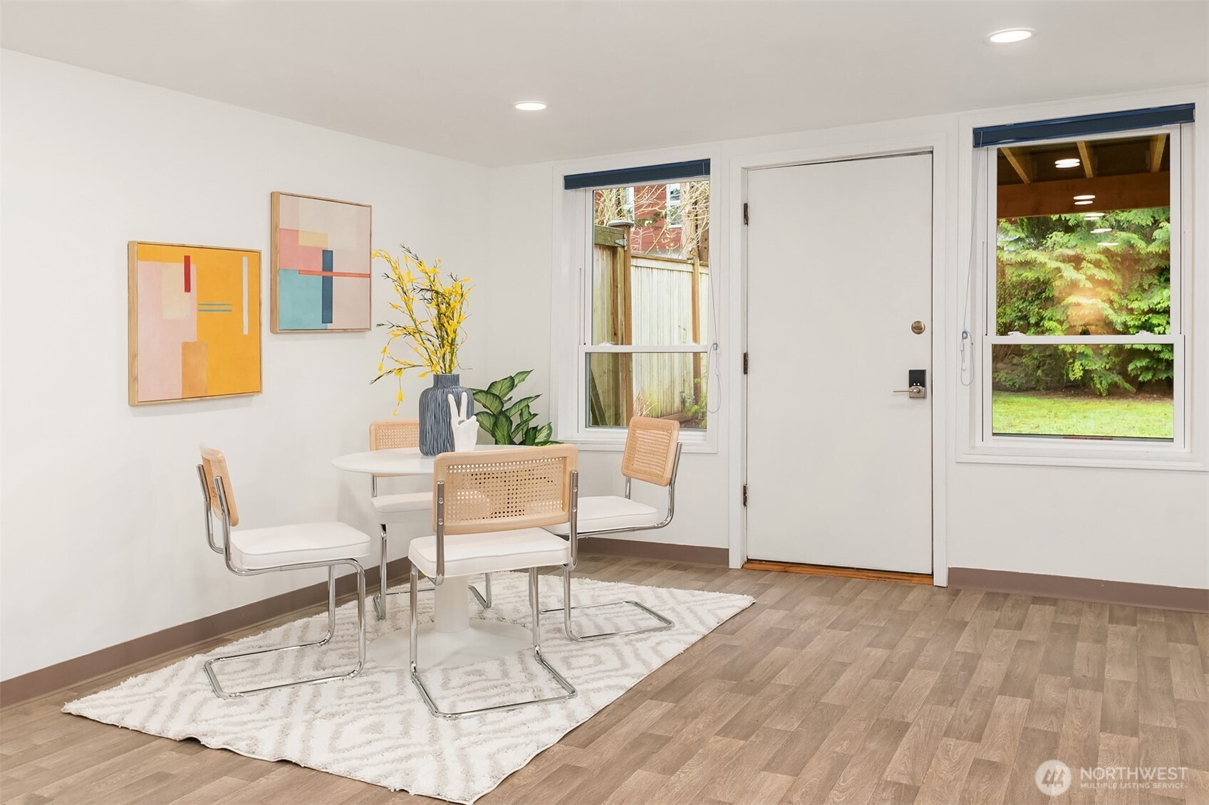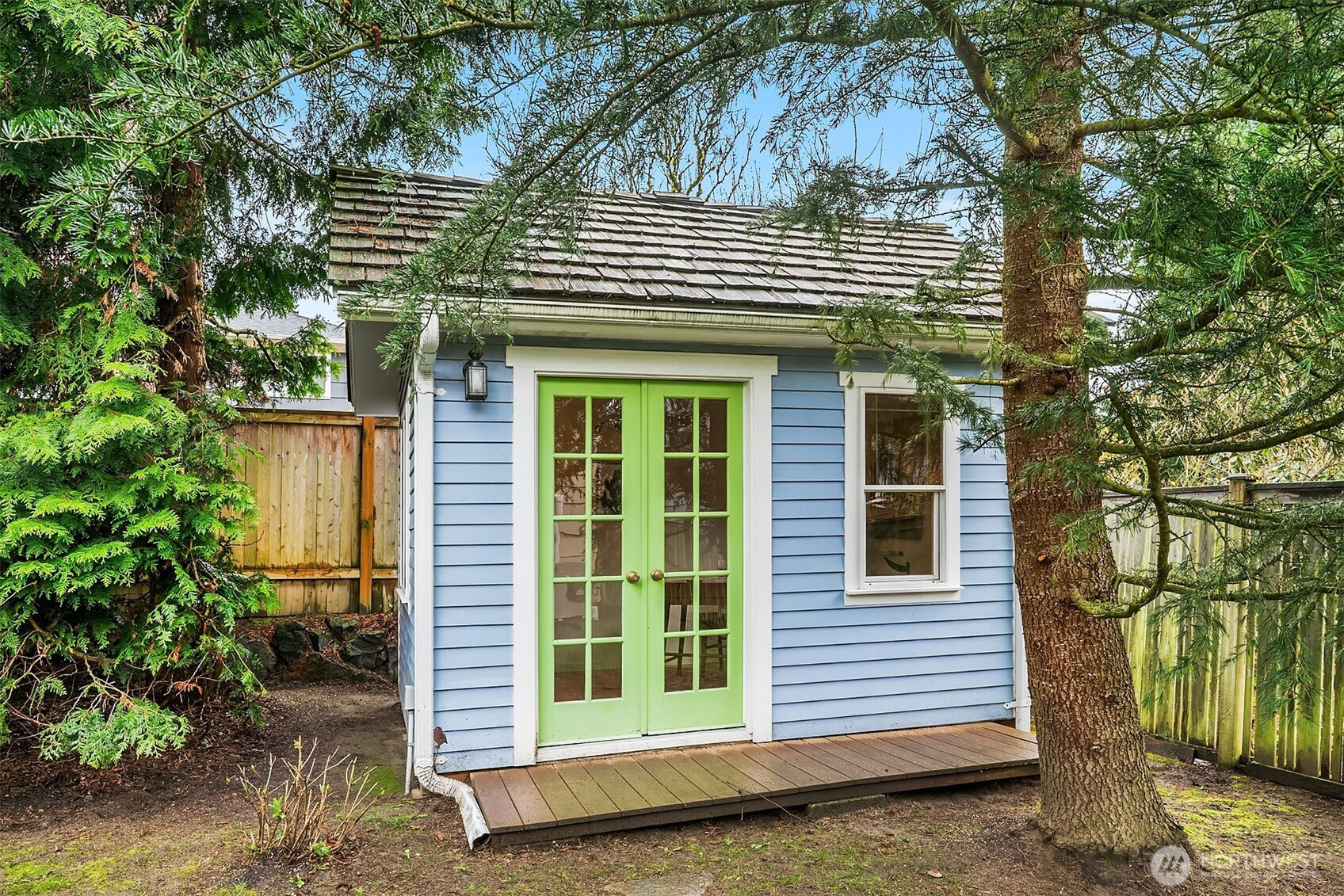 Welcome to this timeless mid-century gem nestled in Seattle's highly desirable Wedgwood neighborhood. Thoughtfully designed, the seamless main-level floorplan offers three spacious bedrooms and inviting living areas filled with natural light. The kitchen opens to a beautiful, covered deck ideal for year-round entertaining, morning coffee, or relaxing evenings overlooking the backyard. The fully finished daylight lower level with a separate entrance provides exceptional flexibility, well-suited for additional living space, guest quarters, or a potential mother-in-law suite. Extra insulation between floors enhances comfort and privacy throughout the home. Situated on a generous lot, the property offers ample room to garden, play, or simply unwind outdoors. A detached backyard cottage adds even more versatility, well-appointed for a studio, home office, workshop, or additional storage. Impeccably maintained, this home features a brand-new roof and beautifully refinished hardwood floors, blending classic character with thoughtful updates. Enjoy a prime location just minutes from UW, Seattle Children's and downtown Seattle, offering both convenience and an exceptional neighborhood setting.